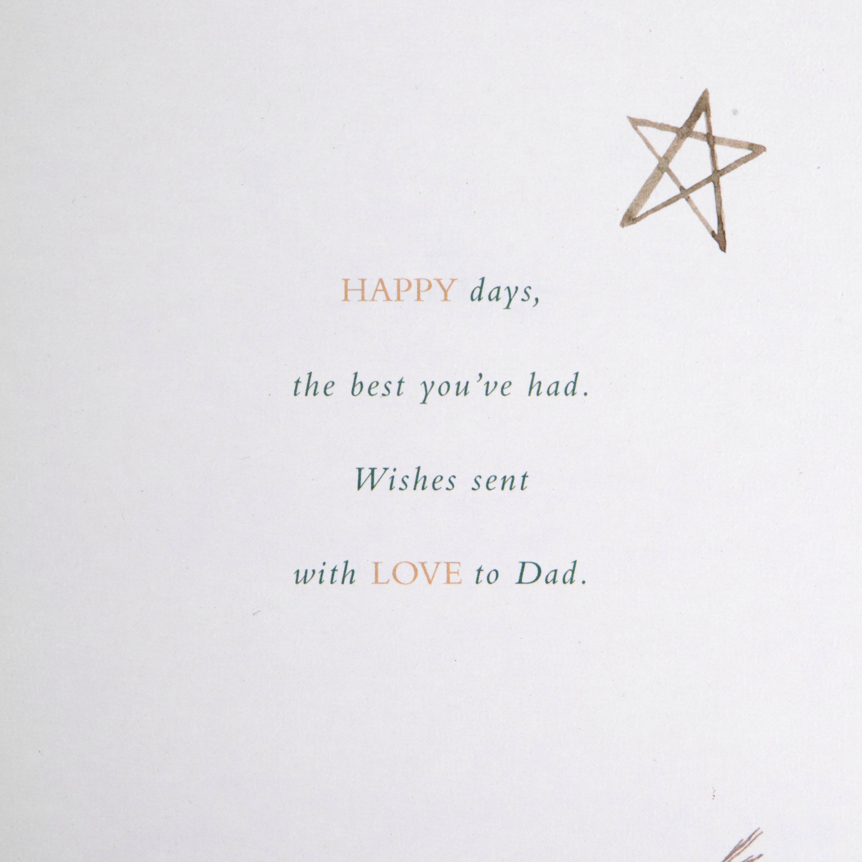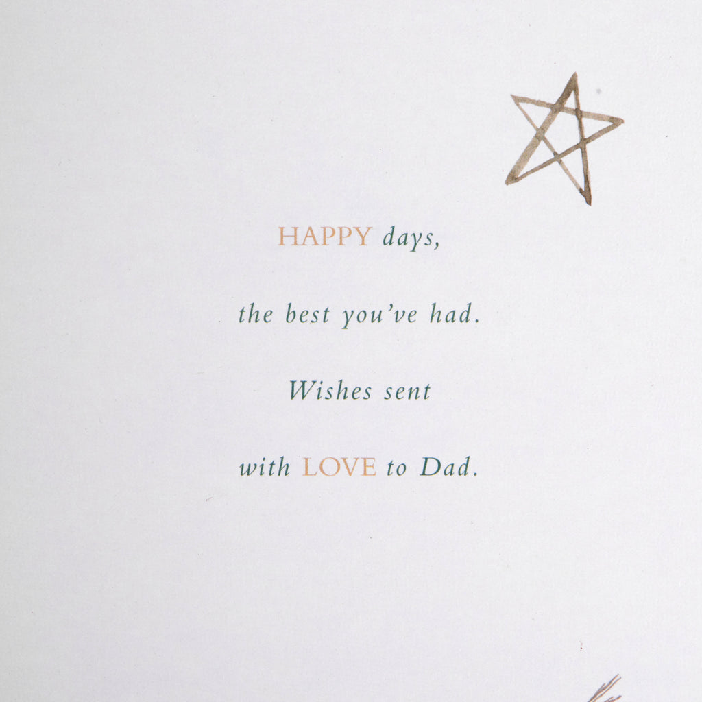 Message inside reads: HAPPY days, The best you've had. Wishes sent with love to Dad.