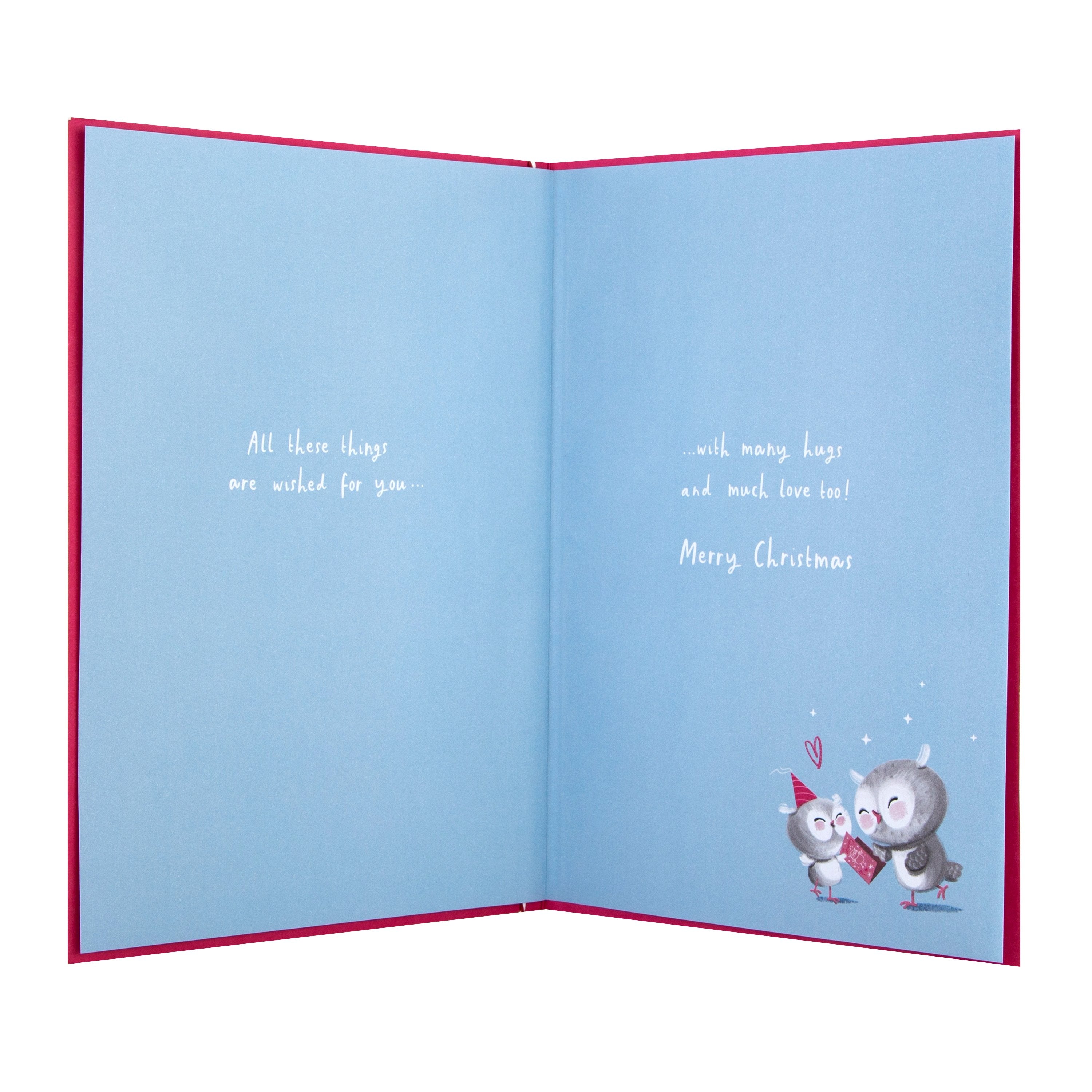 Message Inside Reads: All these things are wished for you… with many hugs and much love too! Merry Christmas
