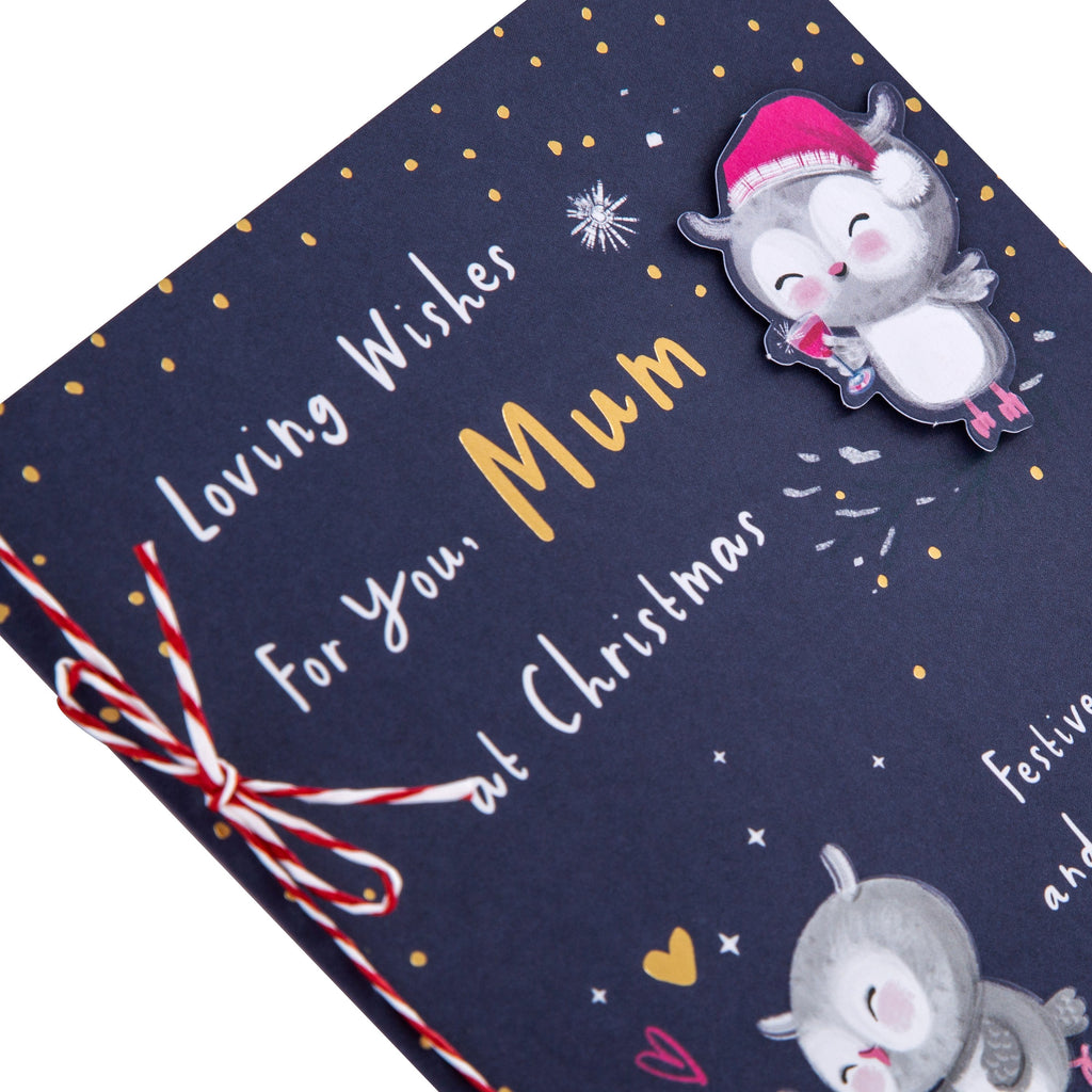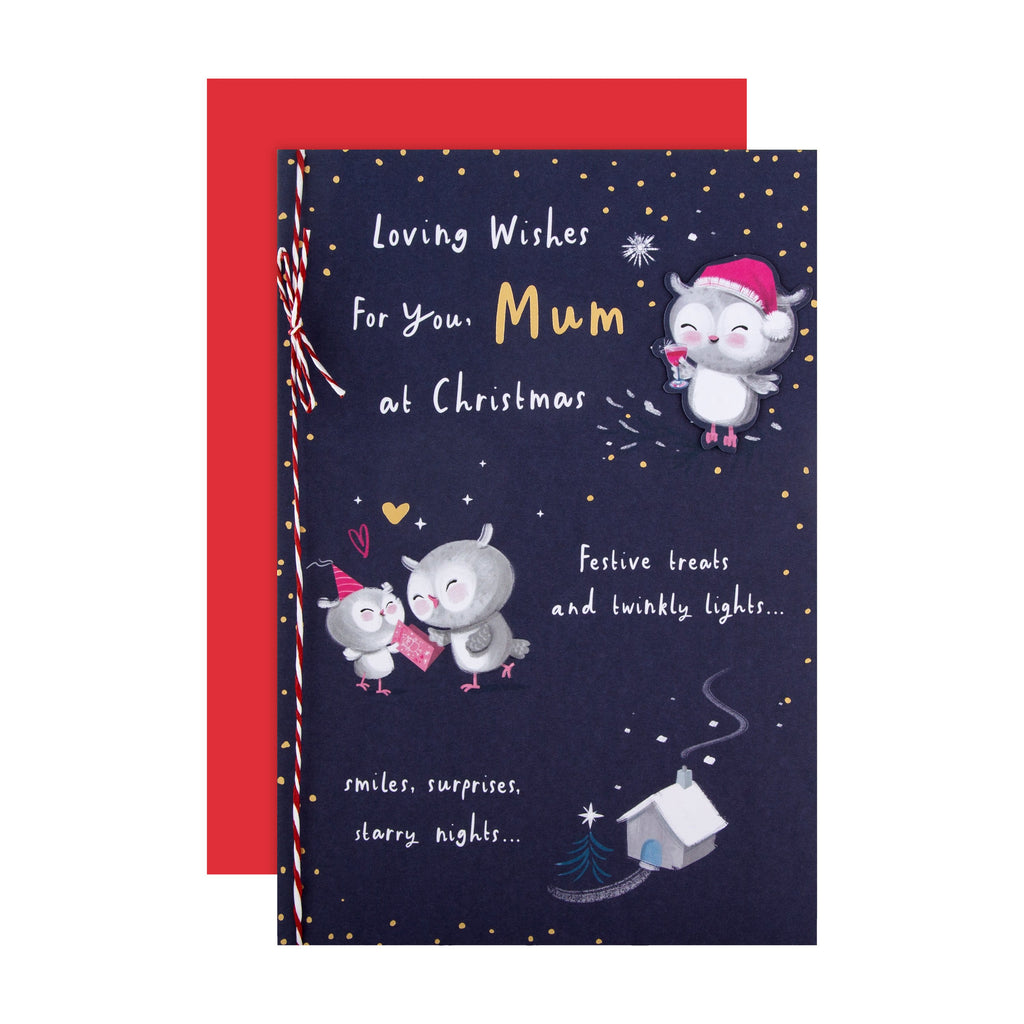 Christmas Card for Mum - Cute Illustrated Owls Design
