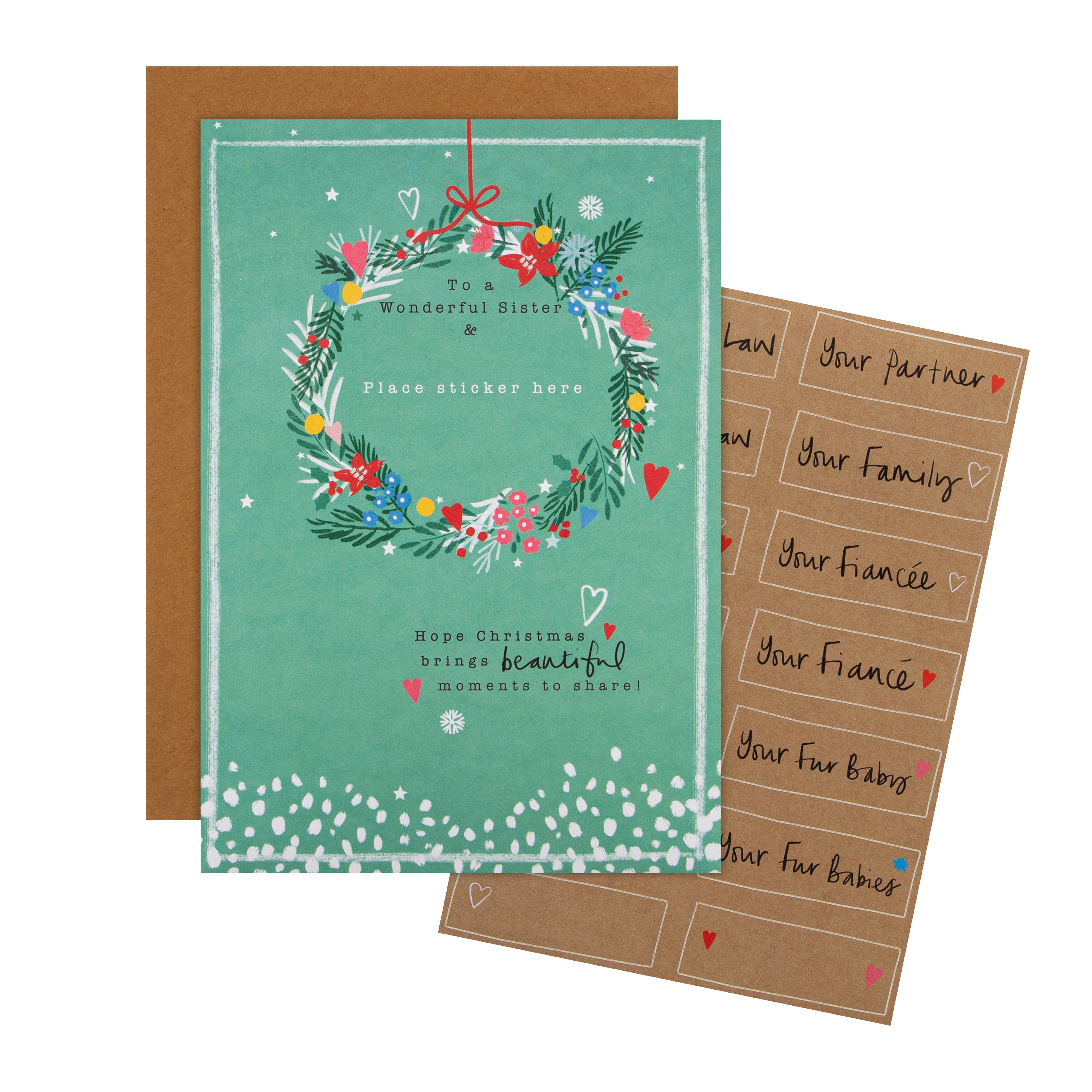 Christmas Card for Sister and others - Personalisable Sticker Design