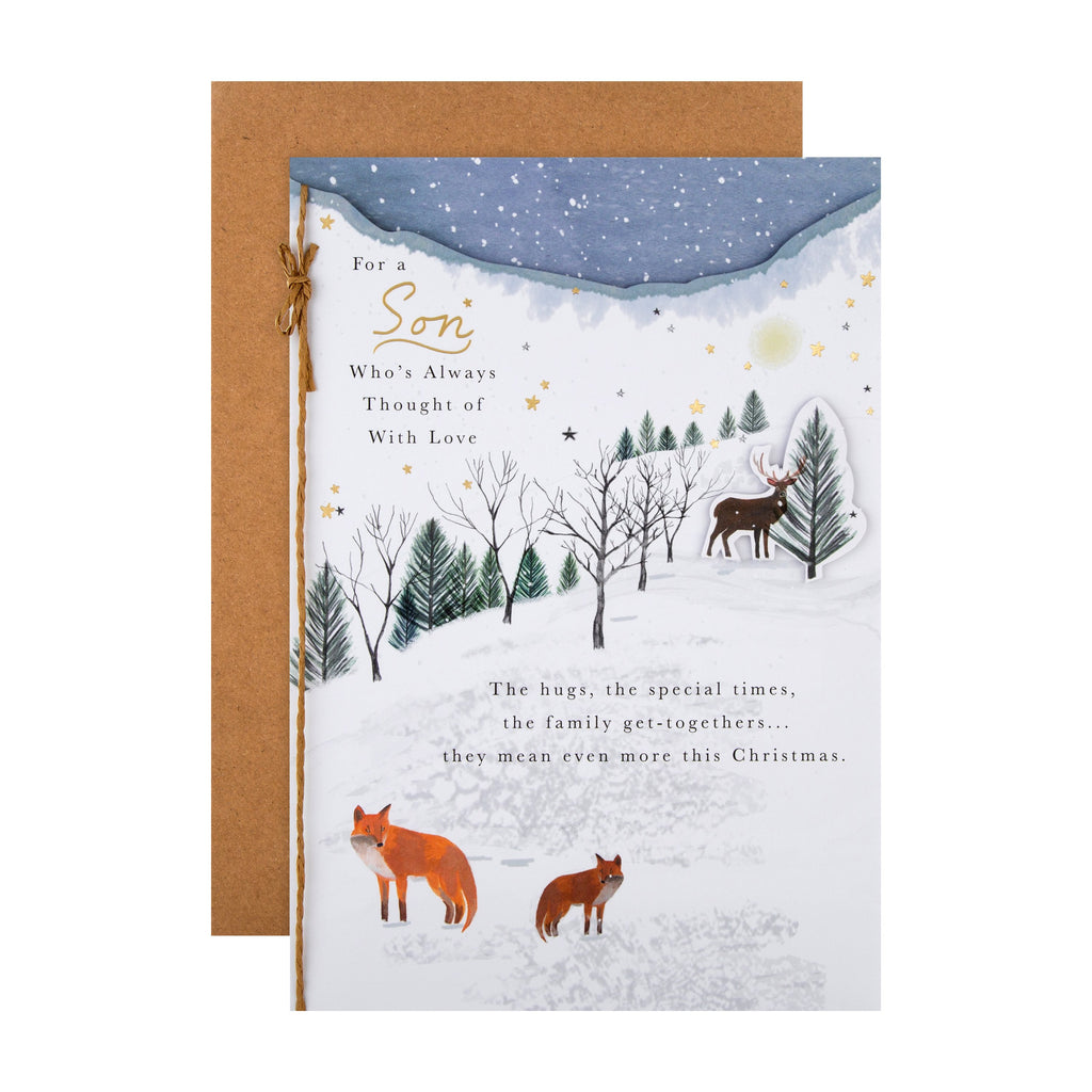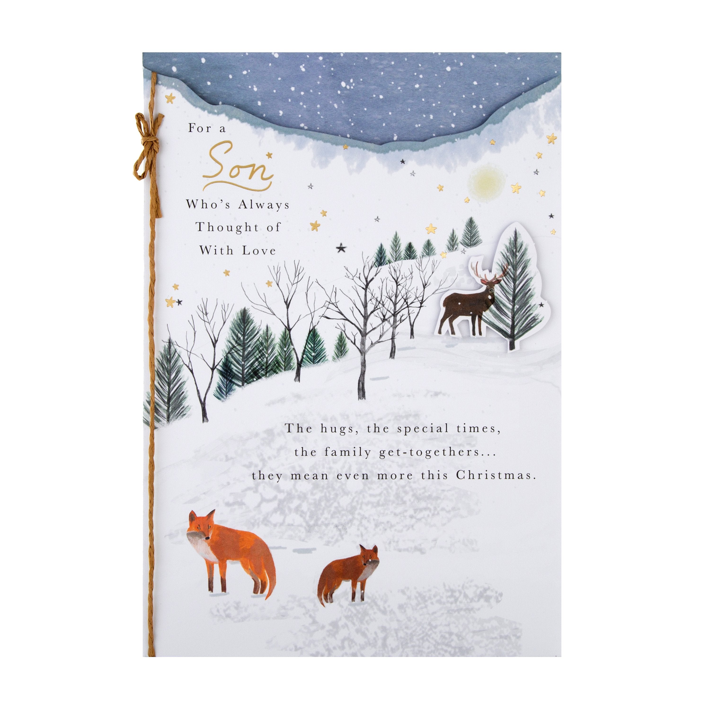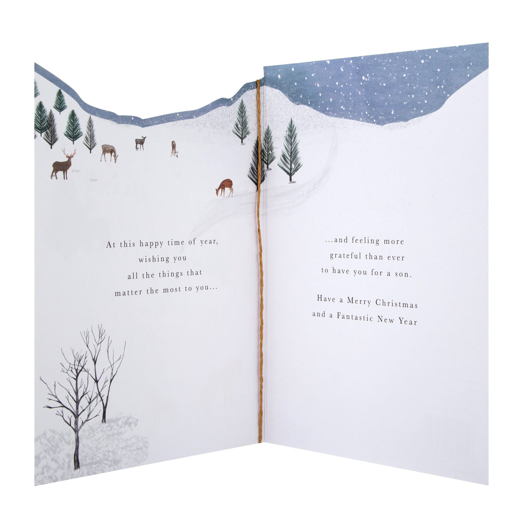 Let your much-loved son know how grateful you are for him, at Christmas time and always, with this lovely die-cut, illustrated card.