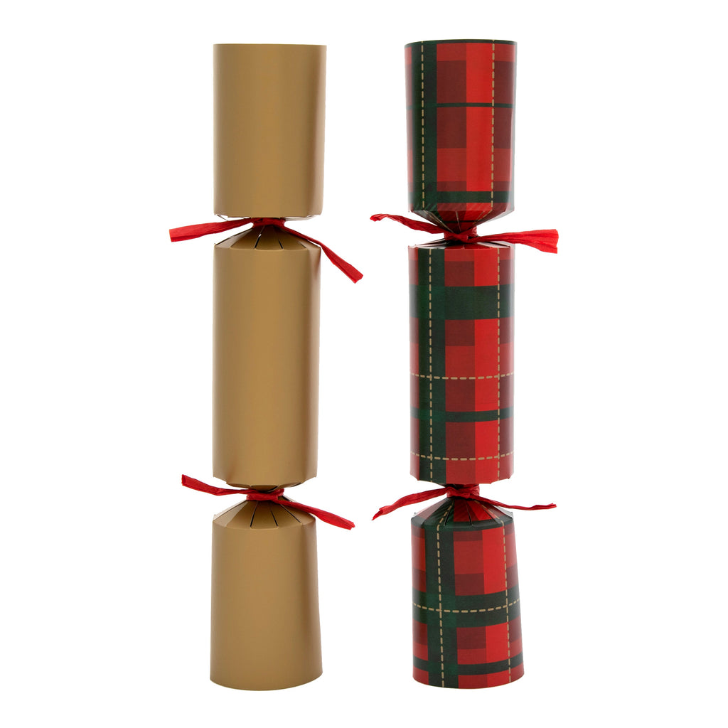 Christmas Crackers - Pack of 12 in 2 Gold & Tartan Designs