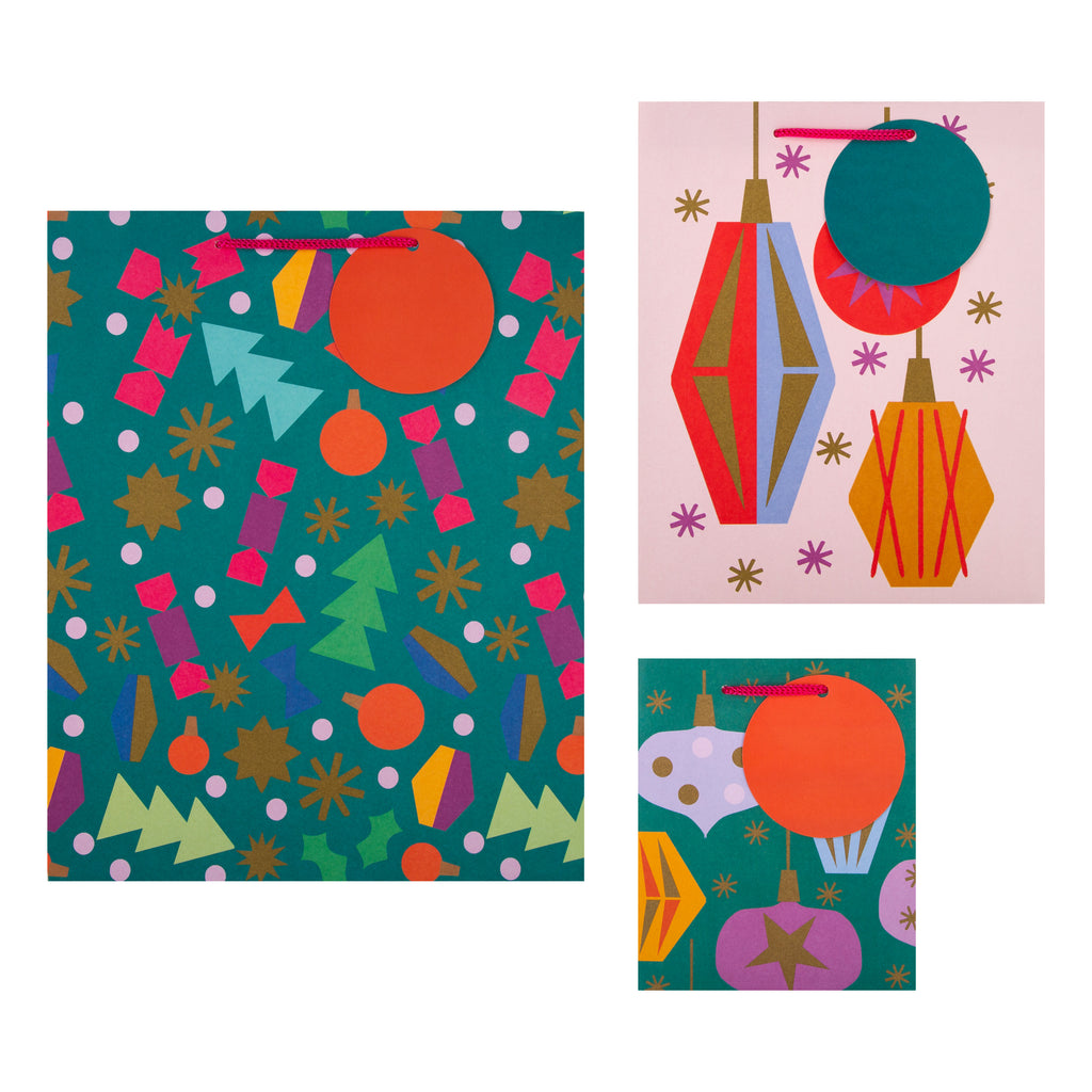Christmas Gift Bags - Pack of 3 in 3 Abstract Festive Designs