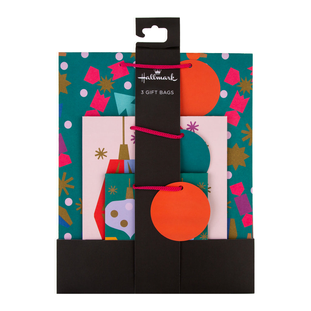 Get into that festive feeling and deliver their gifts in style, with this wonderful pack of 3 bauble patterned Christmas gift bags. The perfect way to make their presents look amazing under the tree.