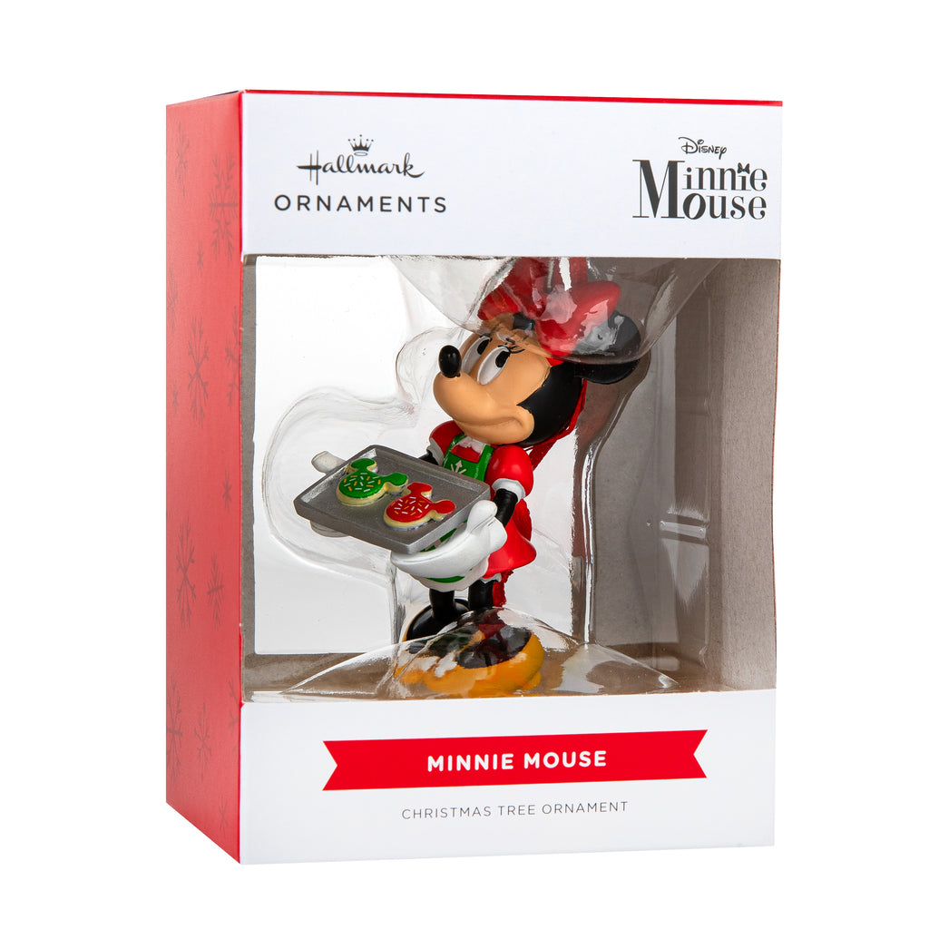 This ornament features Disney's Minnie Mouse with baked Christmas cookies, and is made of hard-wearing resin with a hanging attachment for easy display.