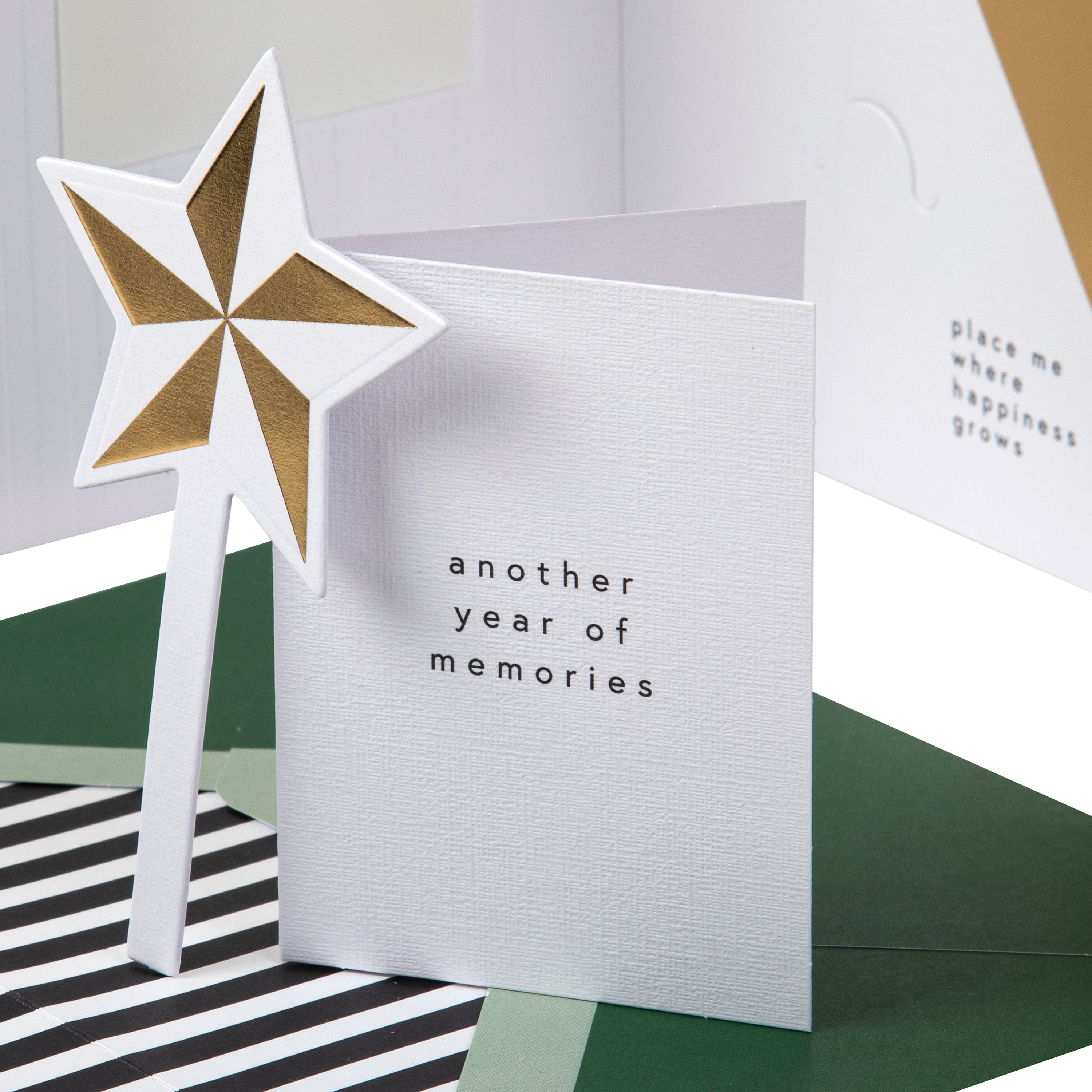 This card includes a mini card with the message 'another year of memories' on front, a gorgeous gold foiled floral keepsake and a frameable print design to frame and keep forever.