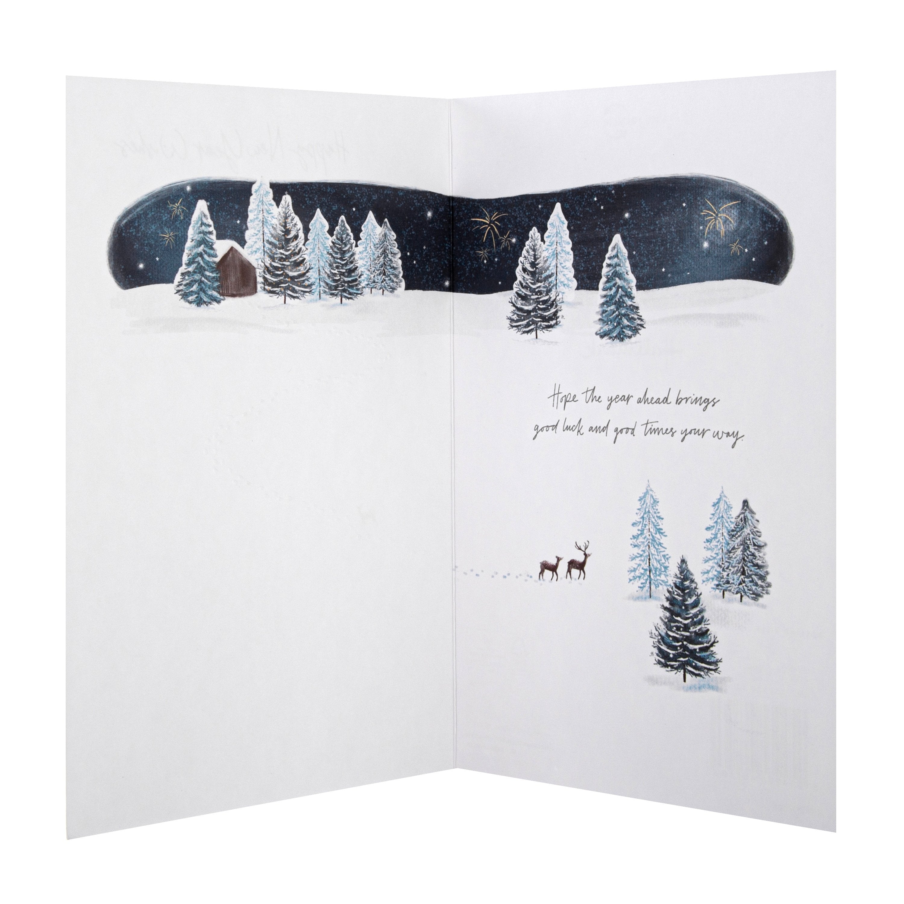 Write a kind message full of love, and wish those closest to you a Happy New Year, with this beautiful Winter scene card.
