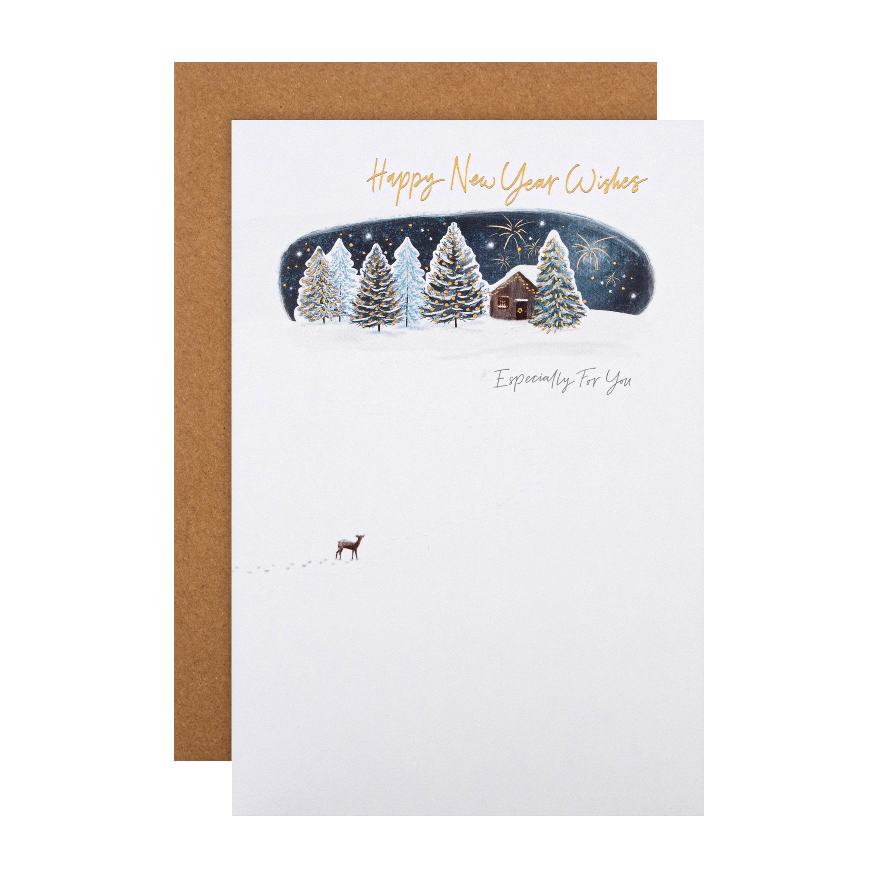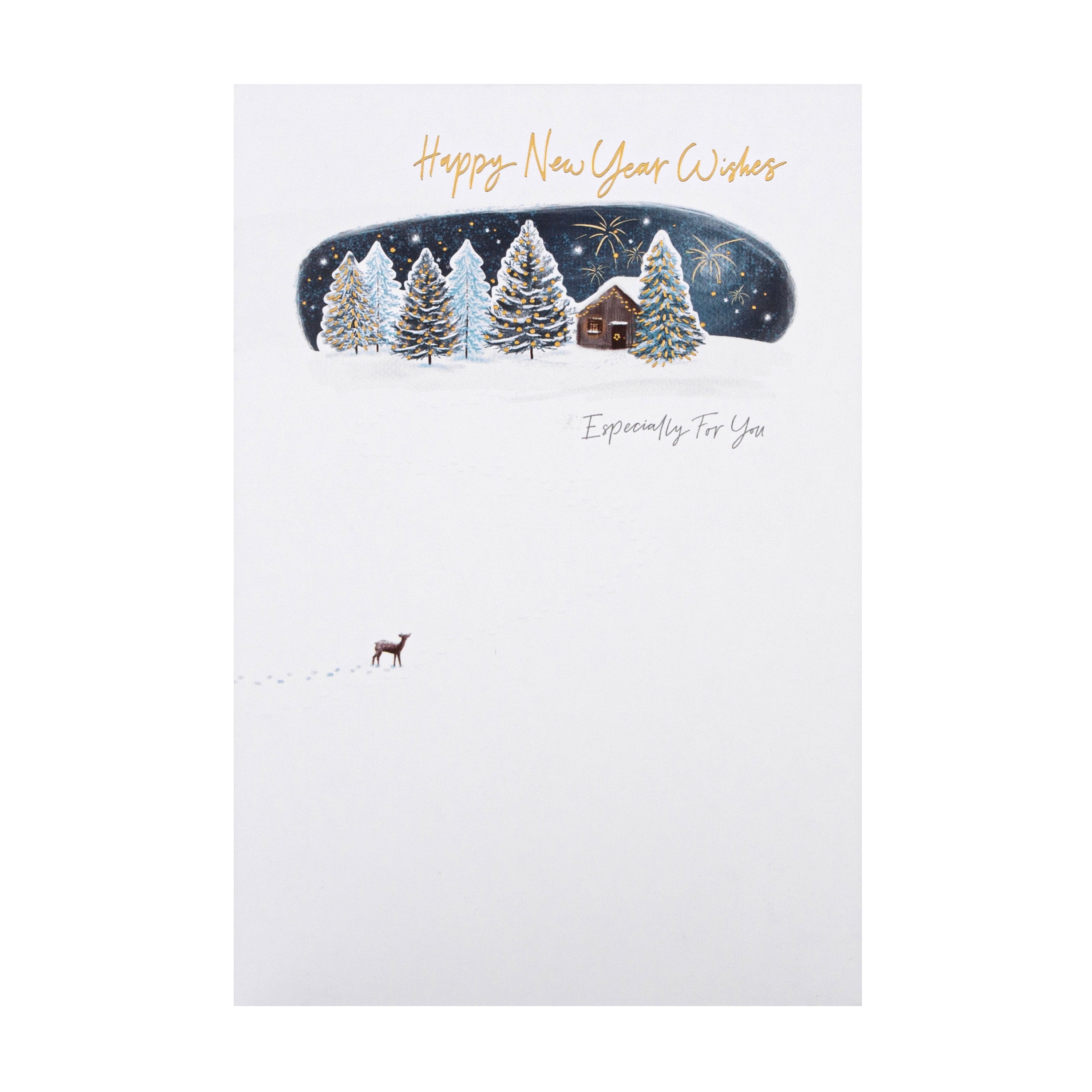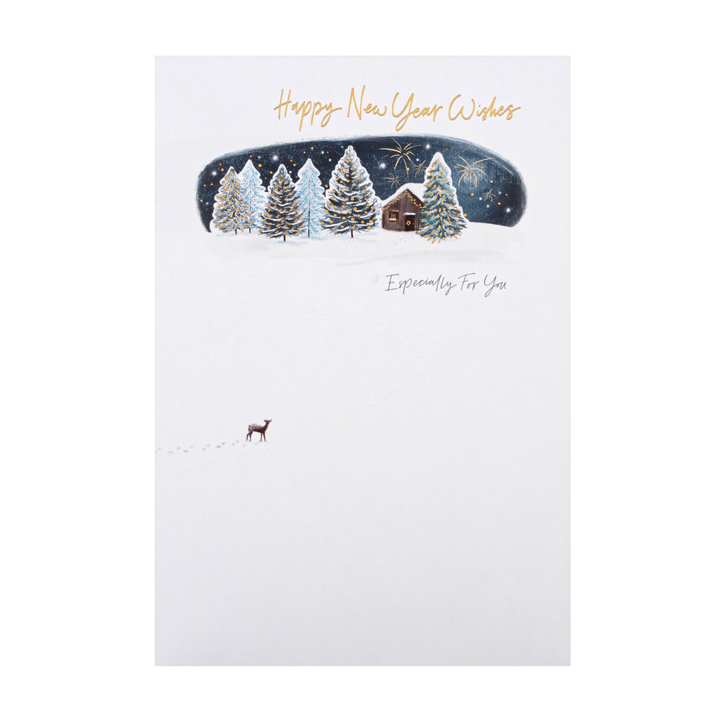 Happy New Year Card - Classic Winter's Snowy Night Design with Gold Foil