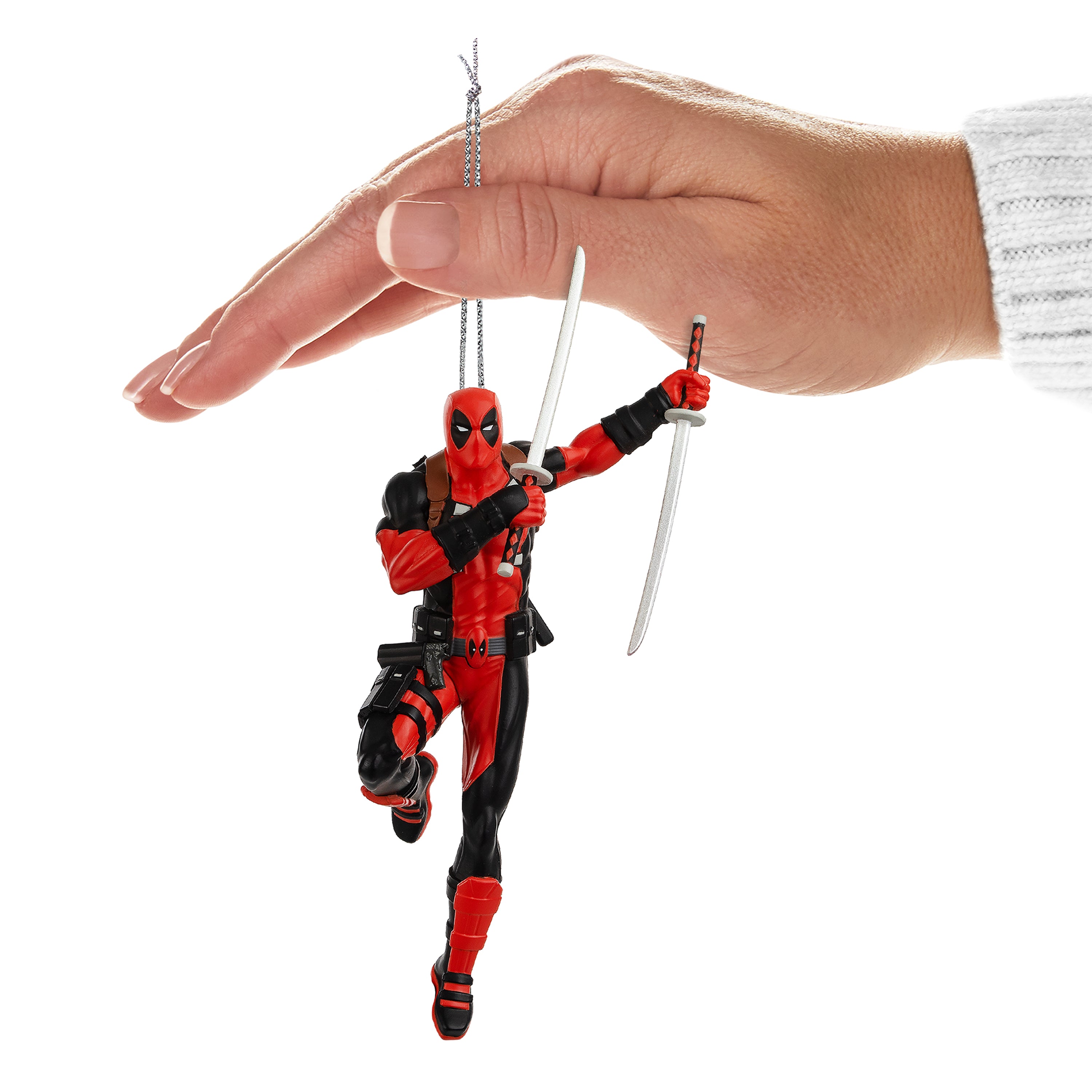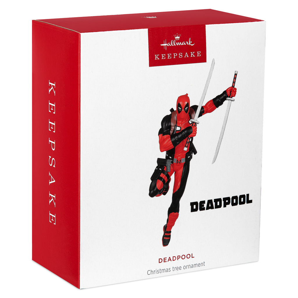 This hanging ornament is made from hard-wearing resin and features MARVEL's wisecracking hero, Deadpool wielding his Katanas and a hanger attachment. This ornament comes complete with one Keepsake Ornament in gift box for easy gift giving, preservation and storage.
