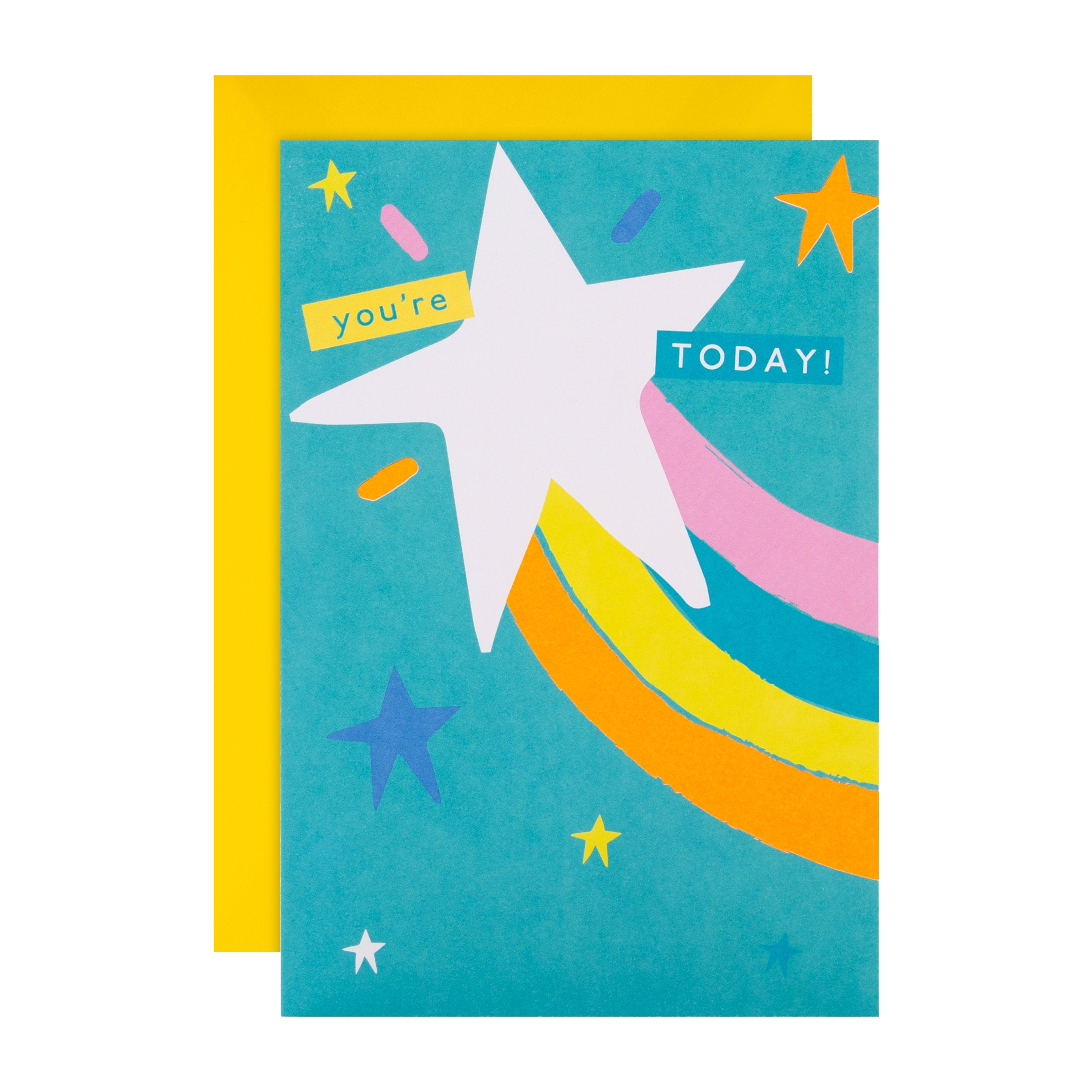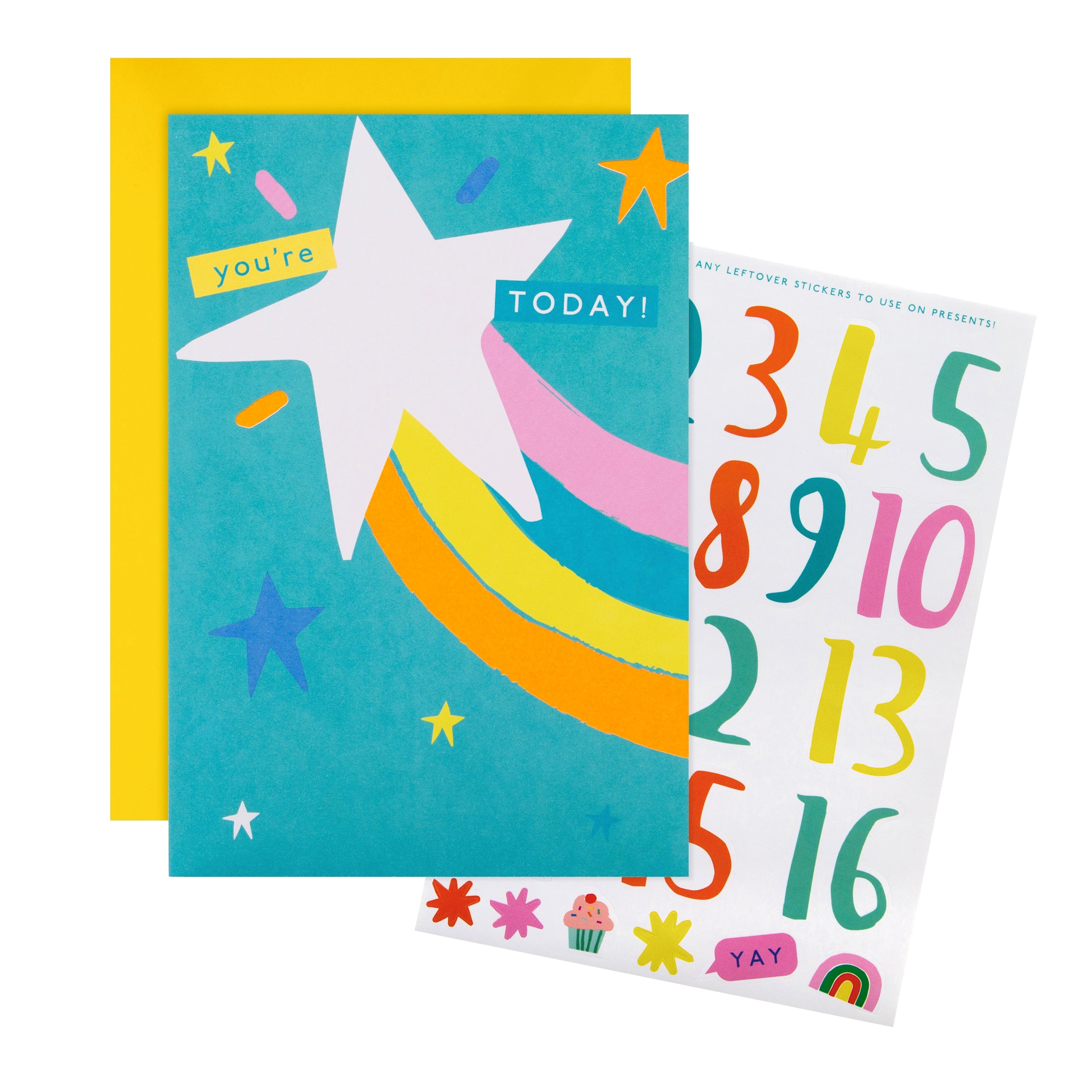 Kids' Birthday Card - Rainbow Star Design with Customisable Sticker Sheet