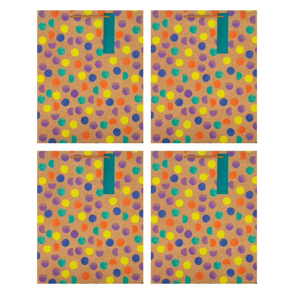 Large Any Occasion Gift Bags Pack - 4 Bags in 1 Colourful Spots Design