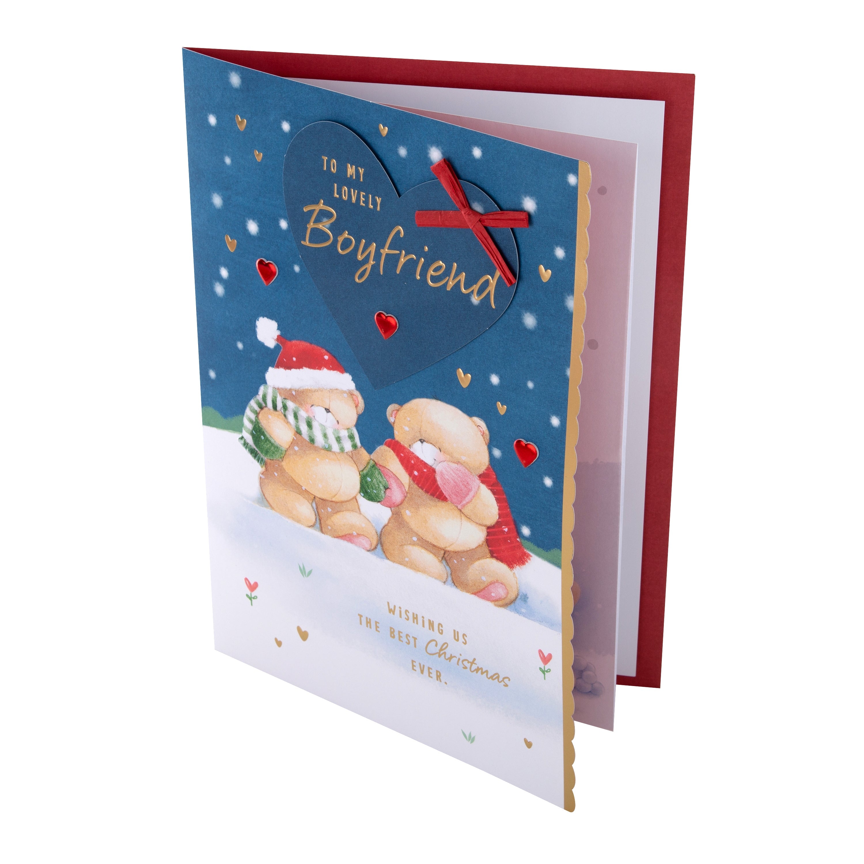 Large Luxury Boxed Christmas Card for Boyfriend - Cute Forever Friends Winter Love Design