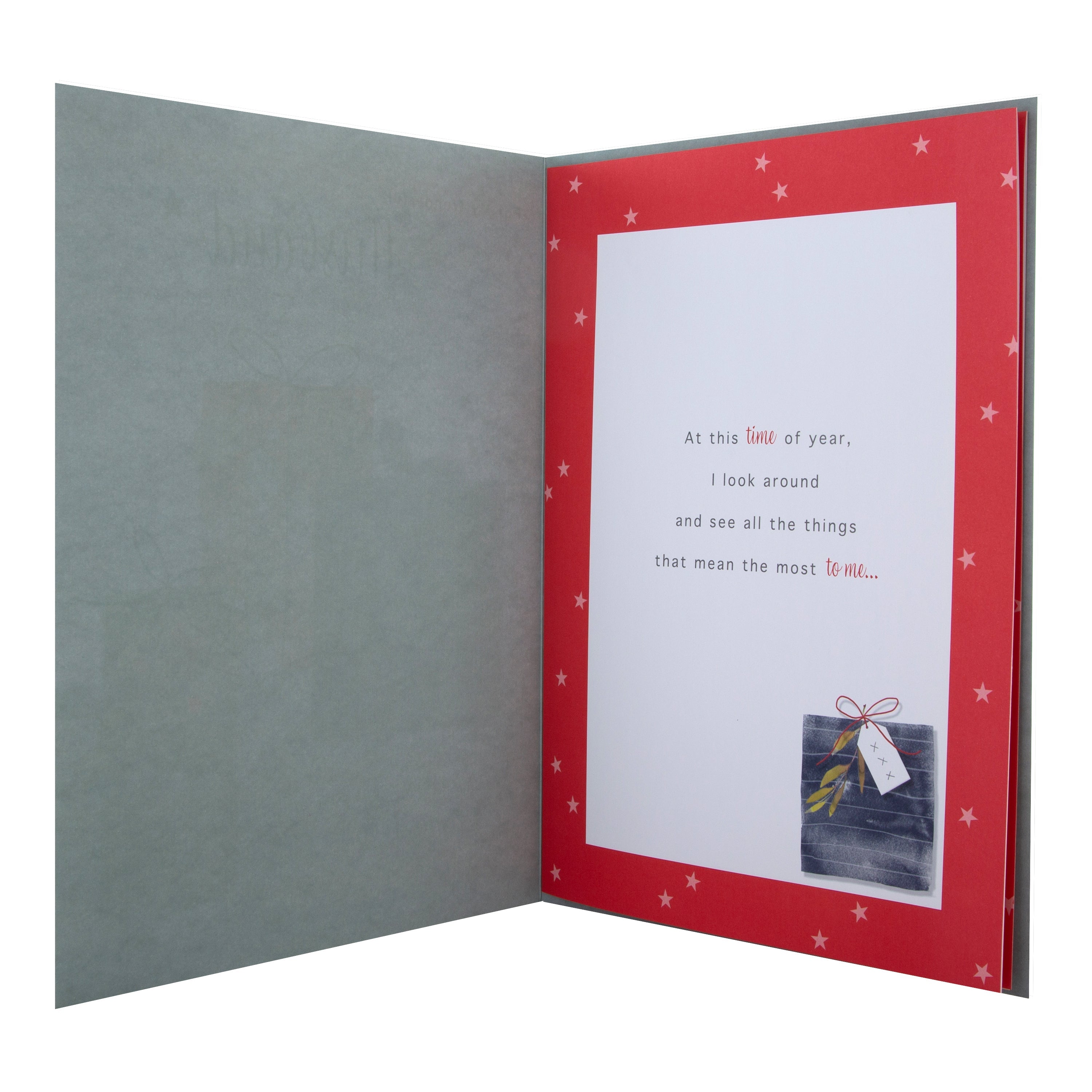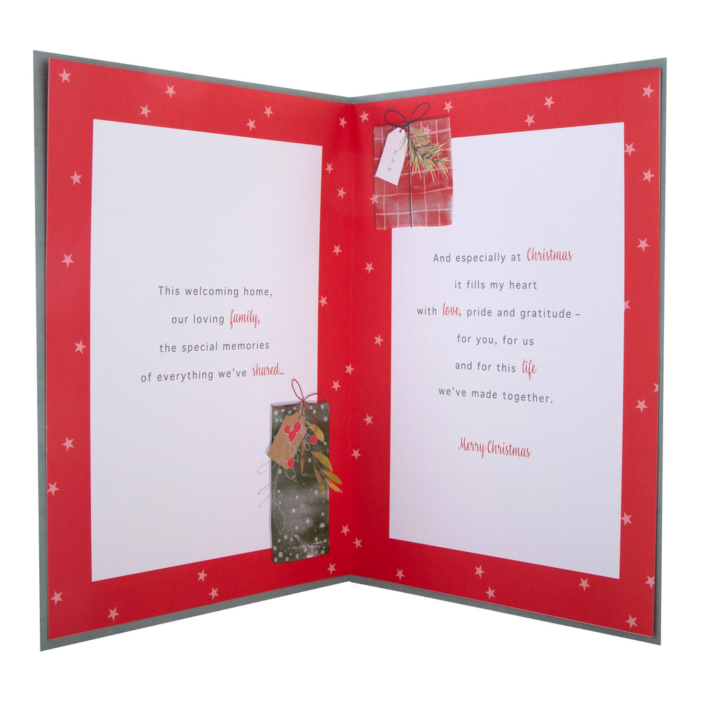 Message Inside Card Reads: At this time of year, I look around and see all the things that mean the most to me... This welcoming home, our loving family, the special memories of everything we've shared... And especially at Christmas it fills my heart with love, pride and gratitude - for you, for us and for this life we've made together. Merry Christmas