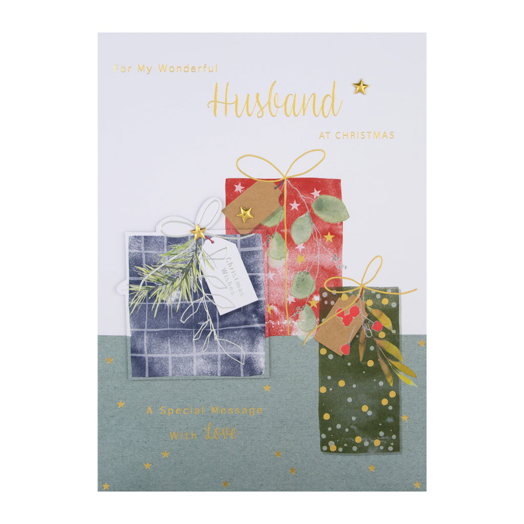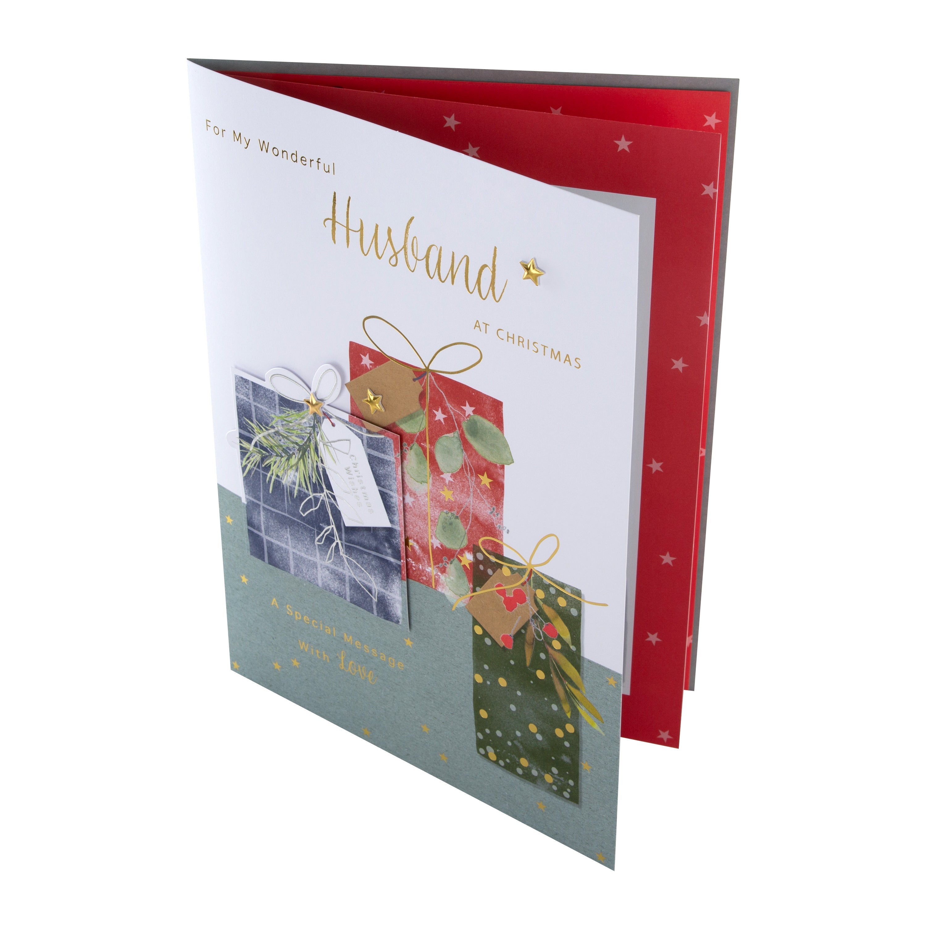 Large Luxury Boxed Christmas Card for Husband - Traditional Wrapped Gifts Design