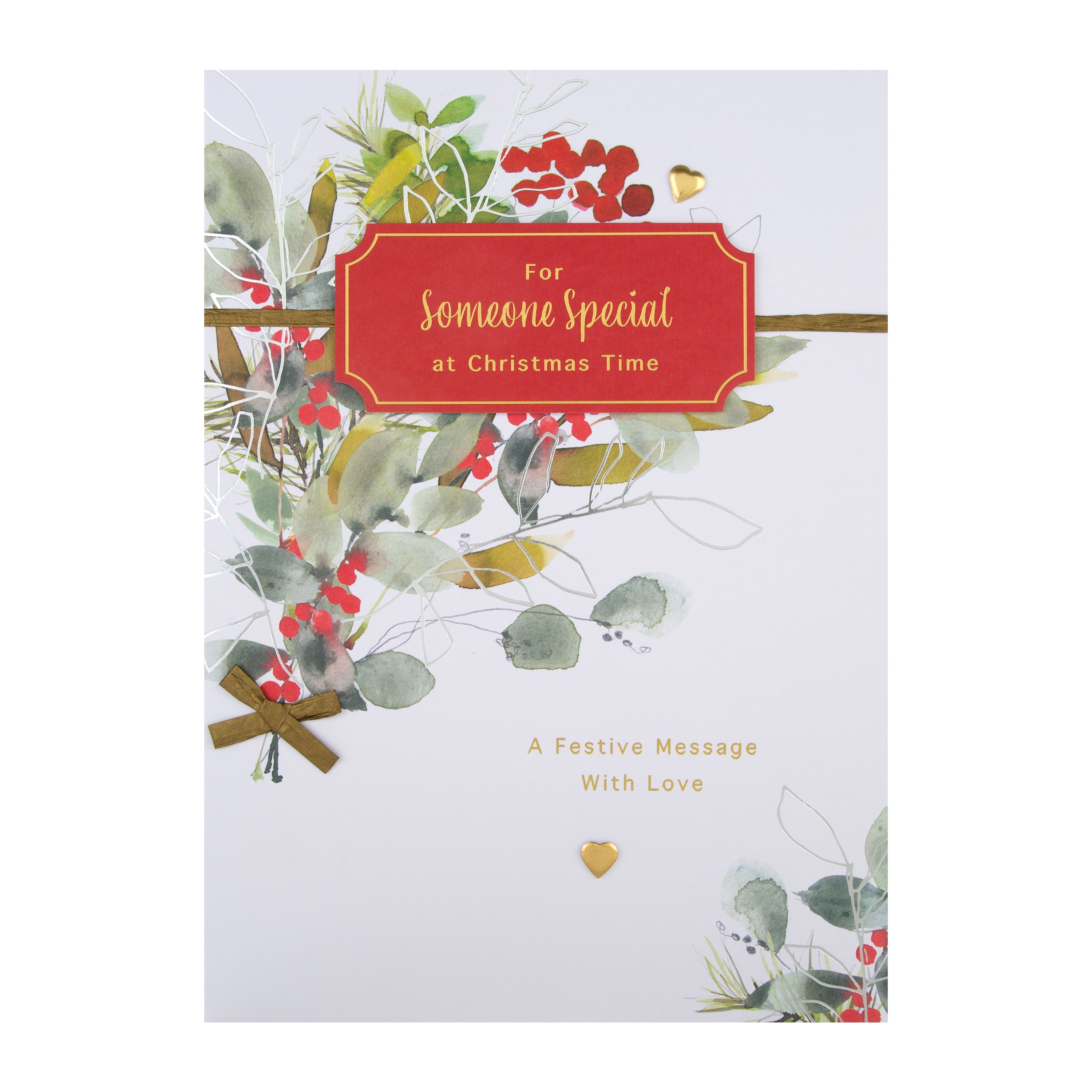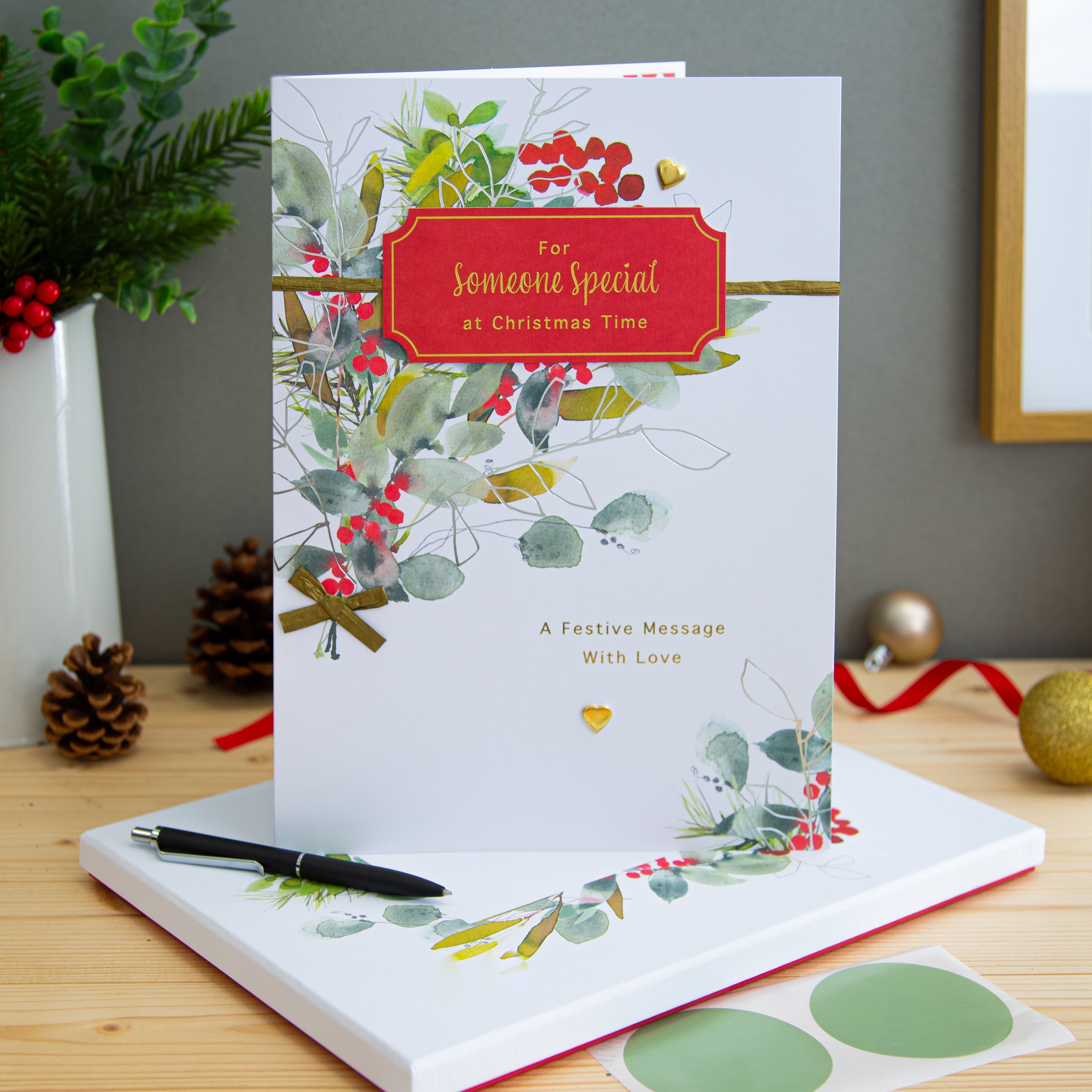 Large Luxury Boxed Christmas Card for Someone Special - Classic Seasonal Foliage Design