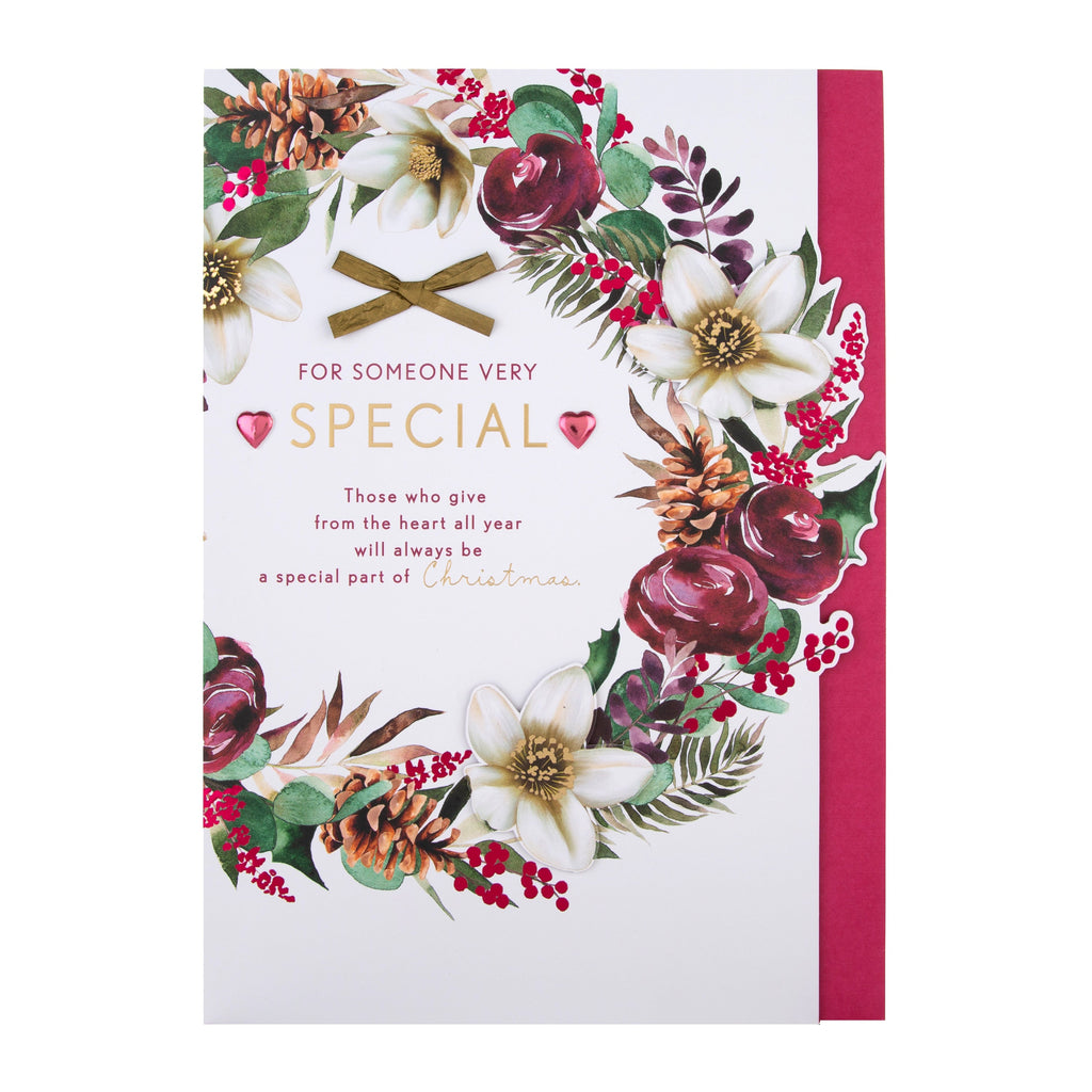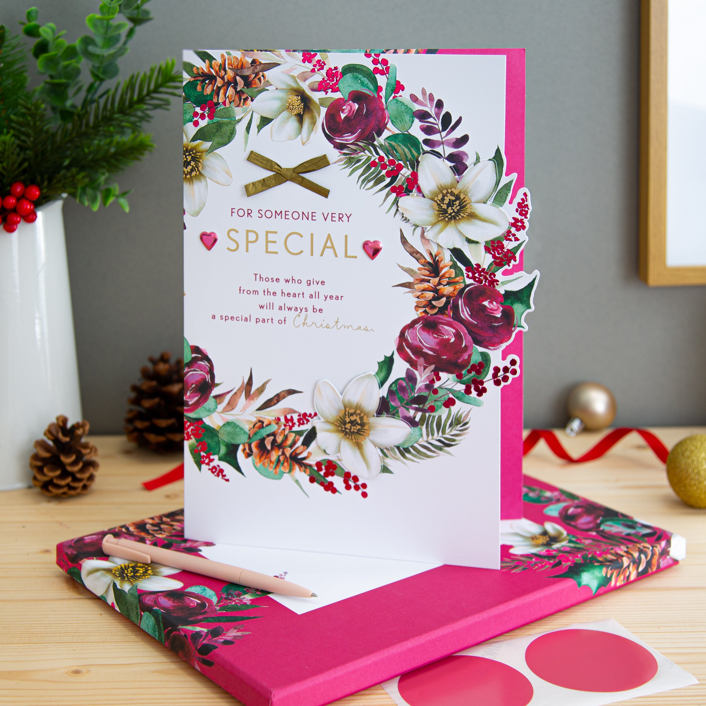 Large Luxury Boxed Christmas Card for Someone Special - Traditional Wreath and Verse Design
