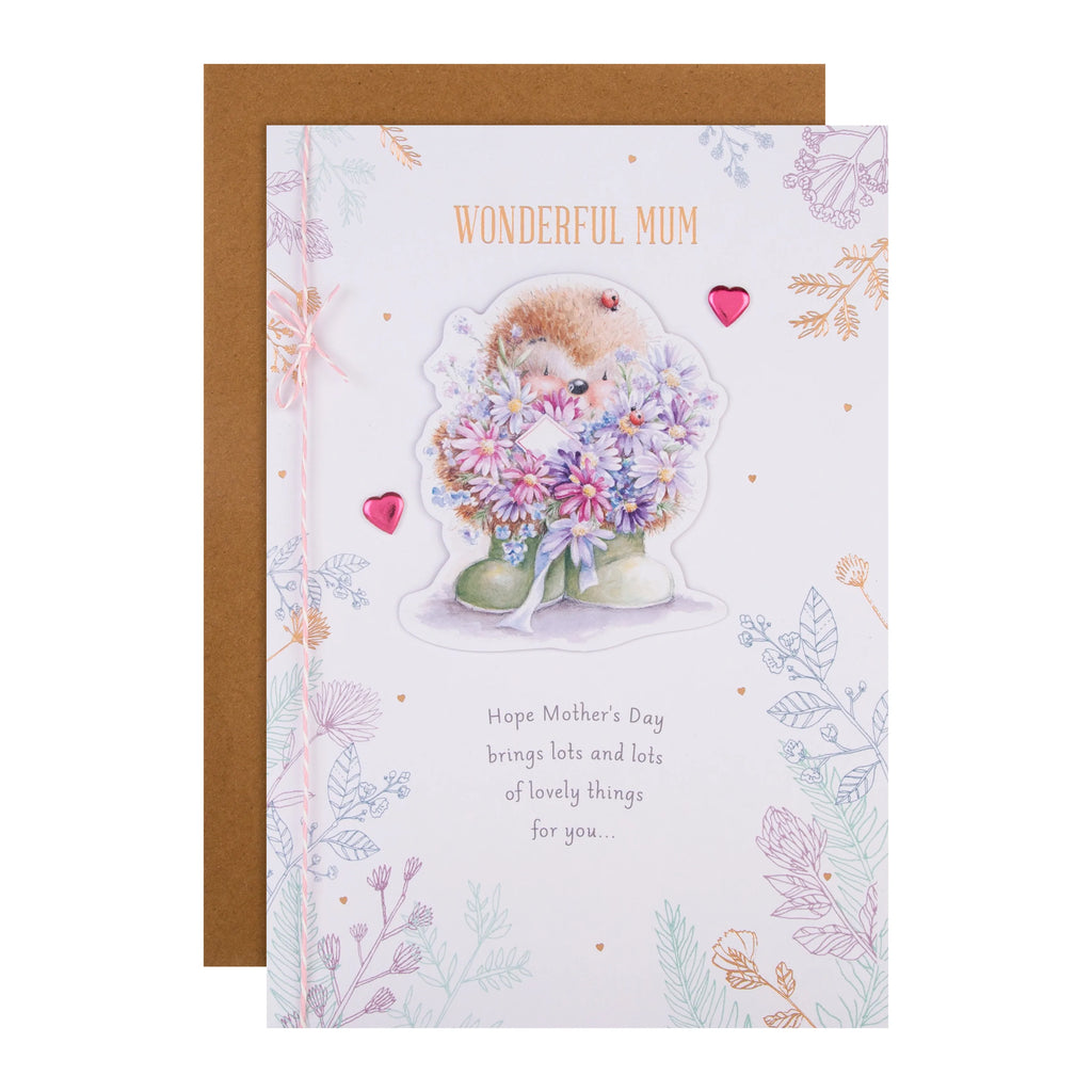 Printed on high-quality board, this card features a paper insert, a 3D attachment, pink paper heart gems, copper foil details, and comes complete with a co-ordinating brown Kraft, Hallmark branded envelope.