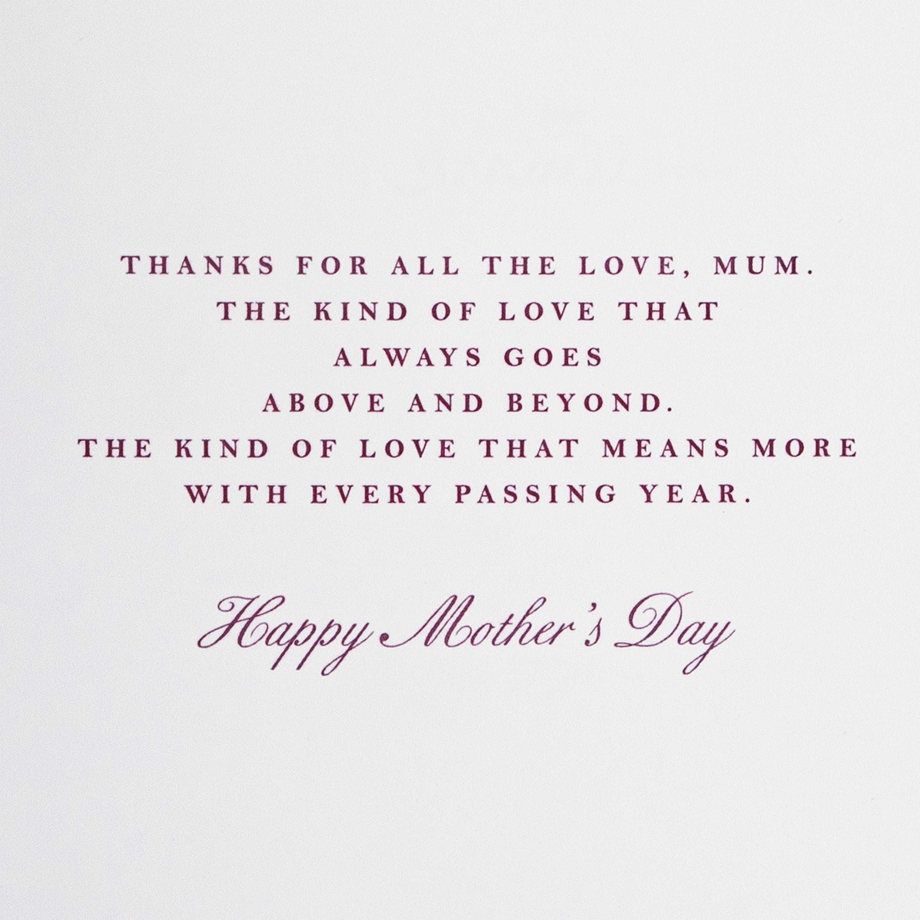 Message Inside Reads: Thanks for all the love, Mum. The kind of love that always goes above and beyond. The kind of love that means more with every passing year. Happy Mother's Day