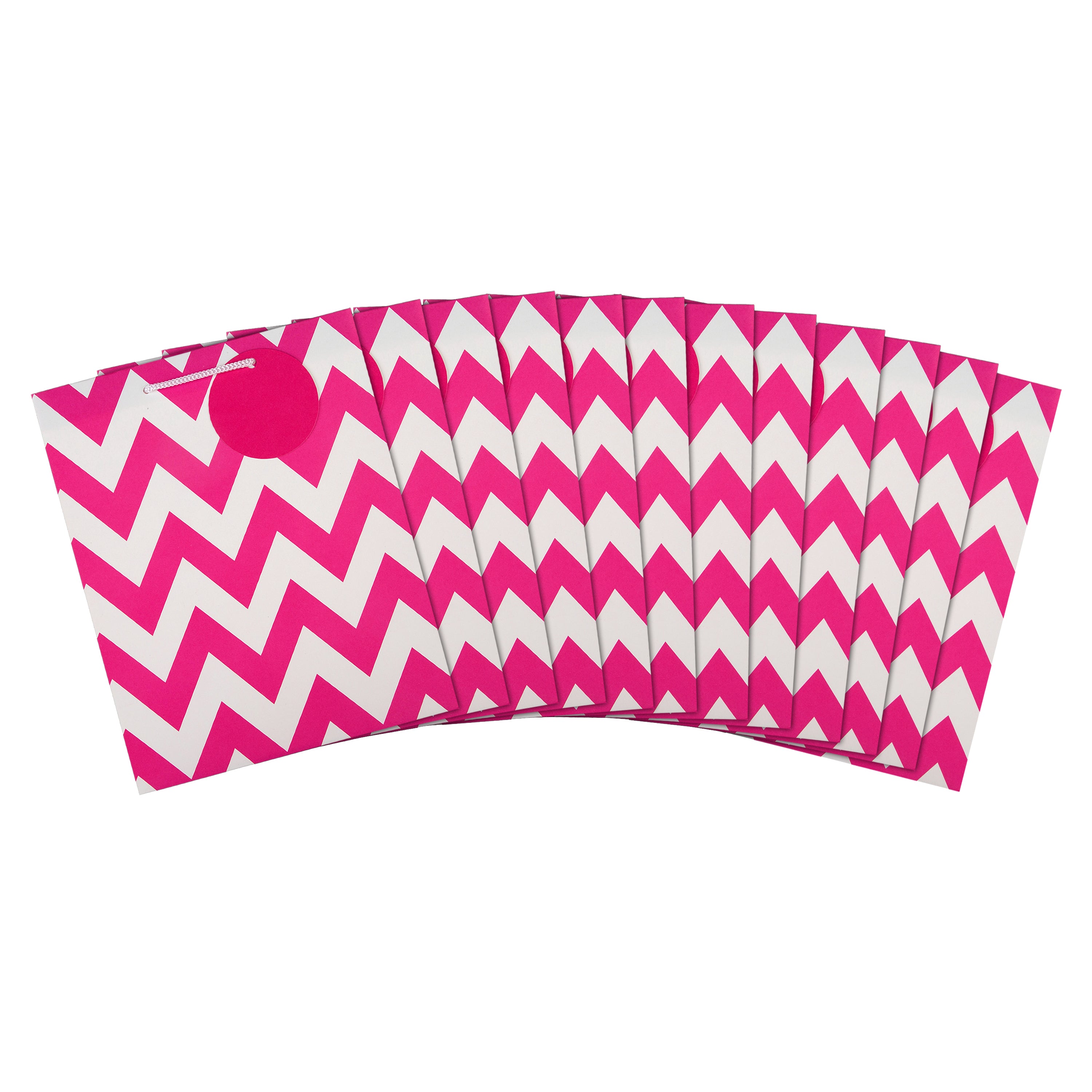 Multi-Occasion Medium Gift Bag Pack - 12 Bags in 1 Pink Zig-Zag Design
