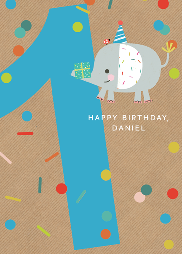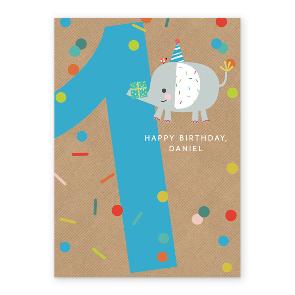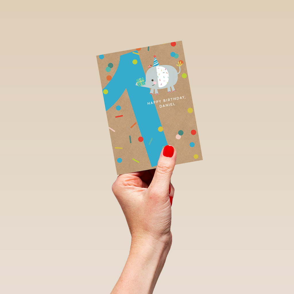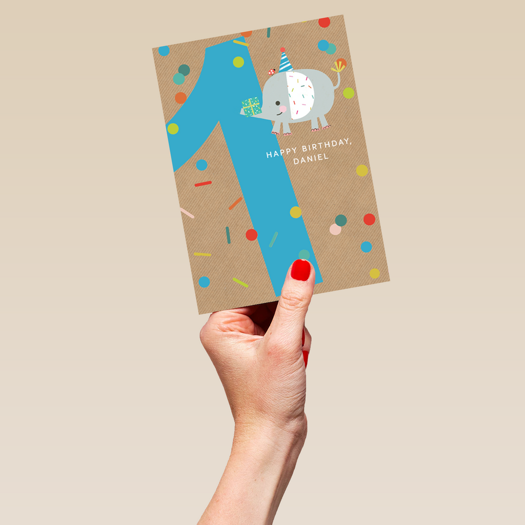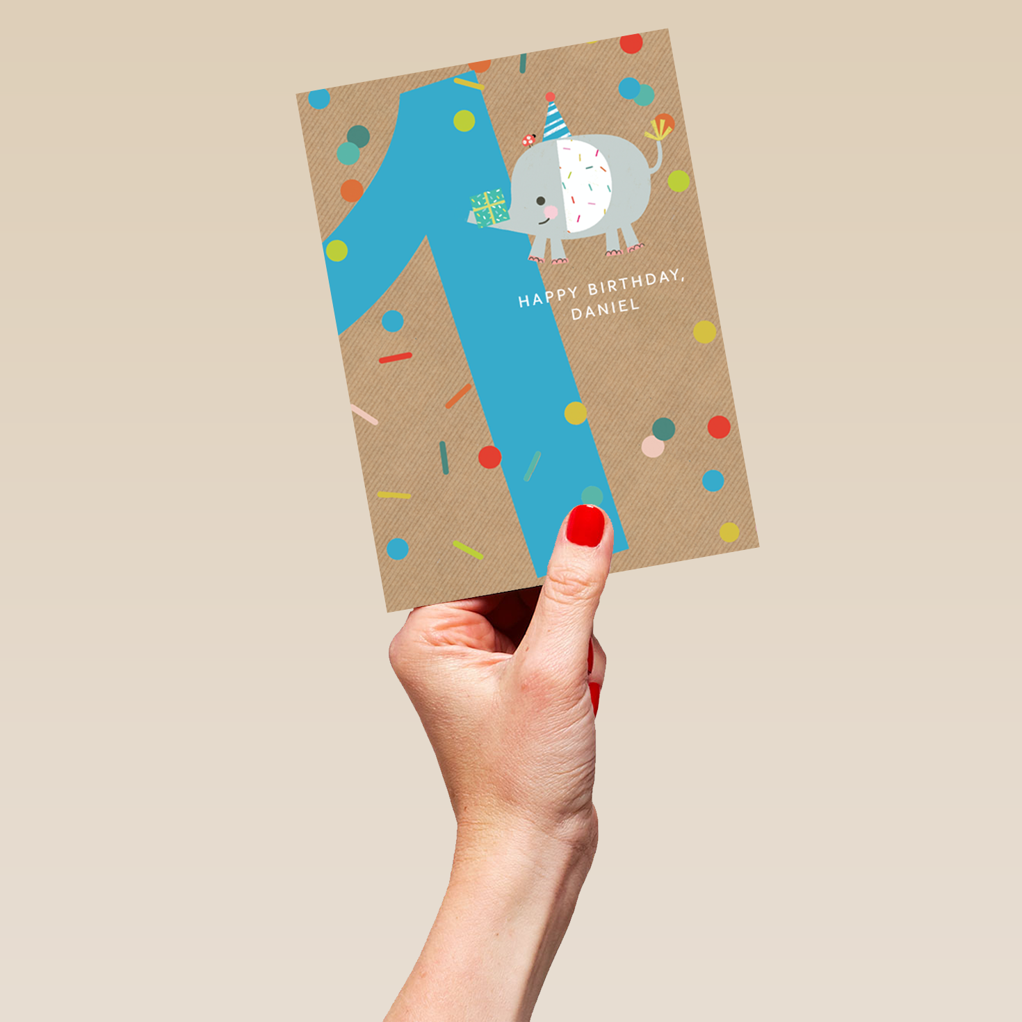 Show them you care with a personalised 1st birthday cute baby elephant blue number card from Hallmark. Our greetings cards are printed on premium quality, FSC®-certified card & delivered nationwide.