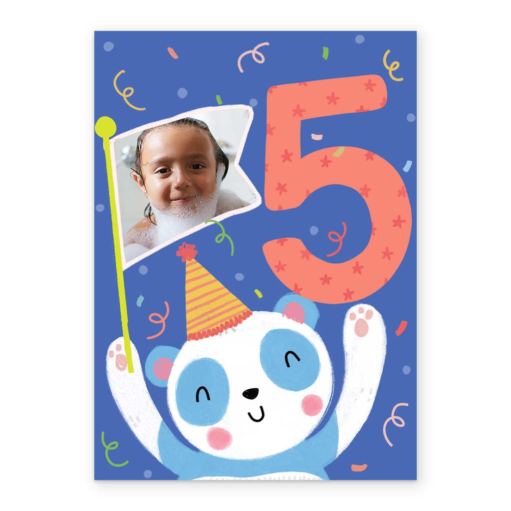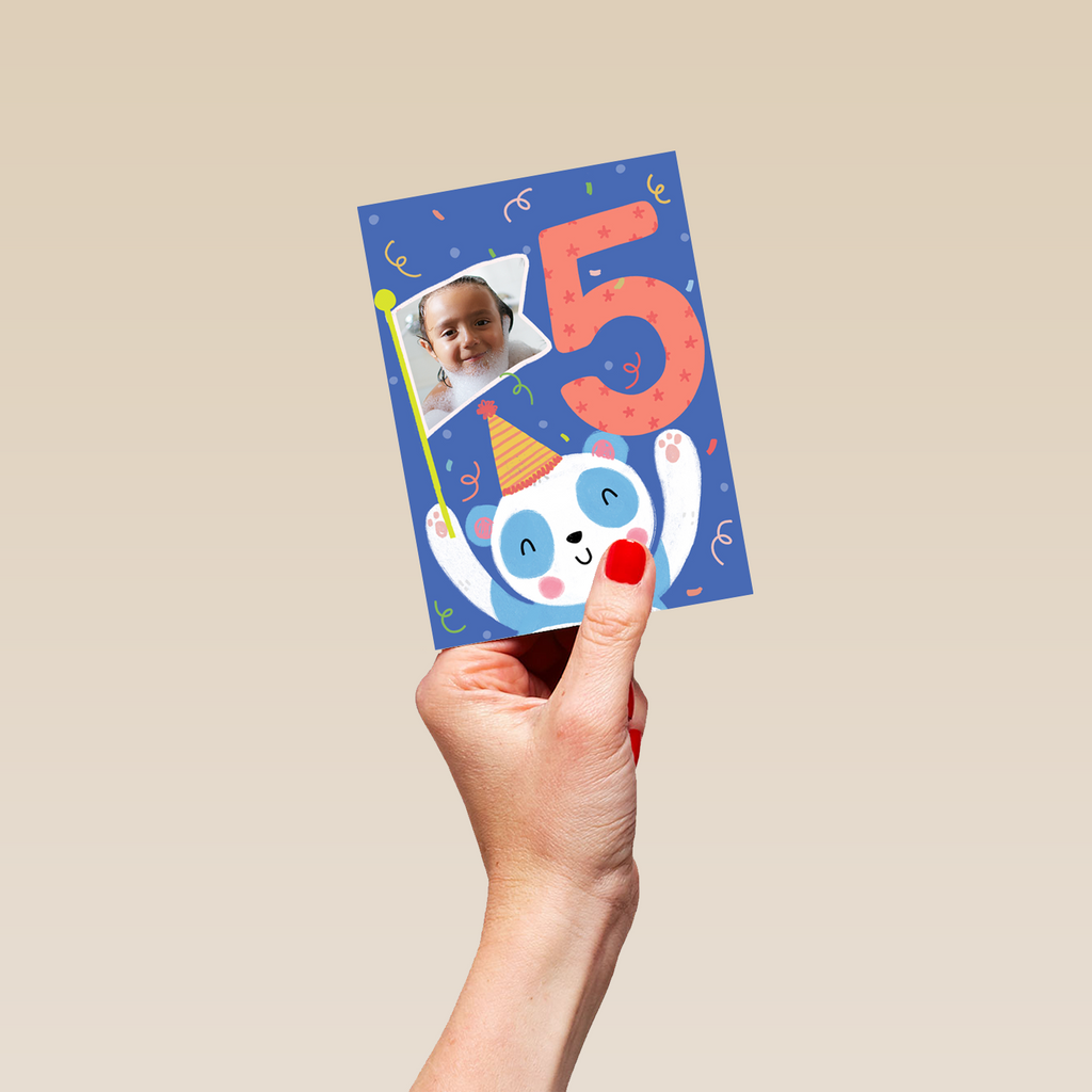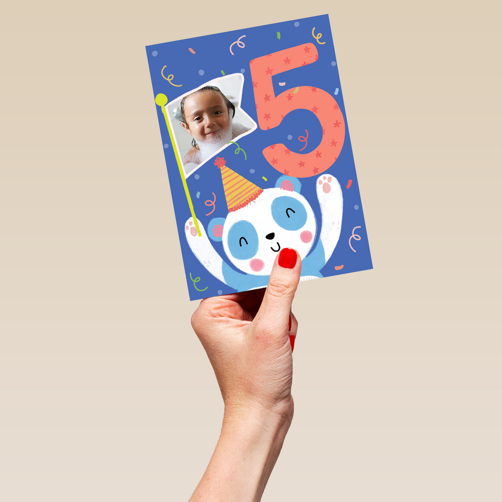 Show them you care with a personalised 5th birthday colourful panda photo upload card from Hallmark. Our greetings cards are printed on premium quality, FSC®-certified card & delivered nationwide.