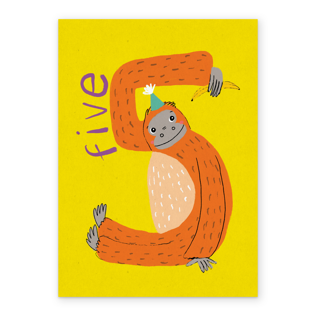 Personalised 5th Birthday Fun Ape Figure Five Card