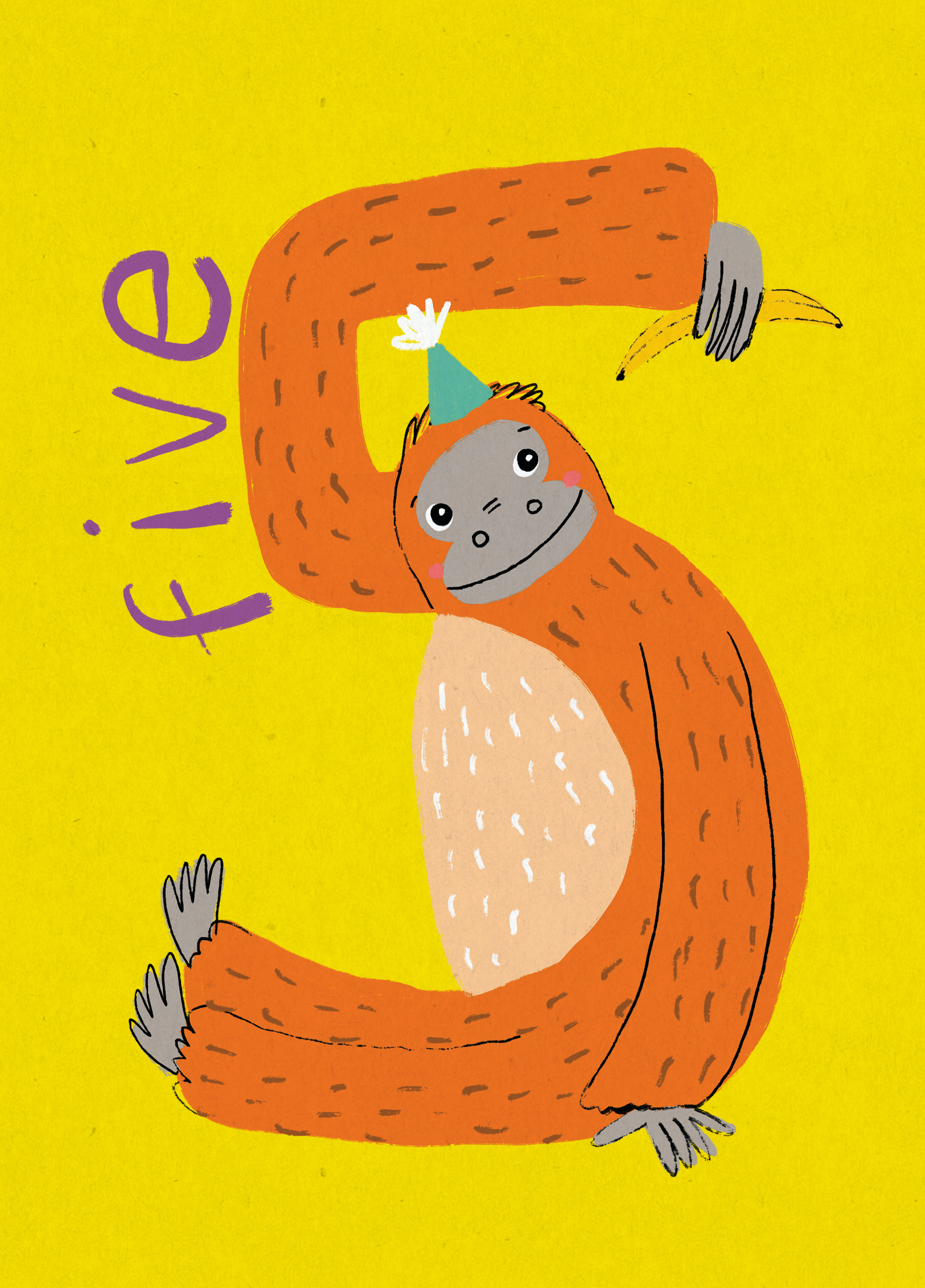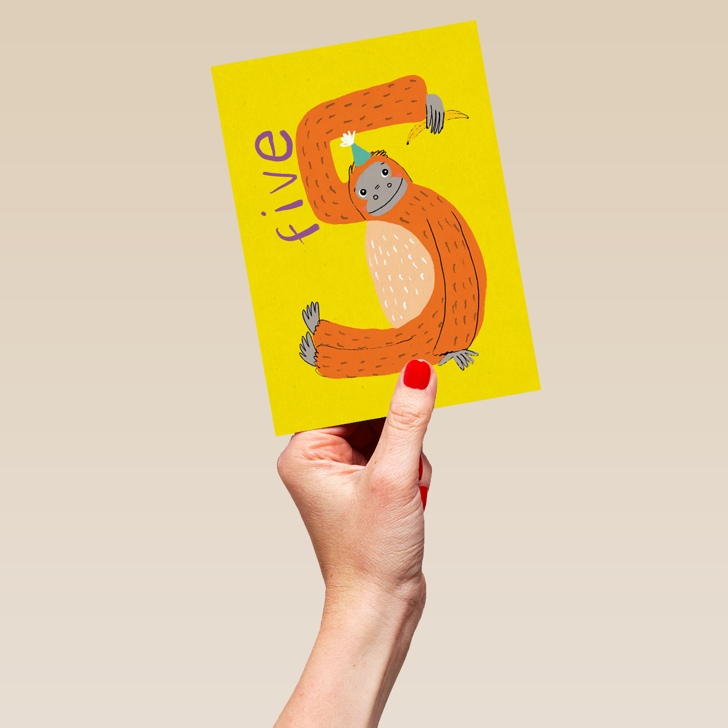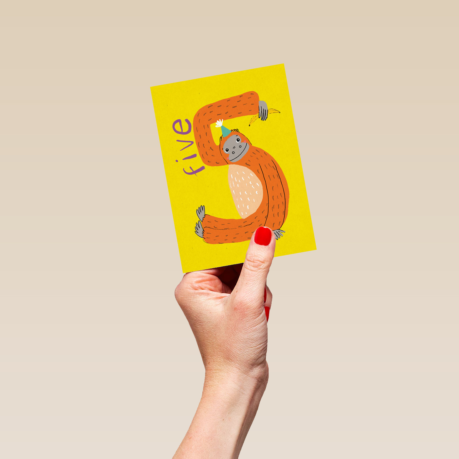 Show them you care with a personalised 5th birthday fun ape figure five card from Hallmark. Our greetings cards are printed on premium quality, FSC®-certified card & delivered nationwide.