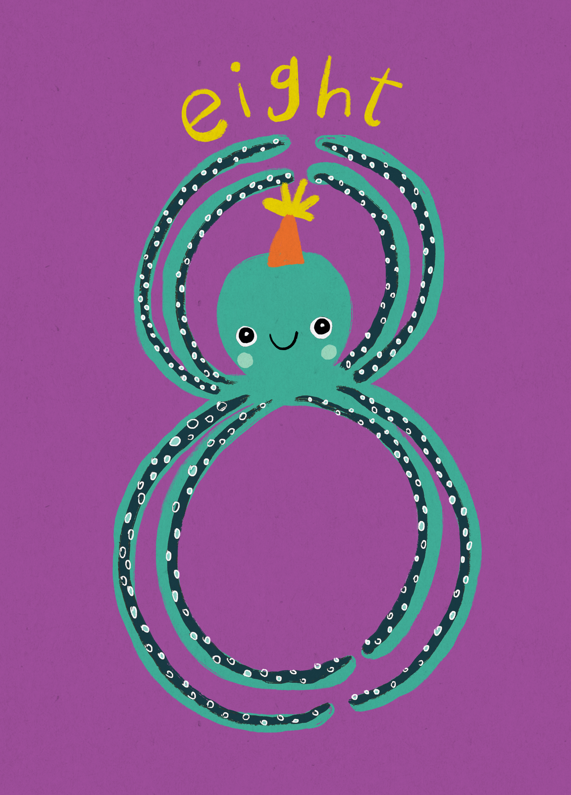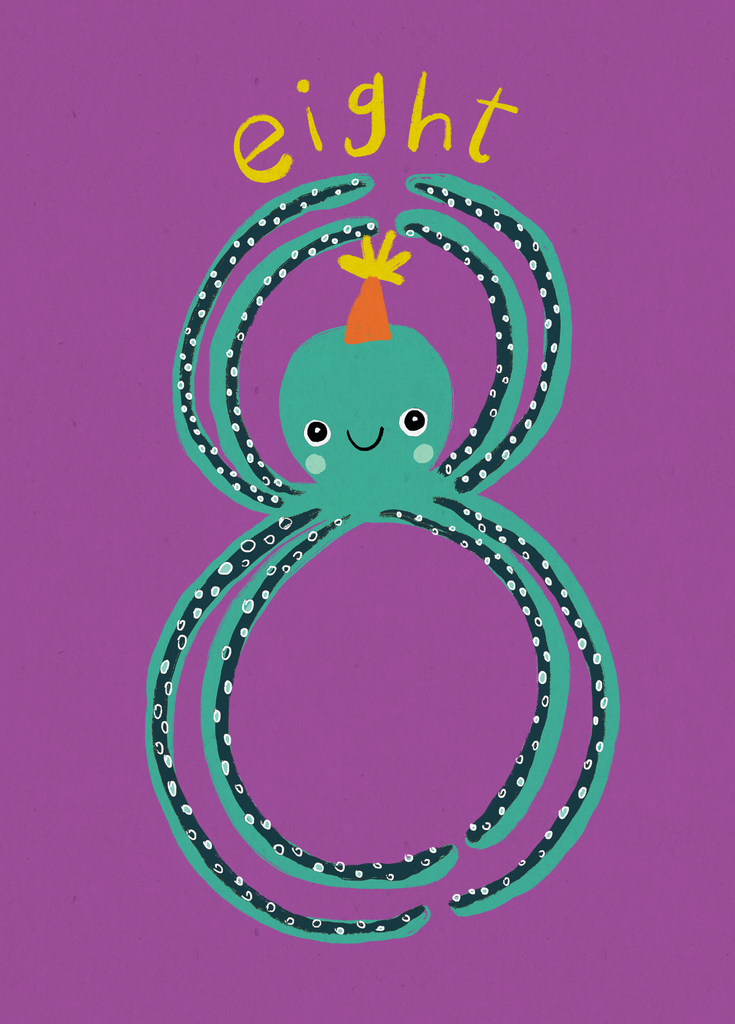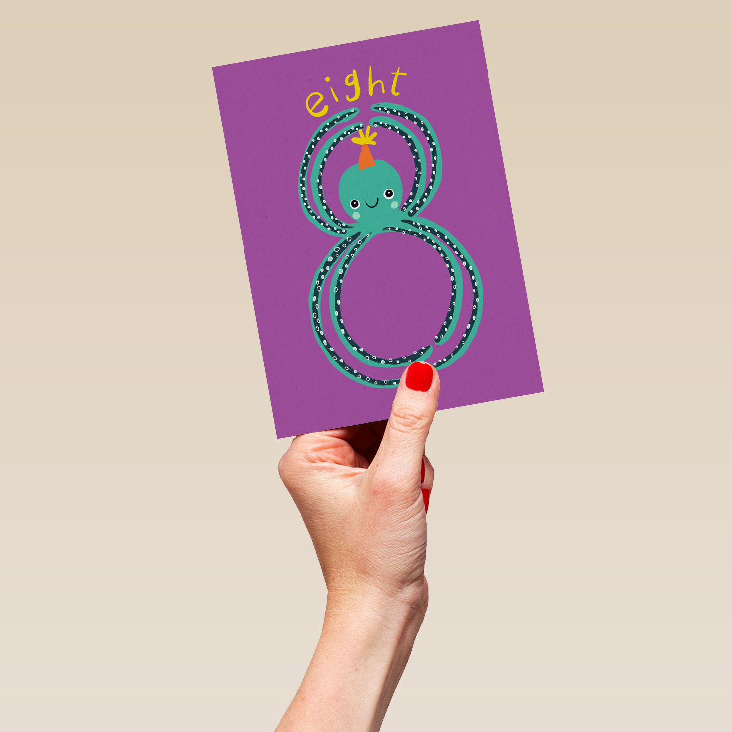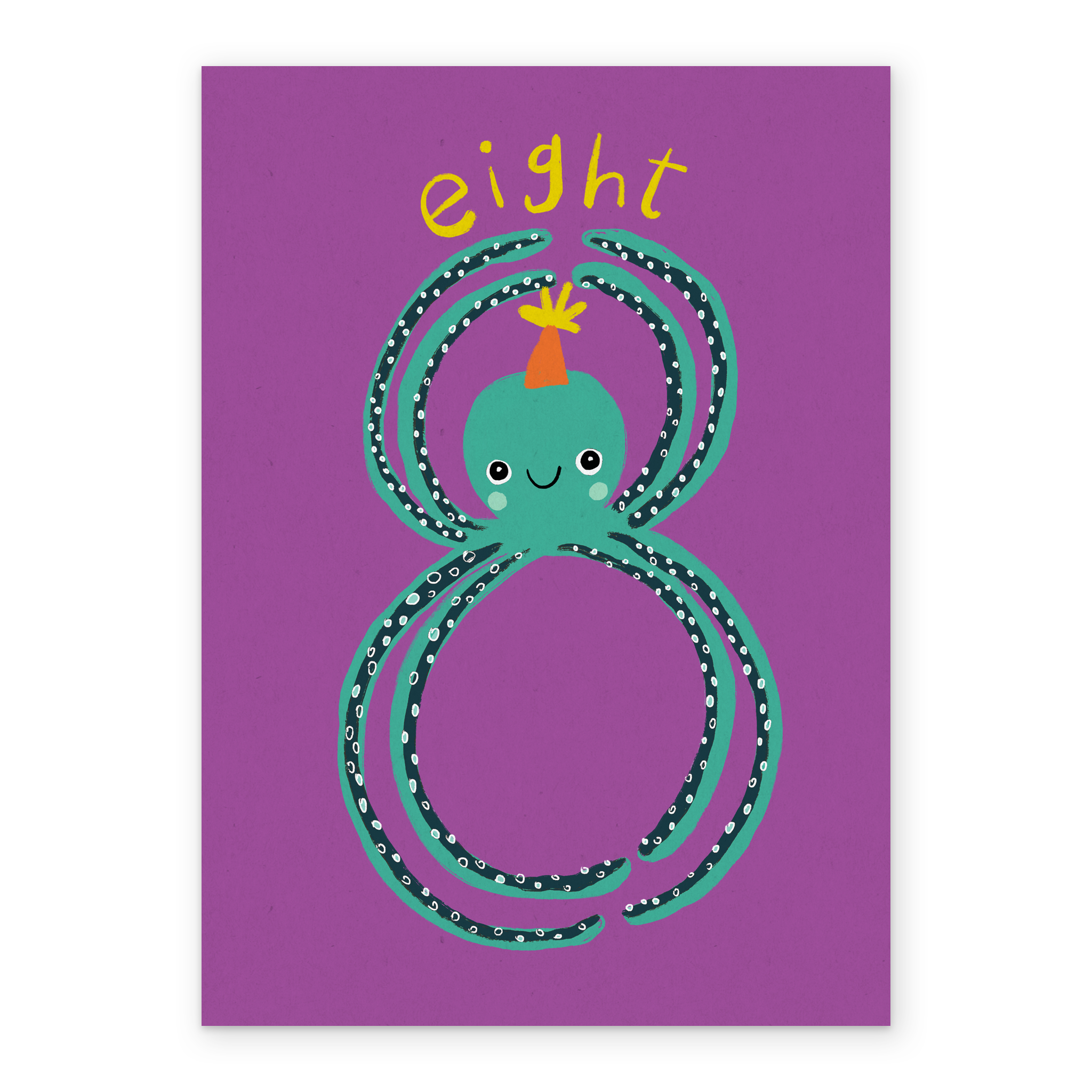 Personalised 8th Birthday Fun Octopus Figure Eight Card