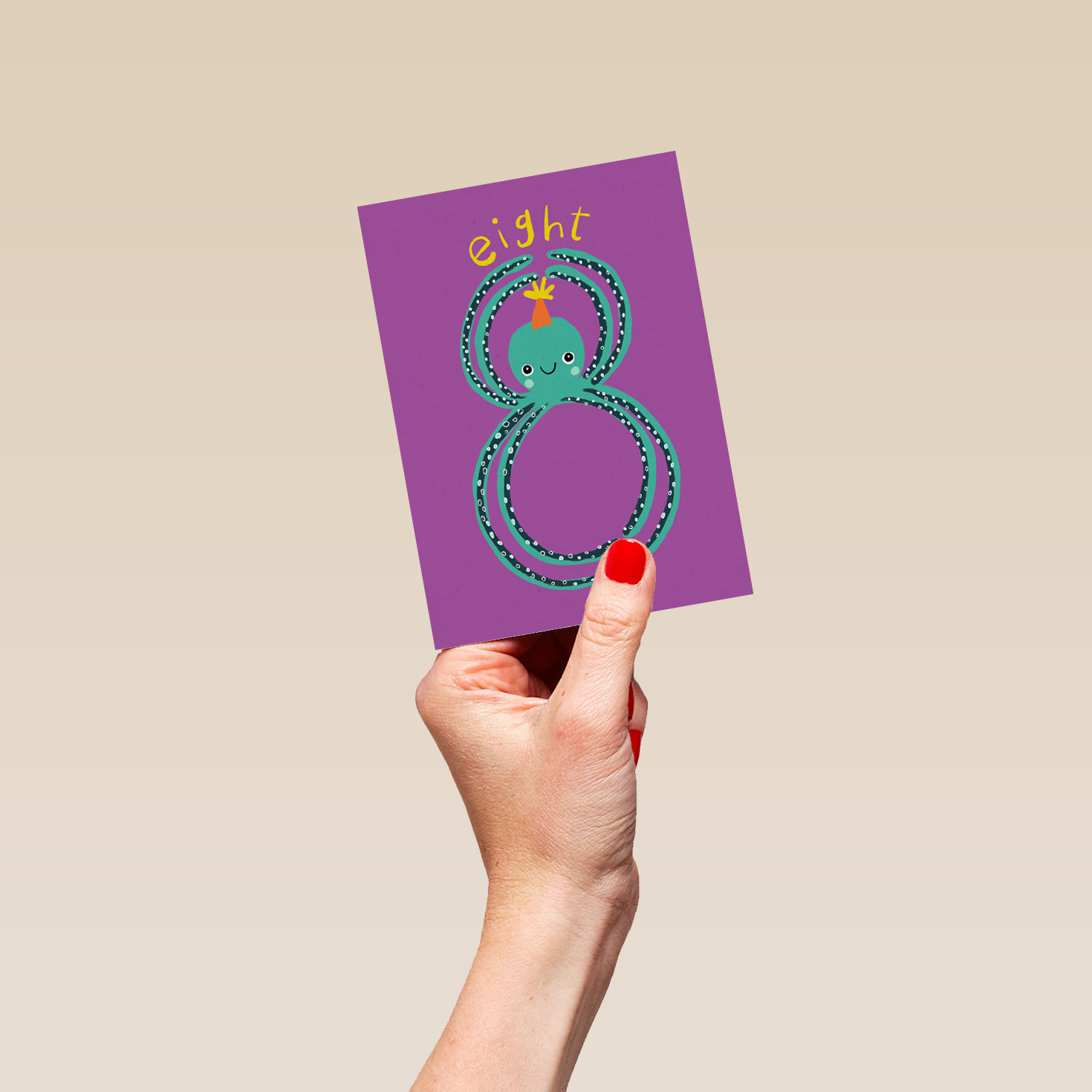 Show them you care with a personalised 8th birthday fun octopus figure eight card from Hallmark. Our greetings cards are printed on premium quality, FSC®-certified card & delivered nationwide.