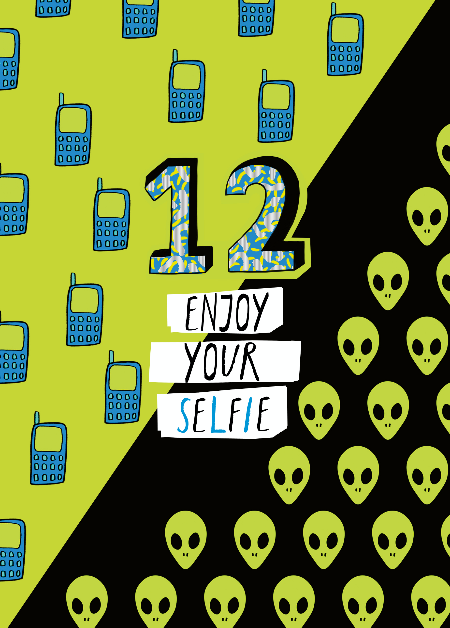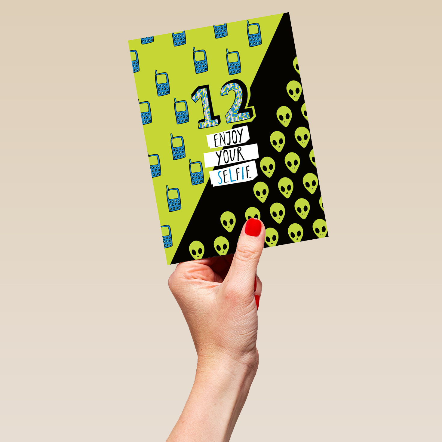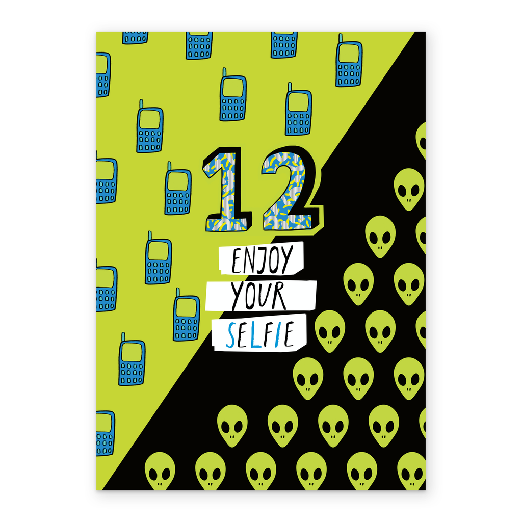 Personalised Aliens Phones Selfies 12th Birthday Card