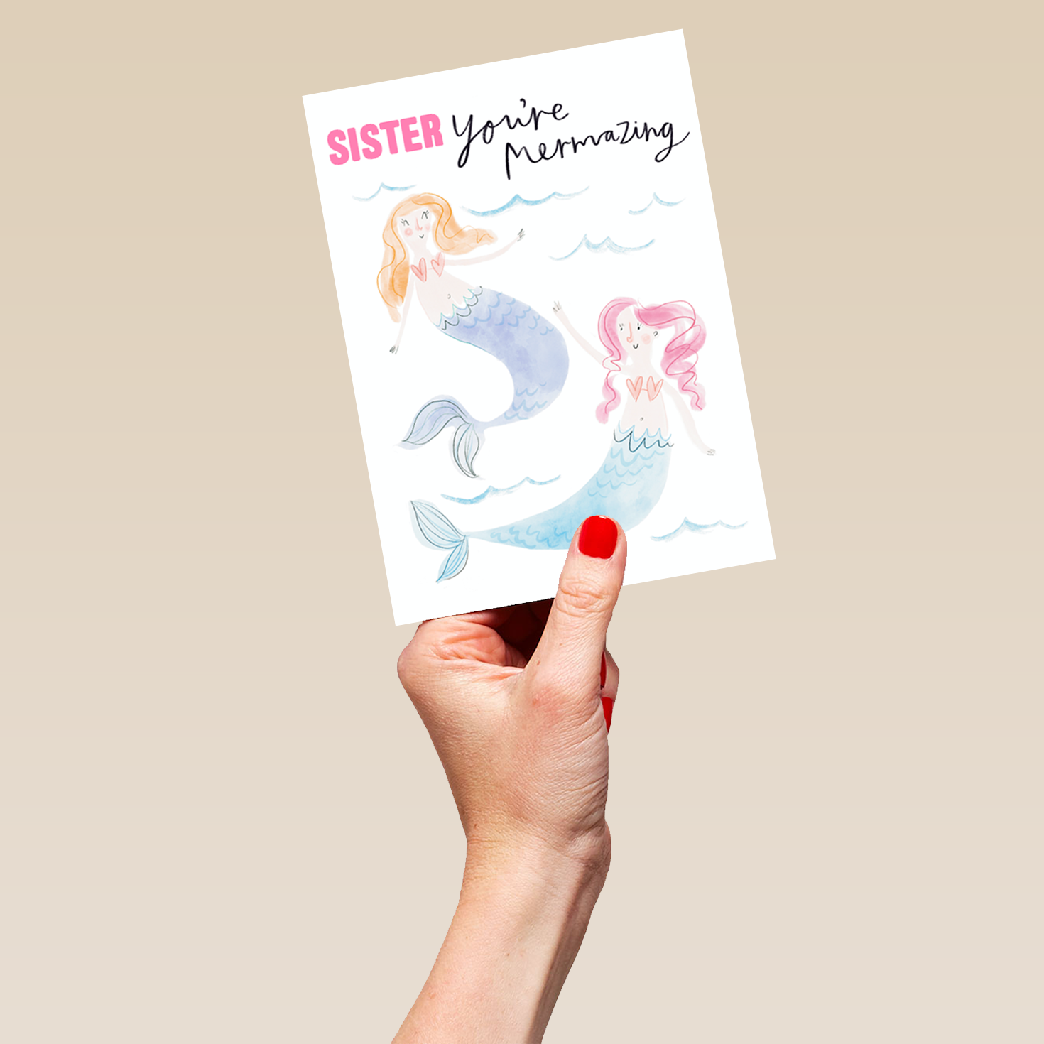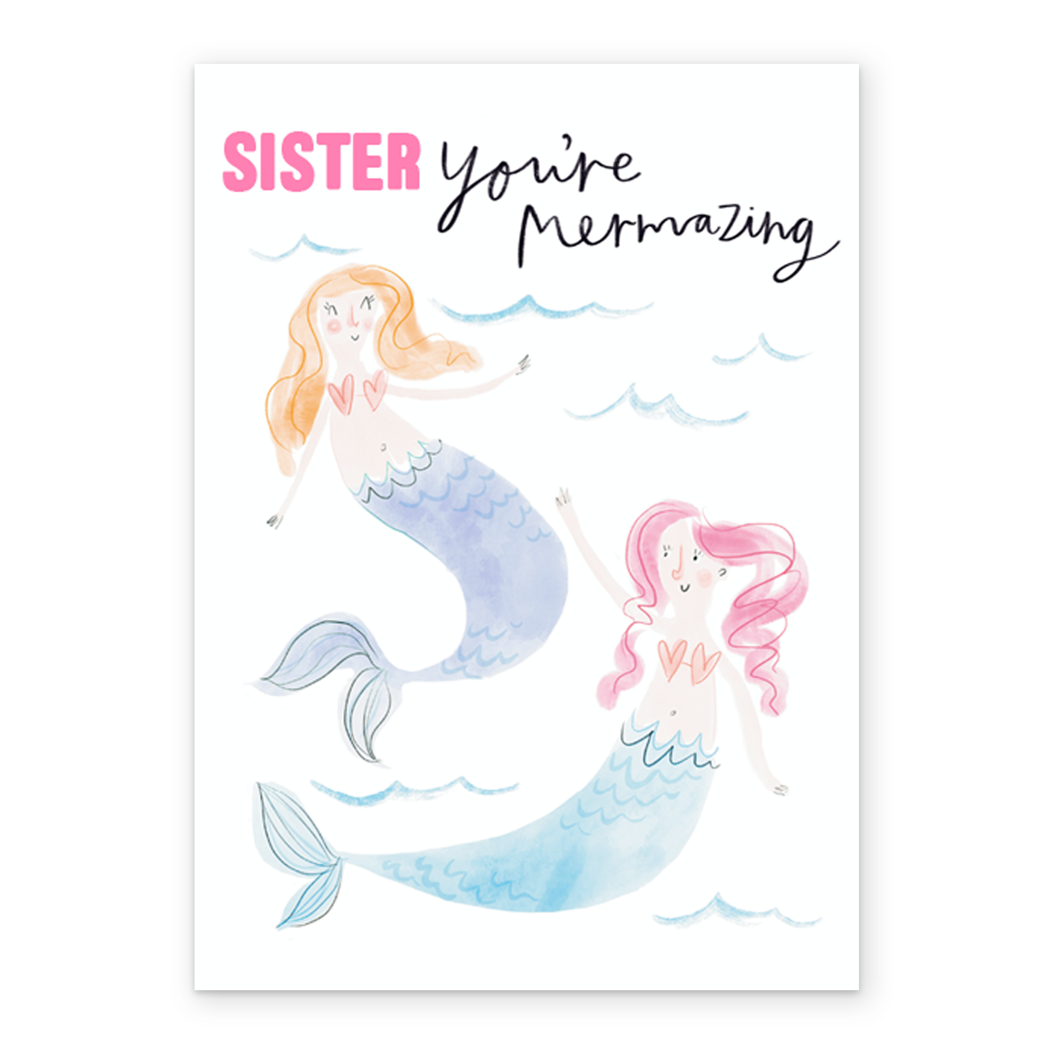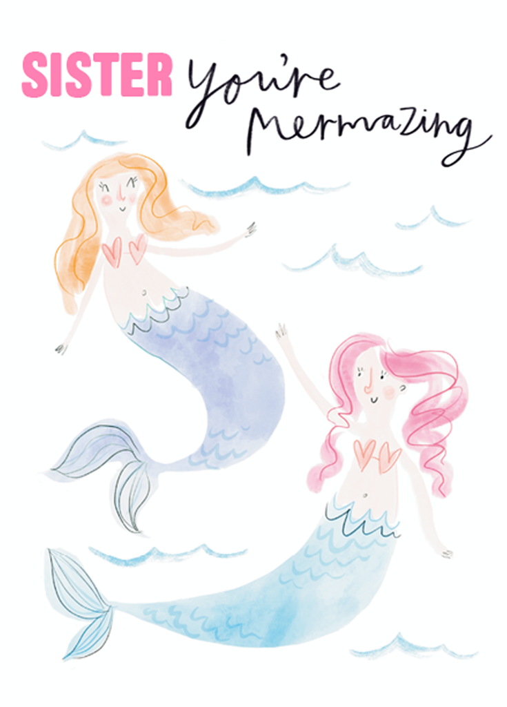 Show them you care with a personalised amazing mermaid sister card from Hallmark. Our birthday cards are printed on premium quality, FSC®-certified card & delivered nationwide. This card is available as standard 12cm by 16.7cm and large 15.5cm by 21.6cm.