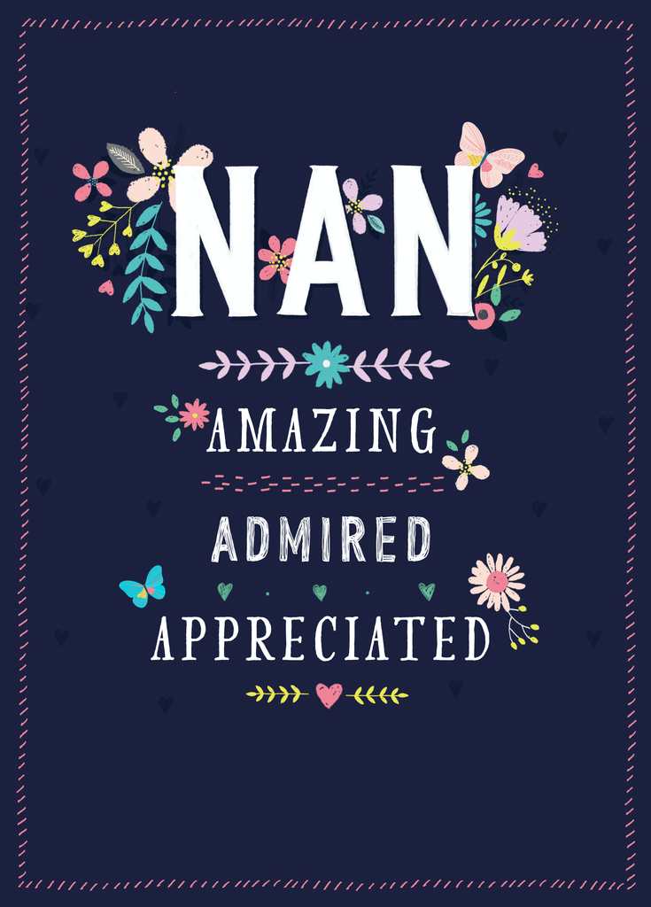 Show them you care with a personalised amazing nan birthday card from Hallmark. Our birthday cards are printed on premium quality, FSC®-certified card & delivered nationwide. This card is available as standard 12cm by 16.7cm and large 15.5cm by 21.6cm.