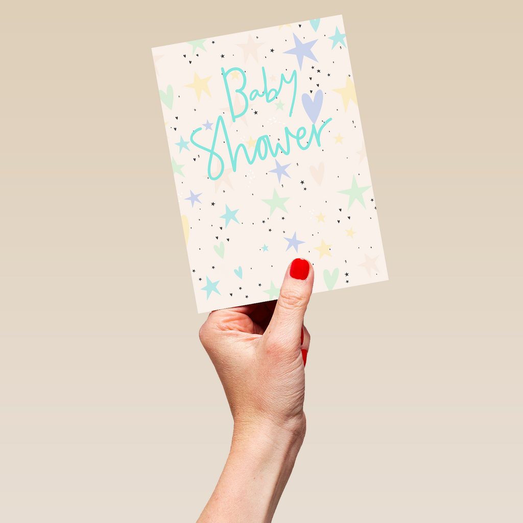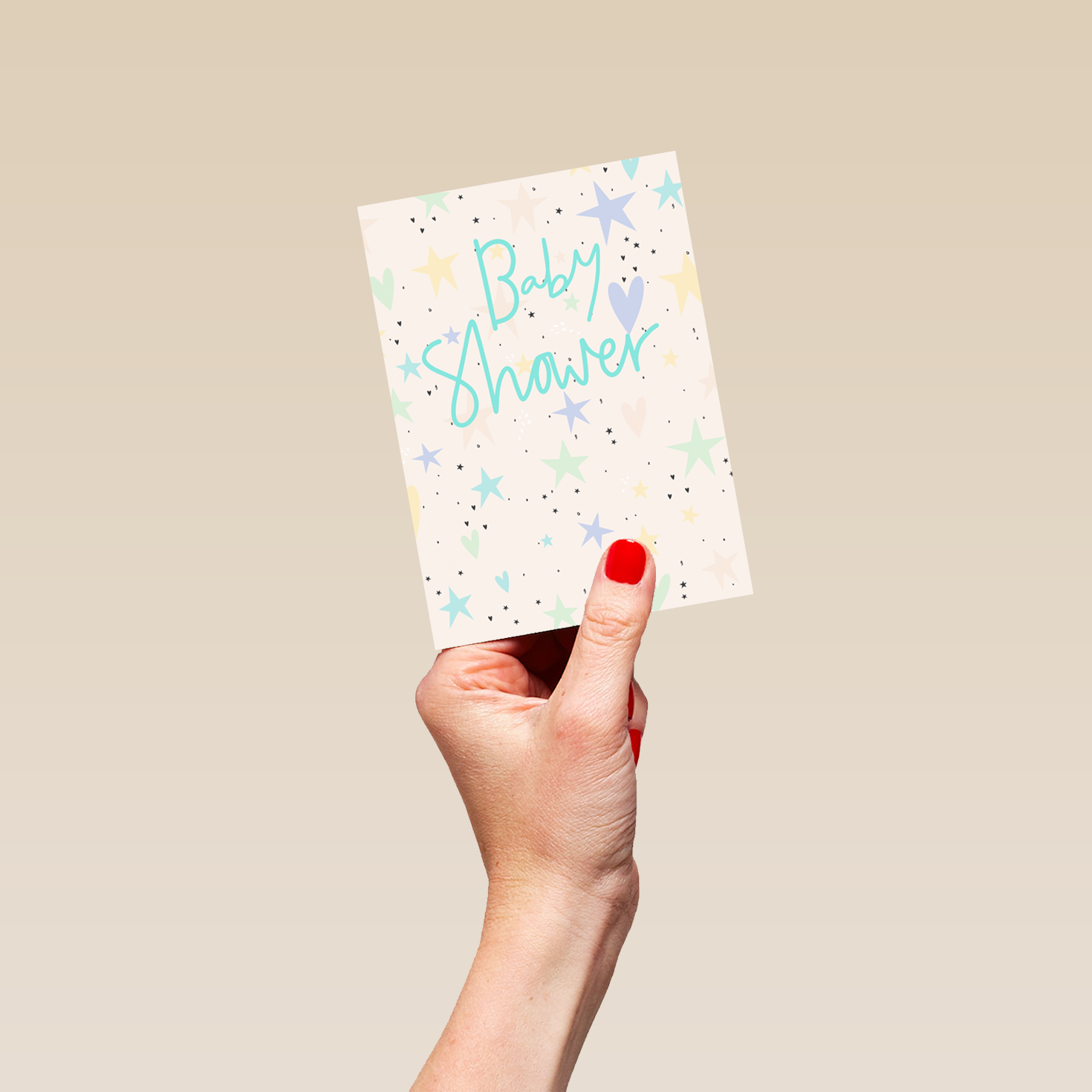 Show them you care with a personalised baby shower celebration stars card from Hallmark. Our greetings cards are printed on premium quality, FSC®-certified card & delivered nationwide. This card is available as standard 12cm by 16.7cm and large 15.5cm by 21.6cm.
