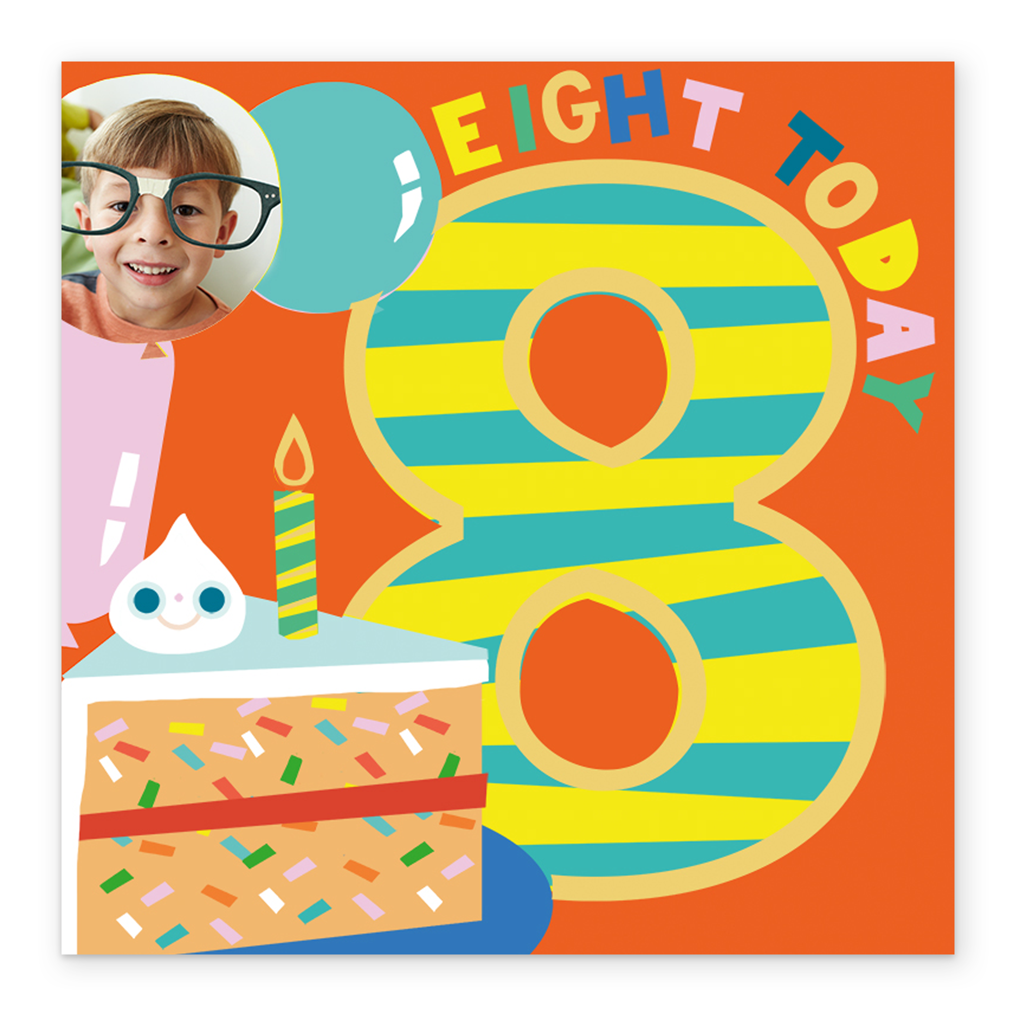 Show them you care with a personalised balloons and cake photo 8th birthday card from Hallmark... View more details