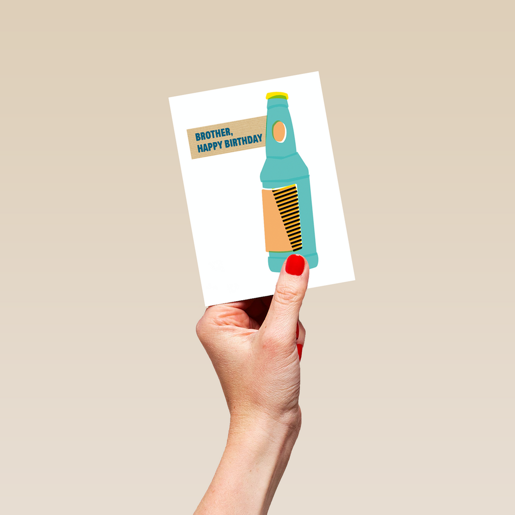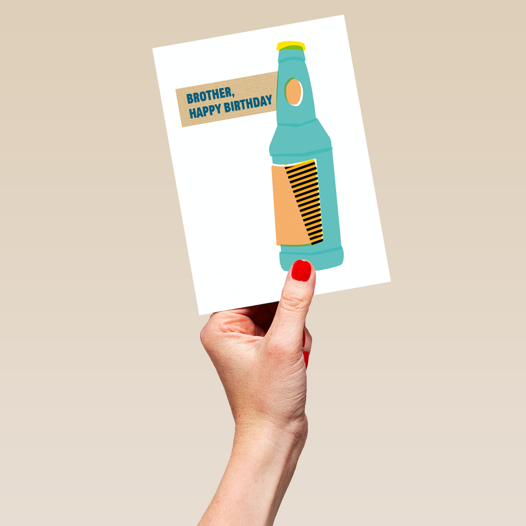 Show them you care with a personalised beer bottle brother card from Hallmark. Our birthday cards are printed on premium quality, FSC®-certified card & delivered nationwide. This card is available as standard 12cm by 16.7cm and large 15.5cm by 21.6cm.