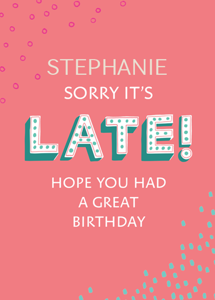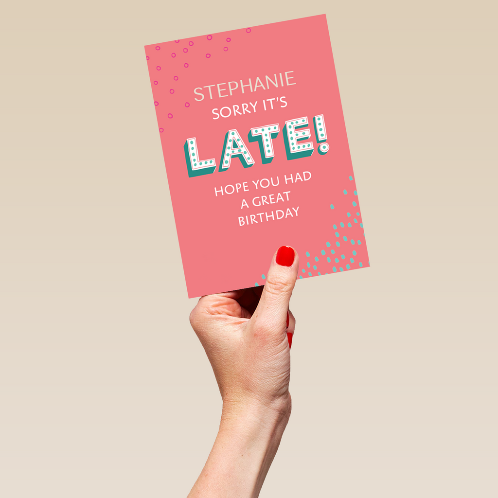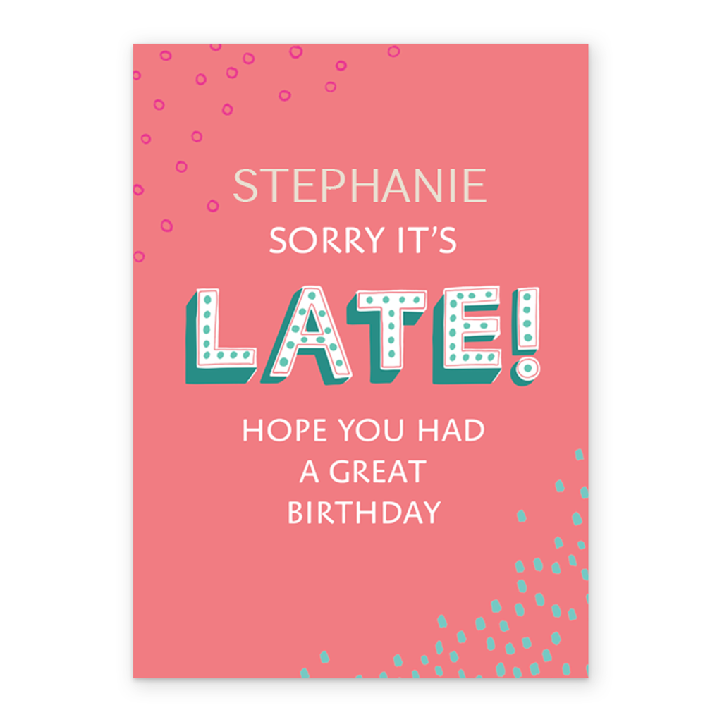 Personalised Belated Birthday Sorry Card