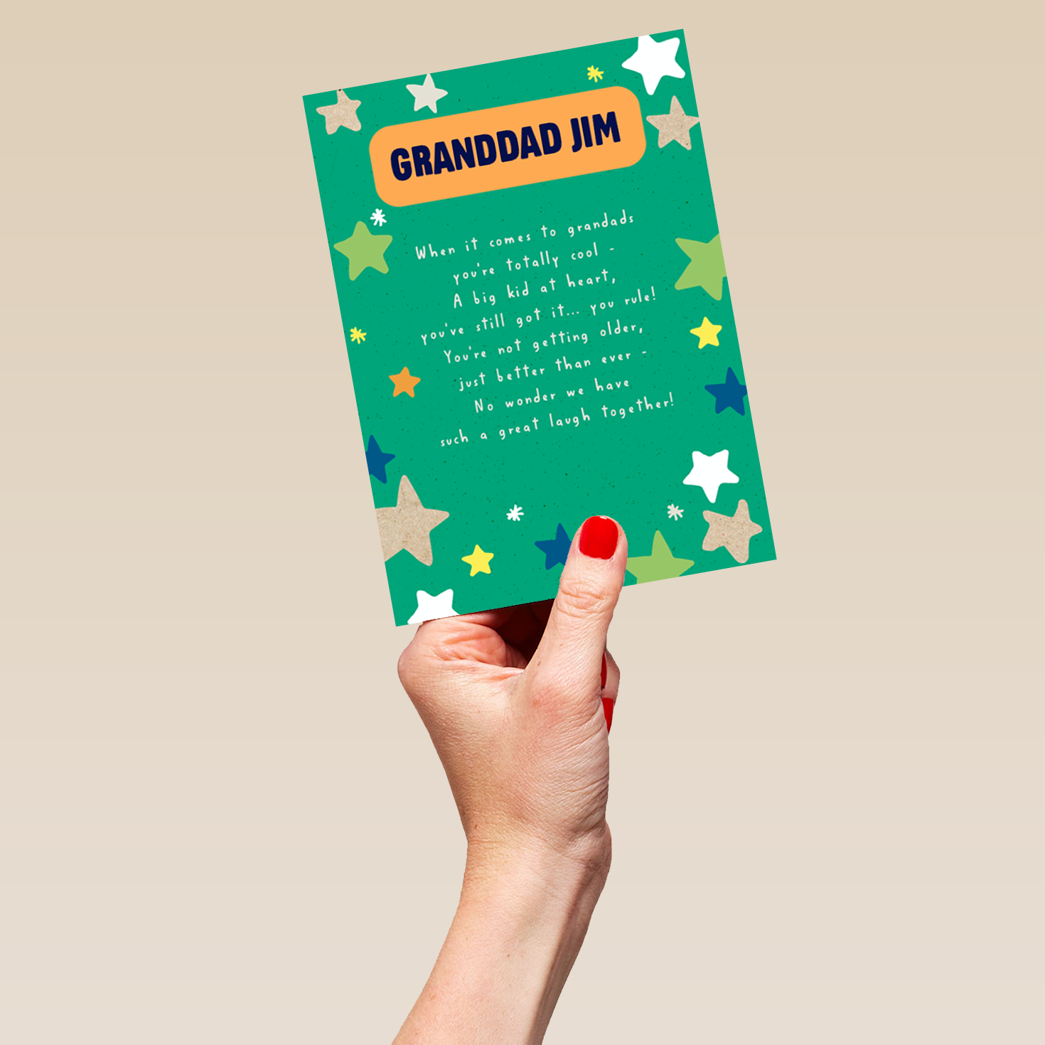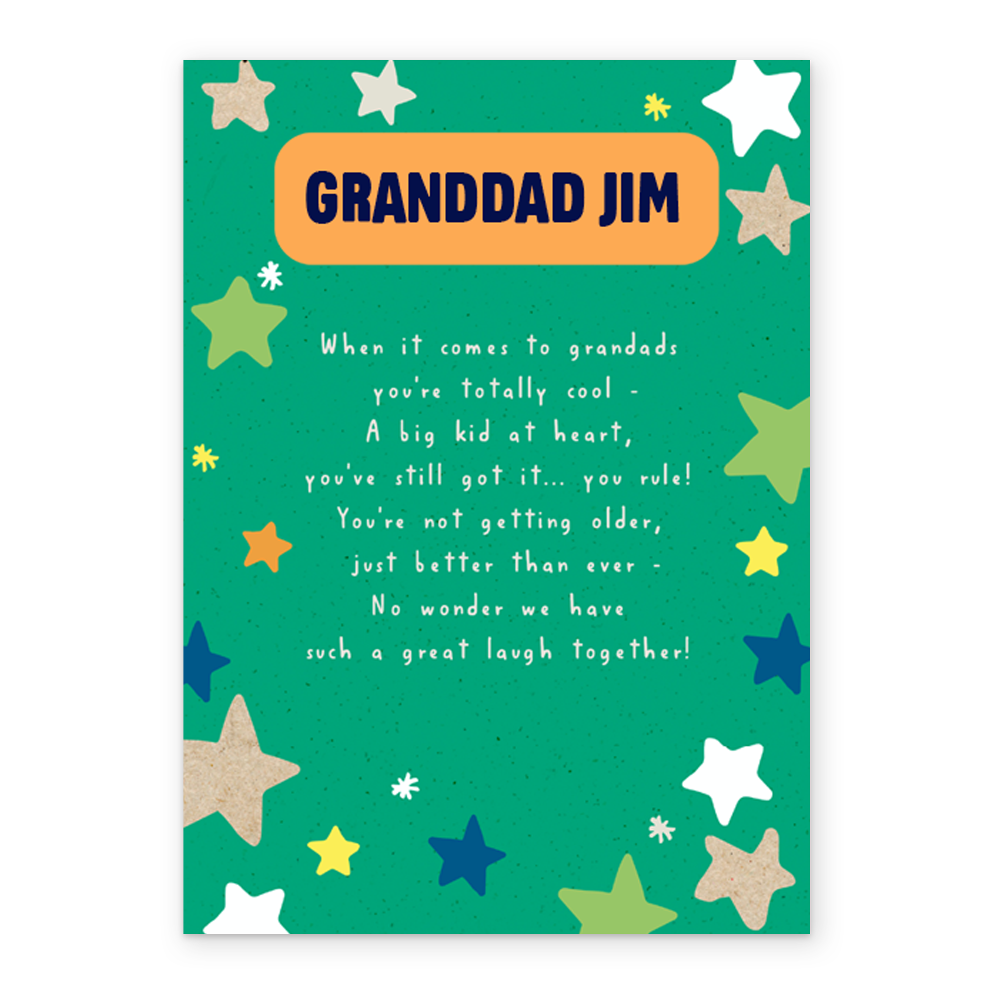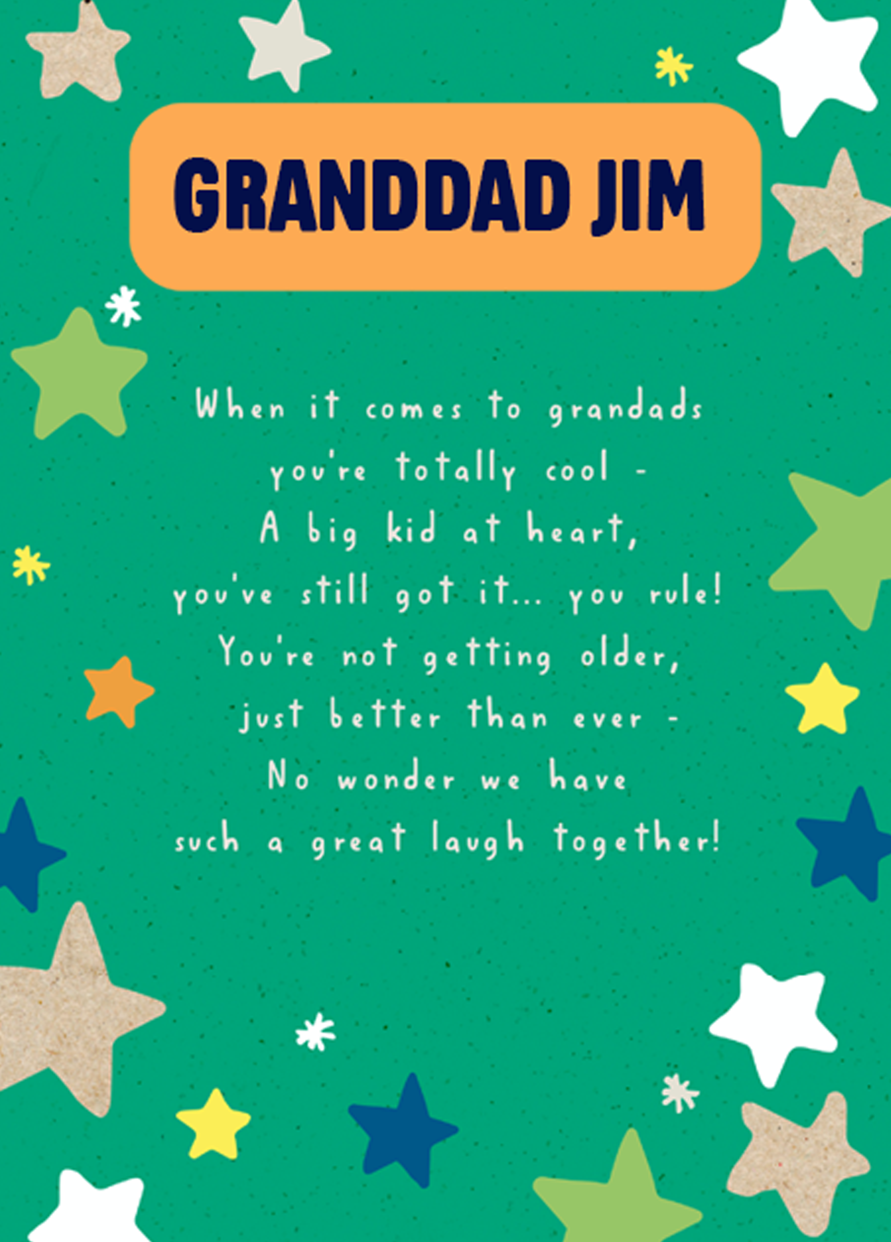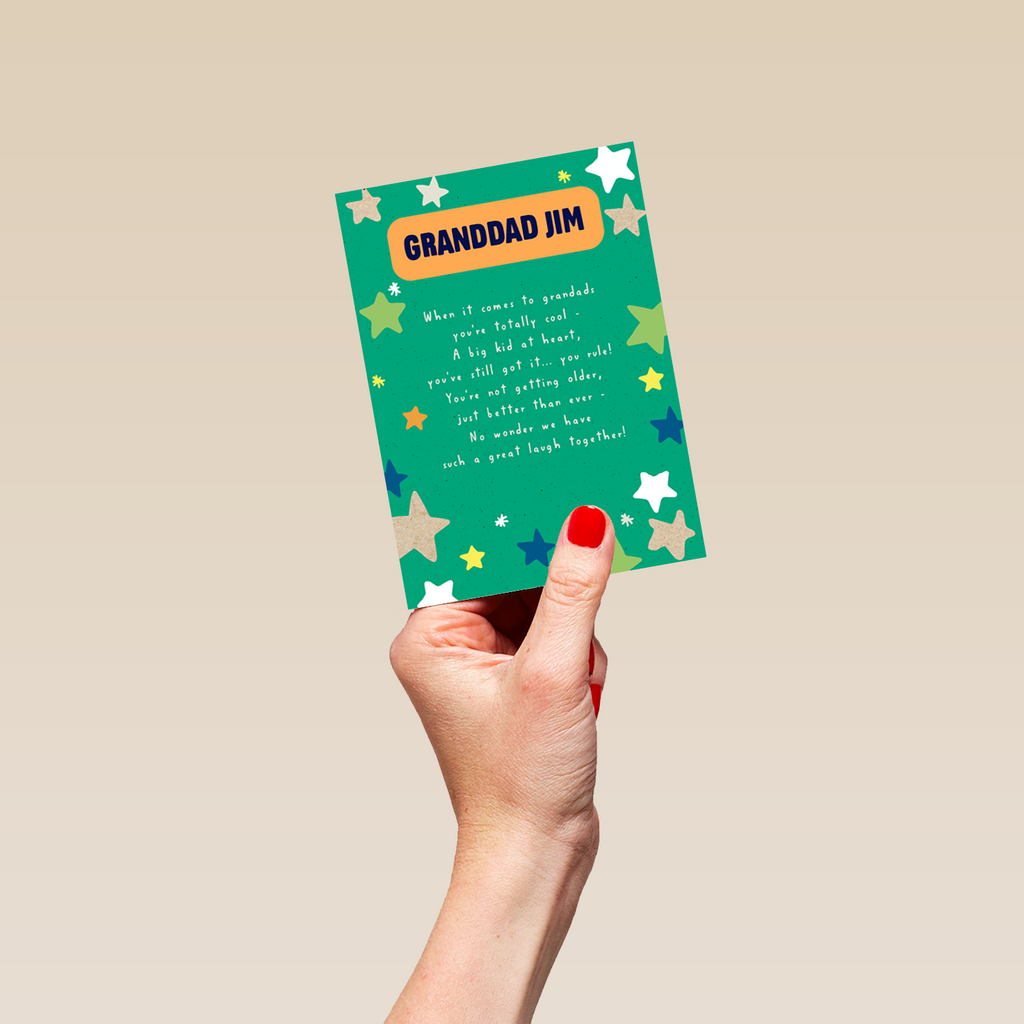 Show them you care with a personalised best ever grandad stars card from Hallmark. Our birthday cards are printed on premium quality, FSC®-certified card & delivered nationwide. This card is available as standard 12cm by 16.7cm and large 15.5cm by 21.6cm.