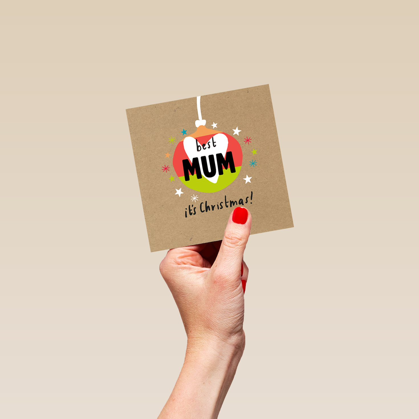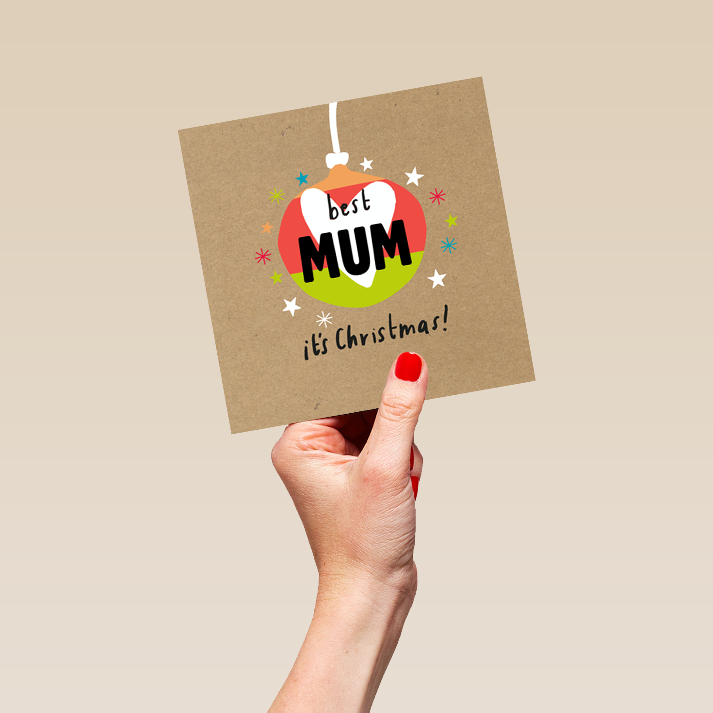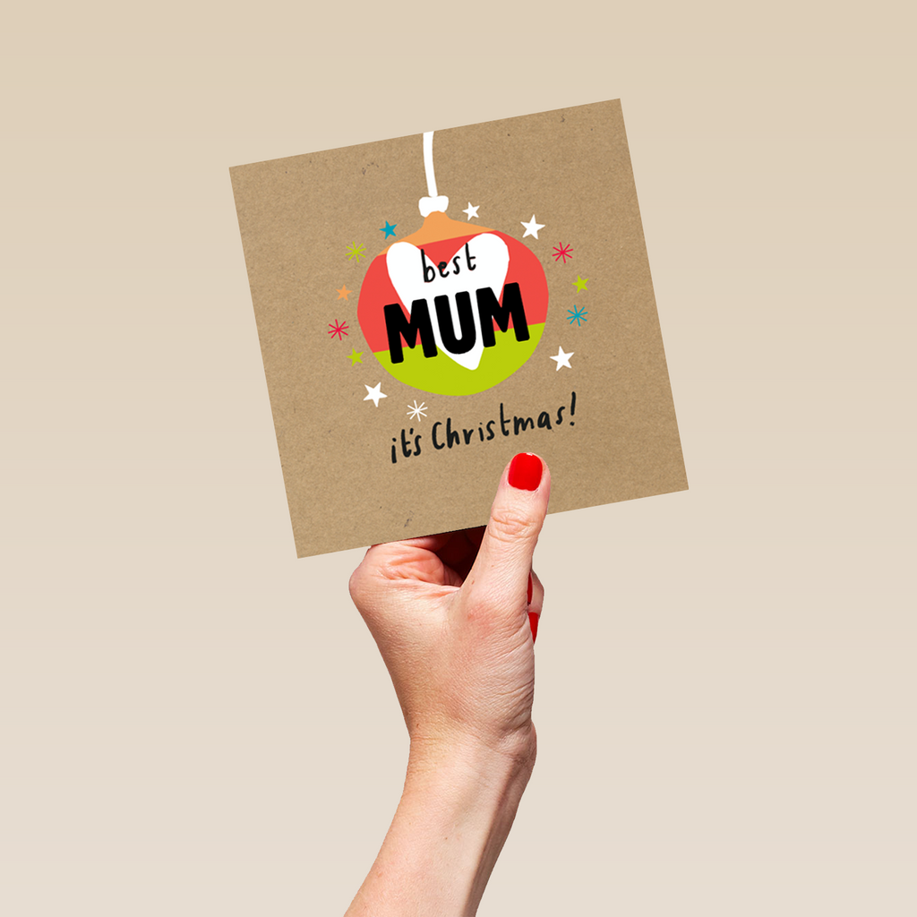 Show them you care with a personalised best mum bauble Christmas card from Hallmark. Our greetings cards are printed on premium quality, FSC®-certified card & delivered nationwide. This card is available as standard 12cm by 12cm and large 15cm by 15cm.