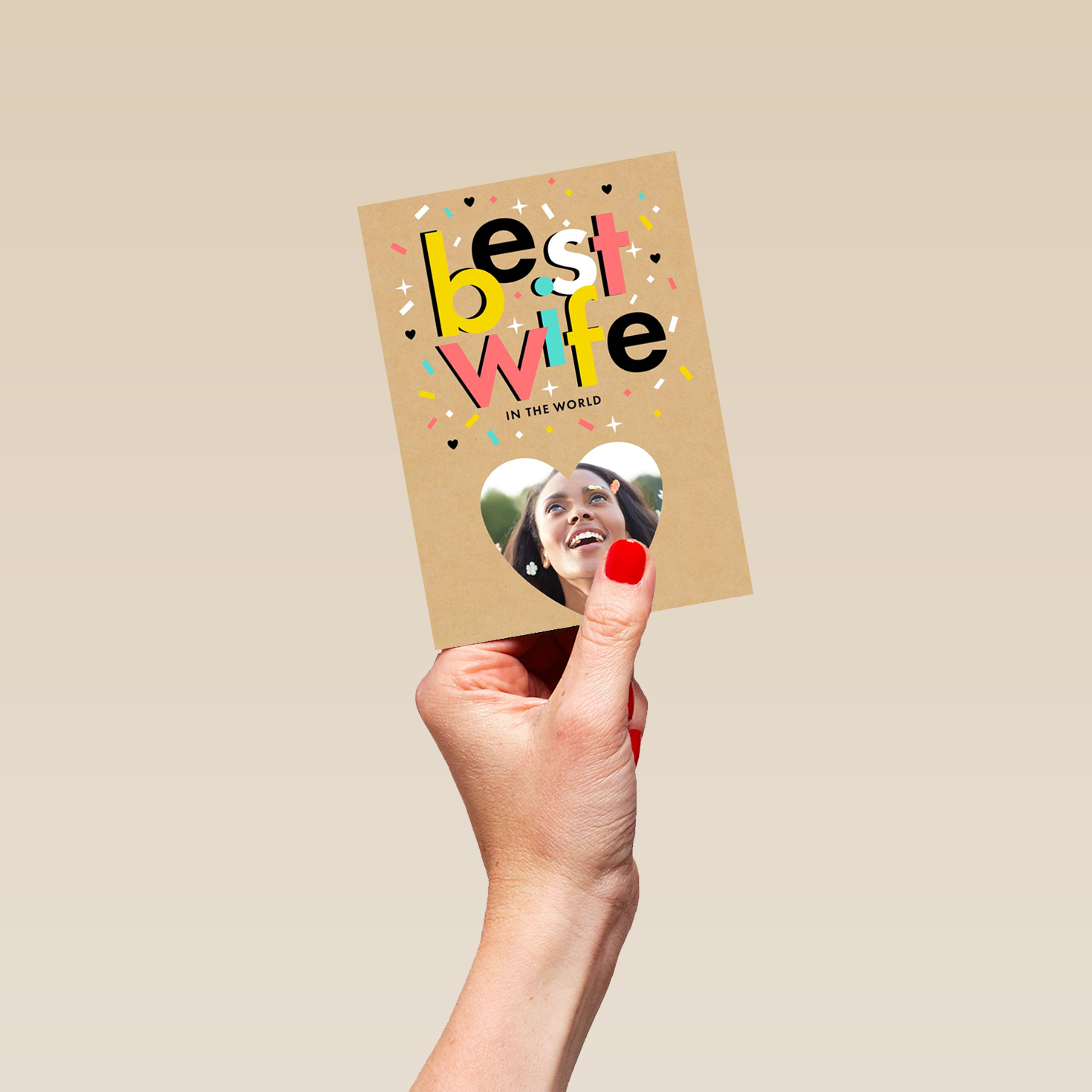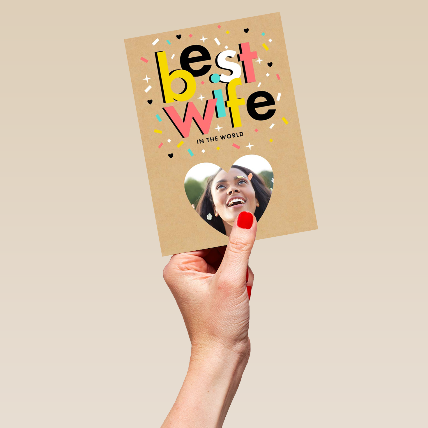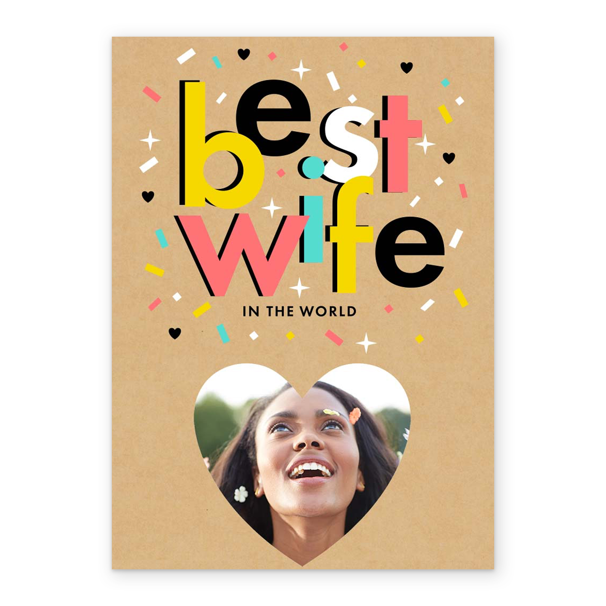 Show them you care with a personalised best wife in the world heart card from Hallmark. Our birthday cards are printed on premium quality, FSC®-certified card & delivered nationwide. This card is available as standard 12cm by 16.7cm and large 15.5cm by 21.6cm.
