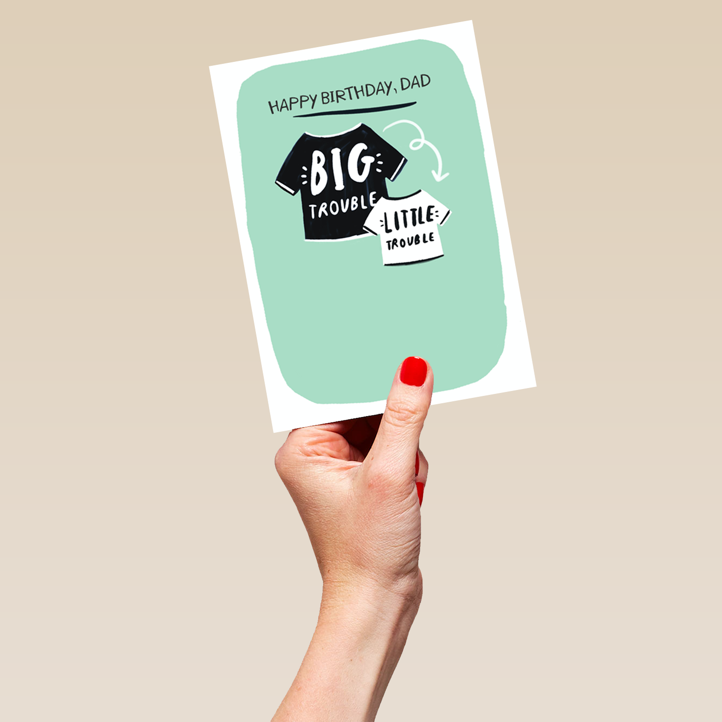 Show them you care with a personalised big small shirt dad birthday card from Hallmark. Our birthday cards are printed on premium quality, FSC®-certified card & delivered nationwide. This card is available as standard 12cm by 16.7cm and large 15.5cm by 21.6cm.