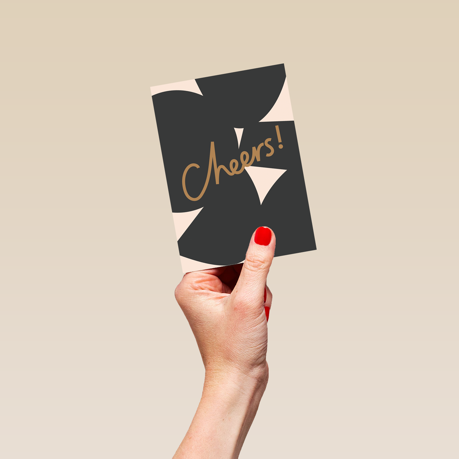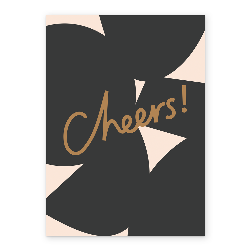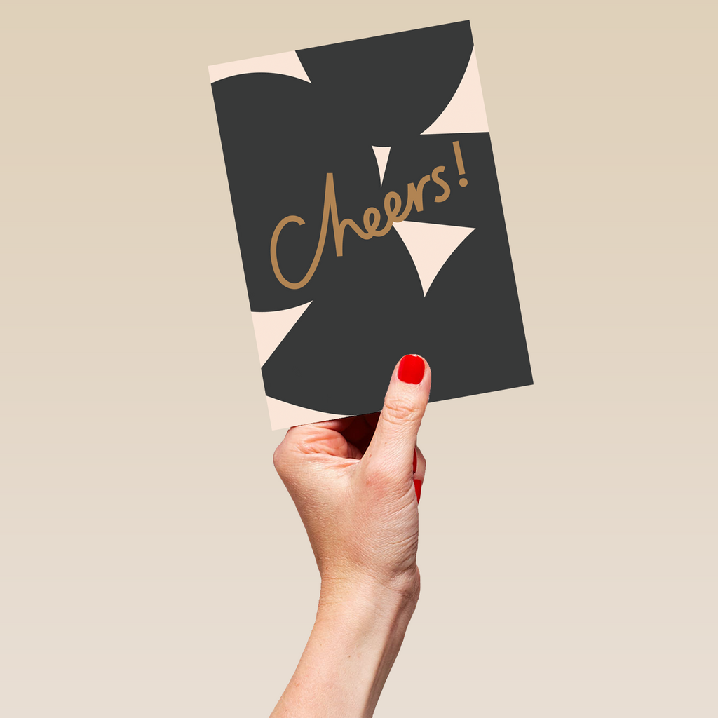 Printed on premium-quality board, this card features dark grey shapes, with the message 'Cheers!', and comes complete with a co-ordinating white envelope.