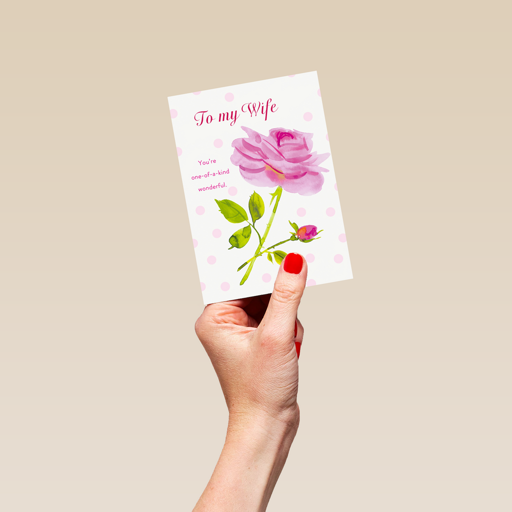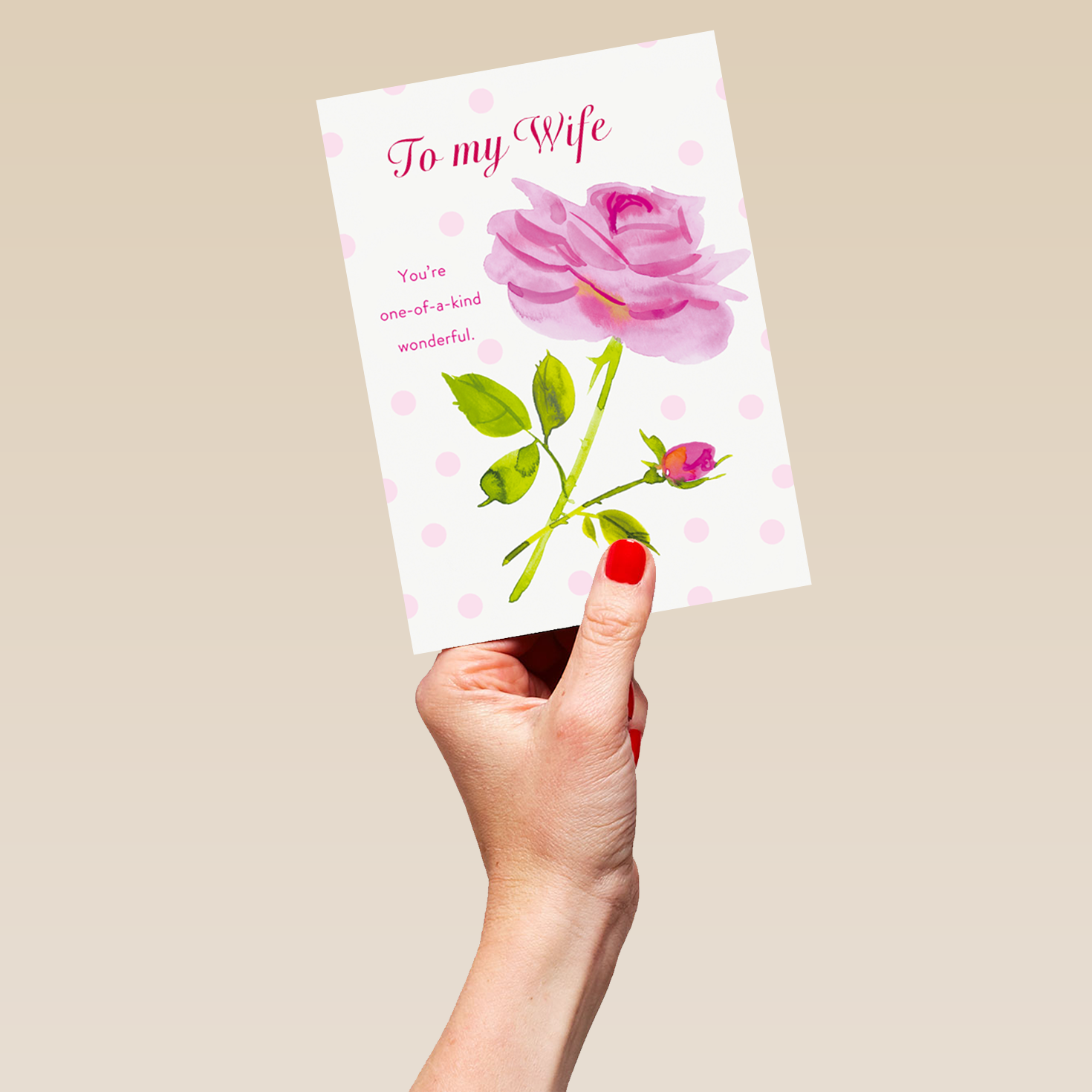 Show them you care with a personalised blue flower card for wife from Hallmark. Our birthday cards are printed on premium quality, FSC®-certified card & delivered nationwide. This card is available as standard 12cm by 16.7cm and large 15.5cm by 21.6cm.