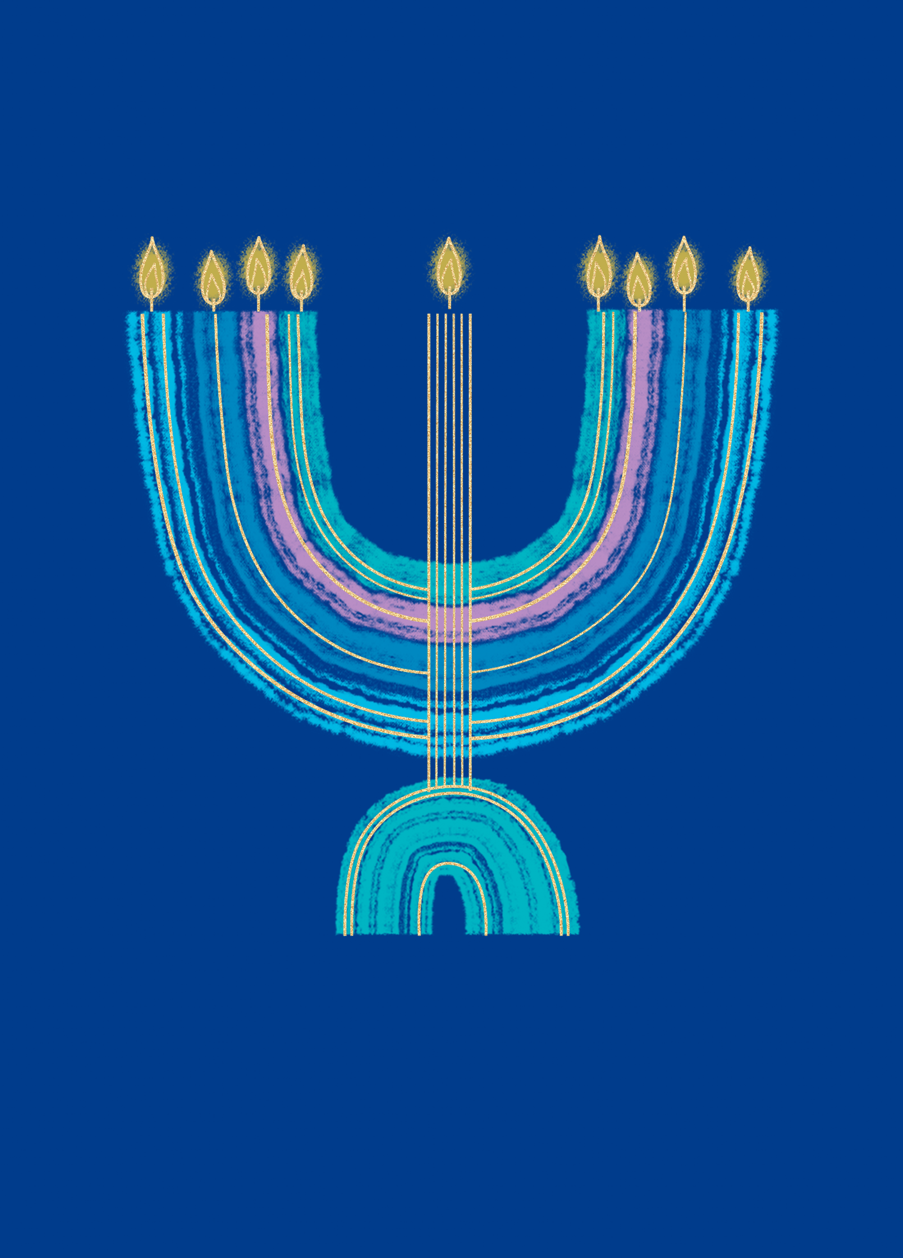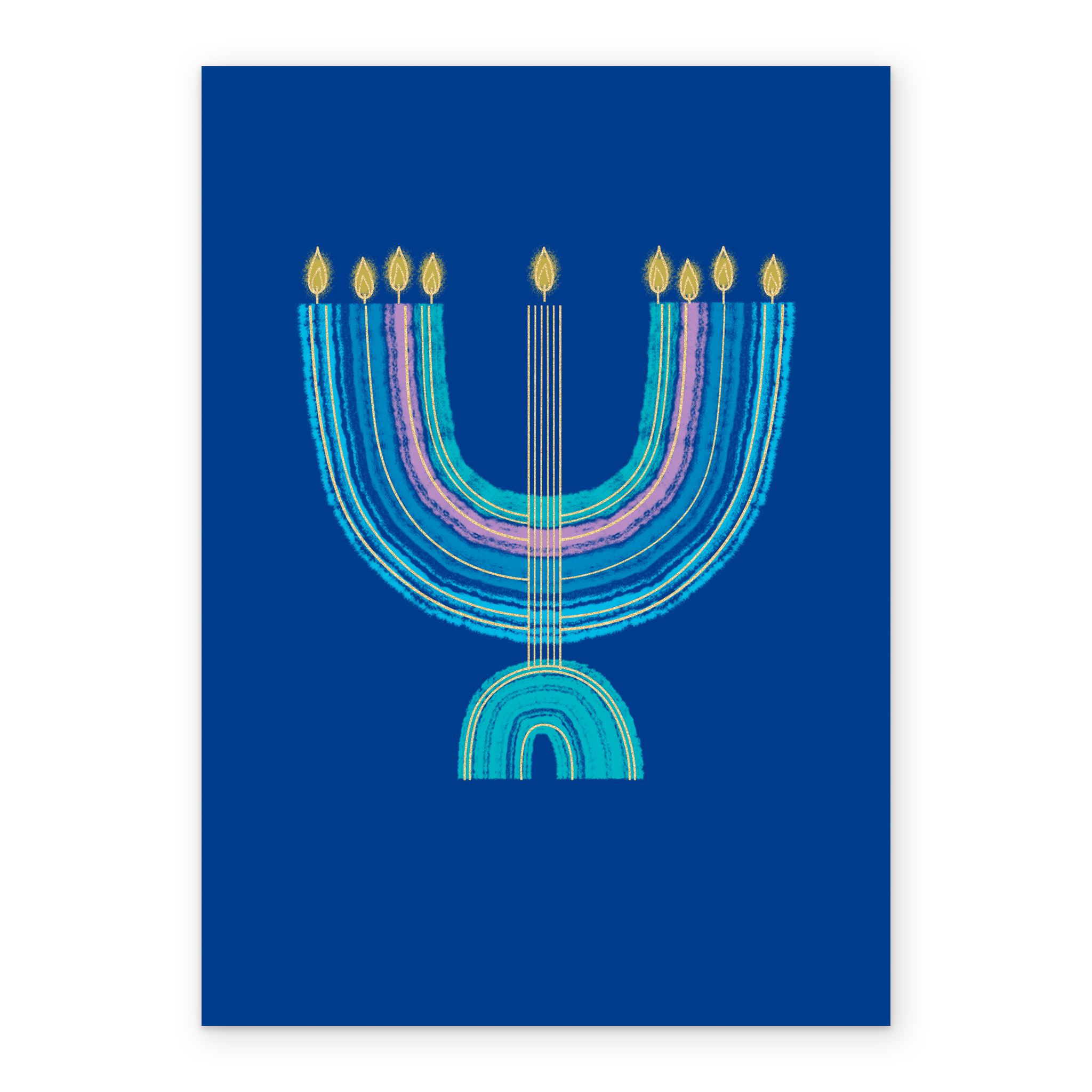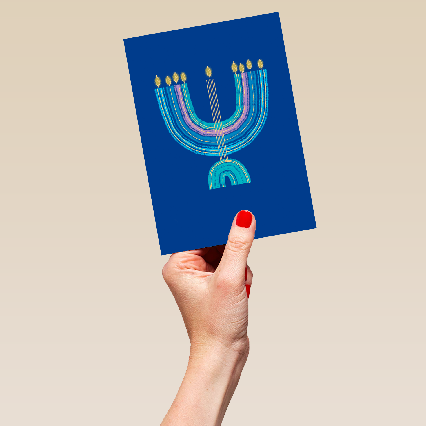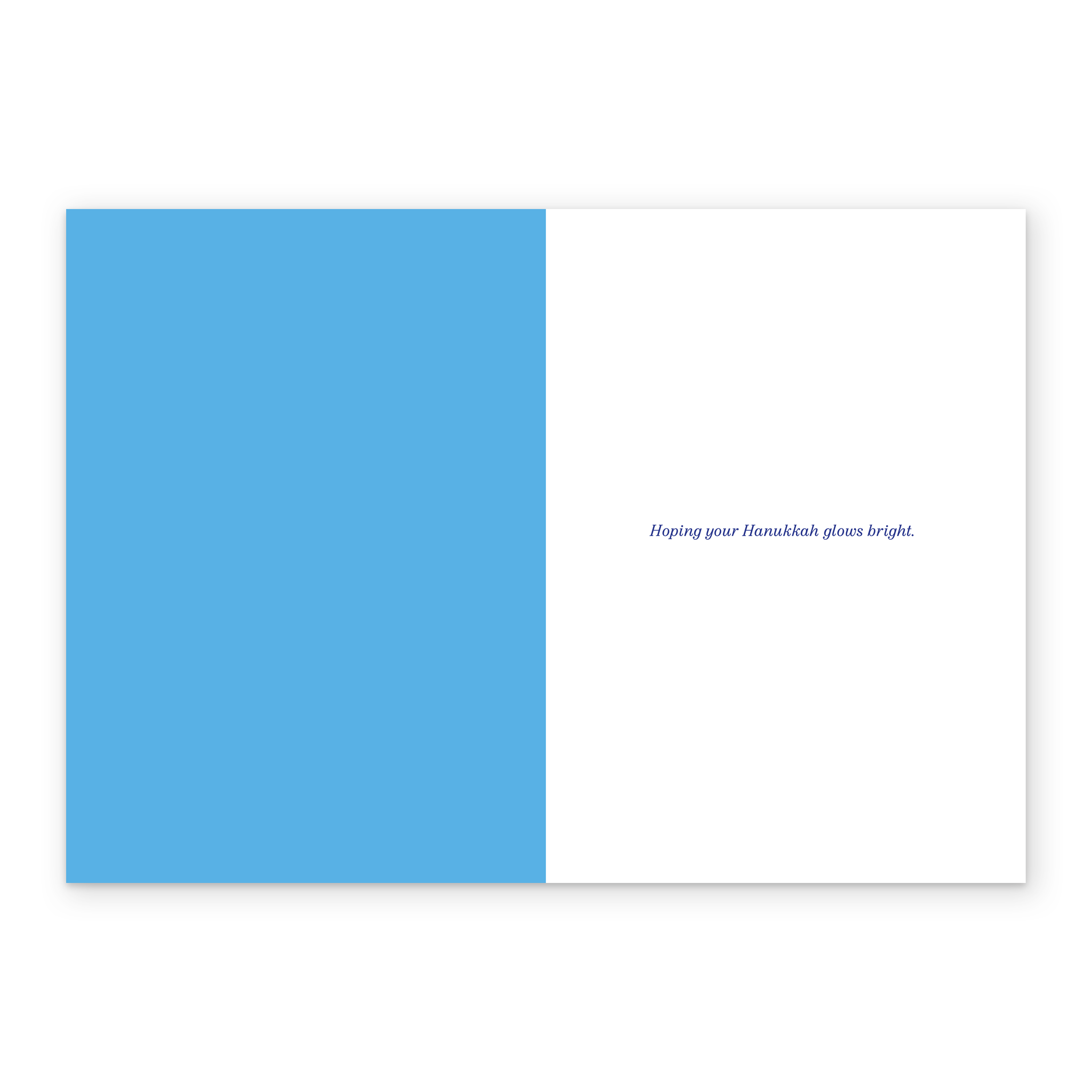 Printed on premium-quality board, this card features a blue illustration of a Hanukkah menorah, and comes complete with a co-ordinating white envelope.