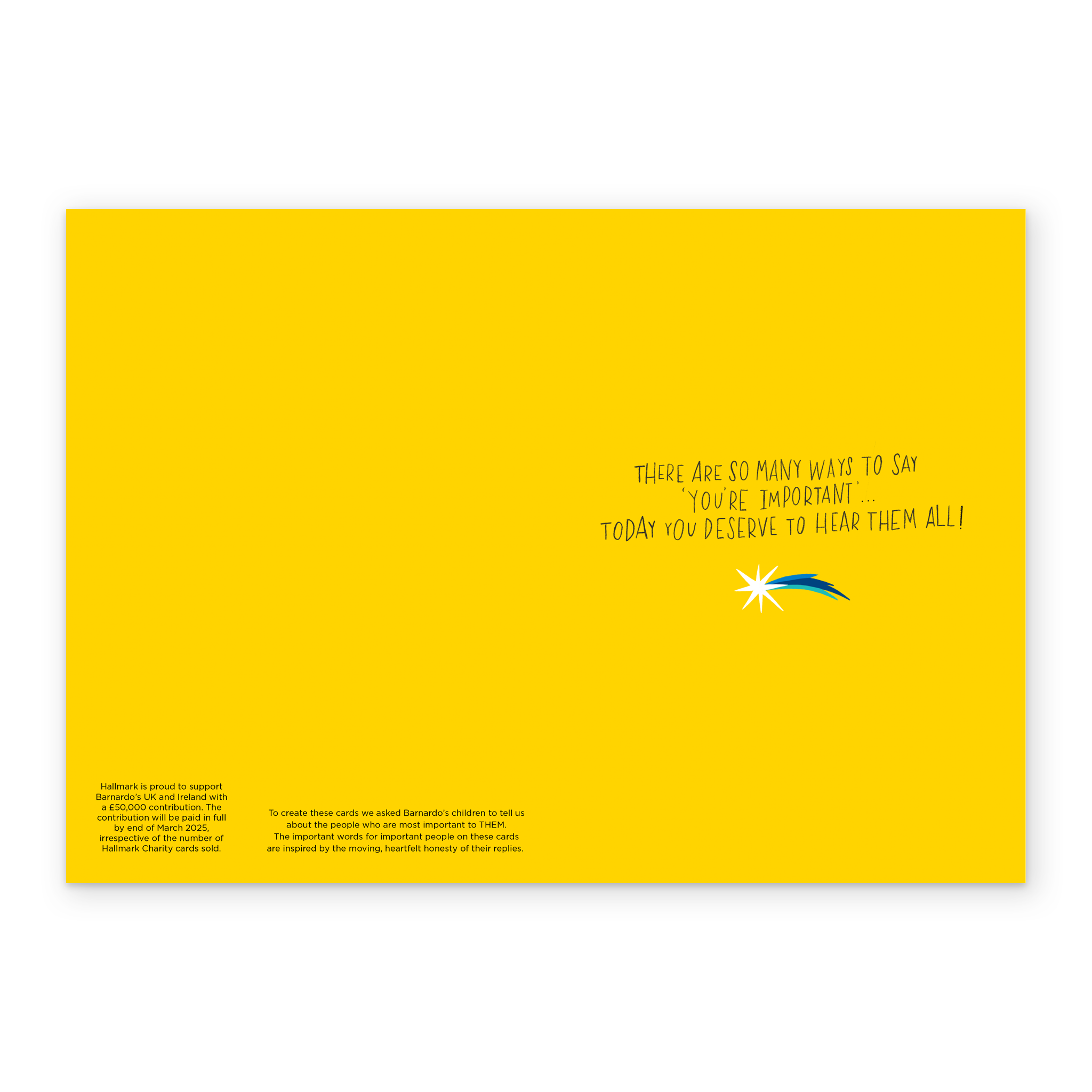 Hallmark is proud to support Barnardo's UK and Ireland with a £50,000 contribution. The contribution will be paid in full by end of March 2025, irrespective of the number of Hallmark Charity cards sold.
