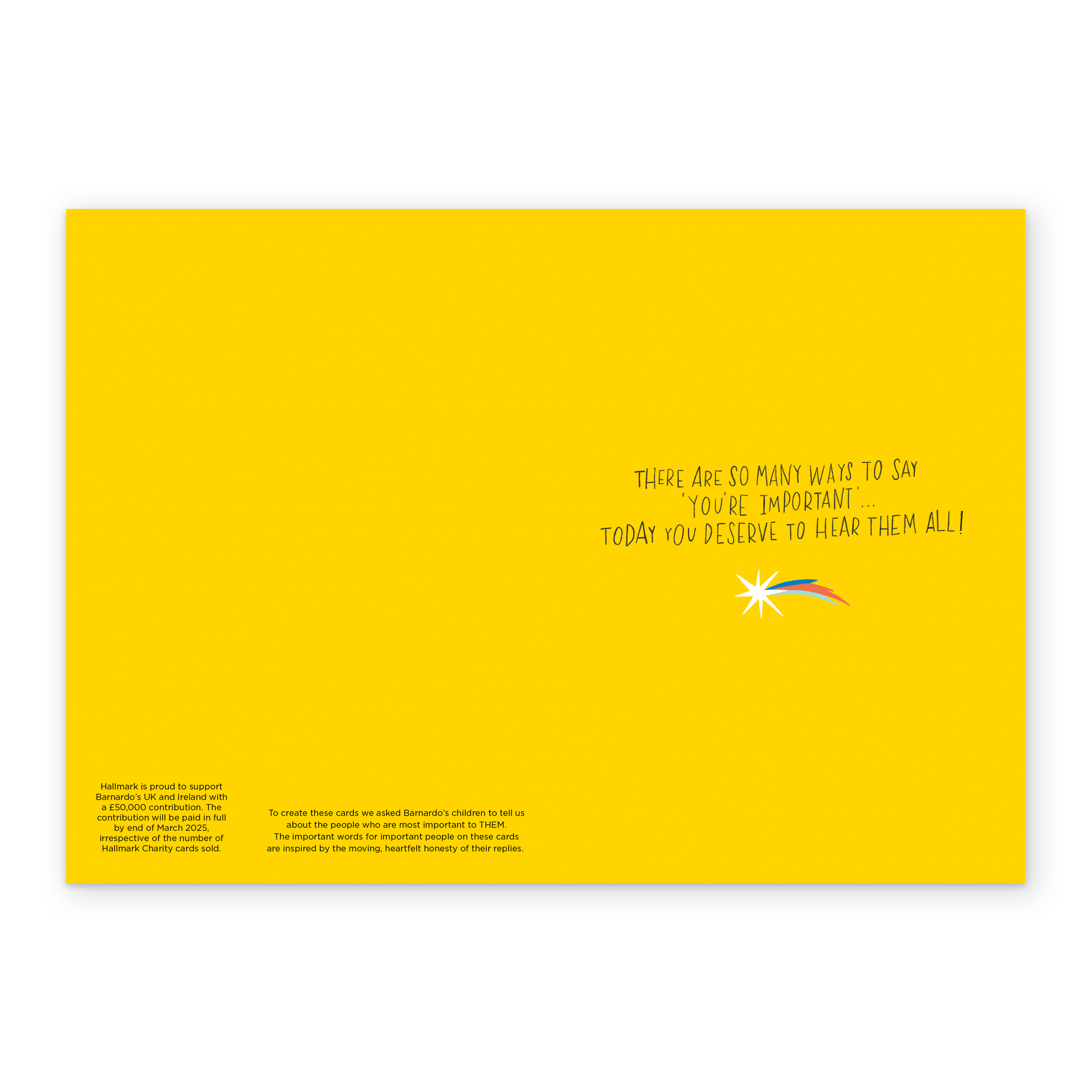 To create these cards we asked Barnardo's children to tell us about the people who are most important to them. The important words for important people on these cards are inspired by the moving, heartfelt honesty of their replies.