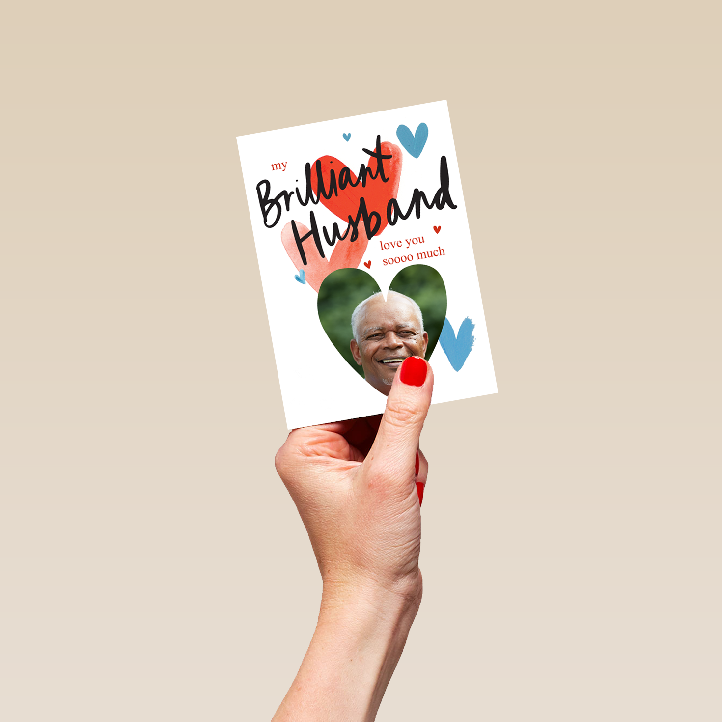 Show them you care this Valentine's Day with a personalised Brilliant Husband Love Hearts card.