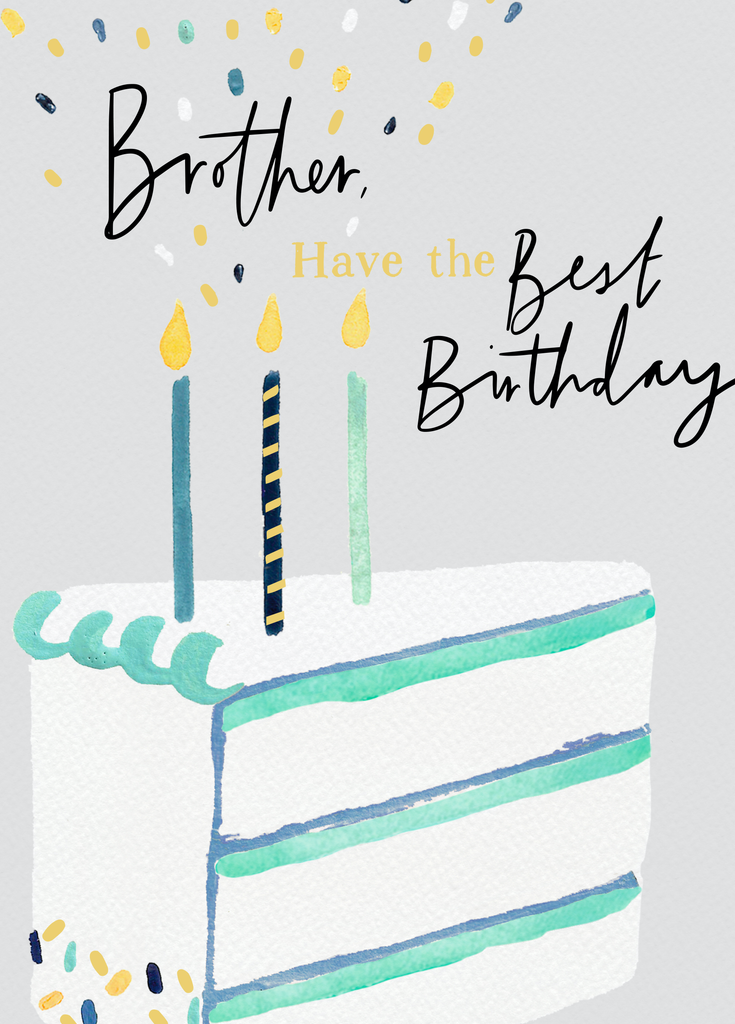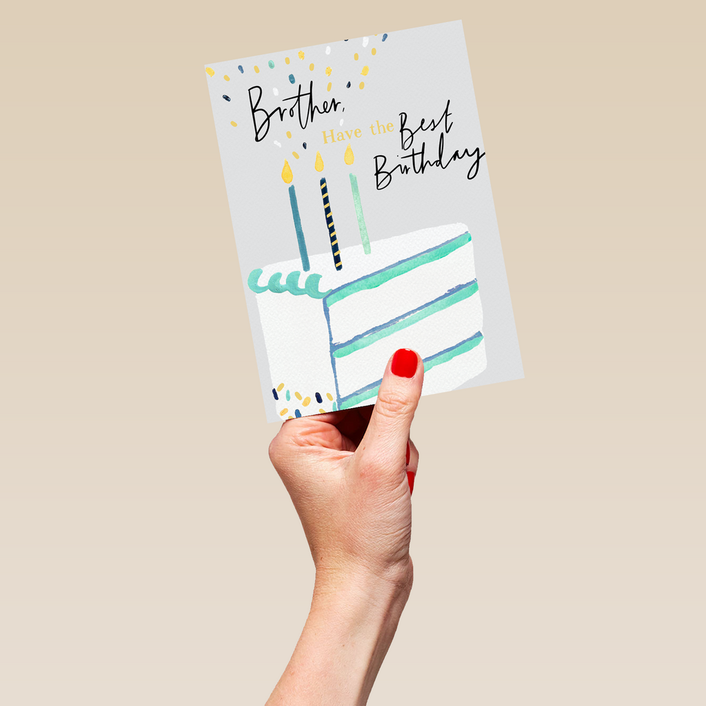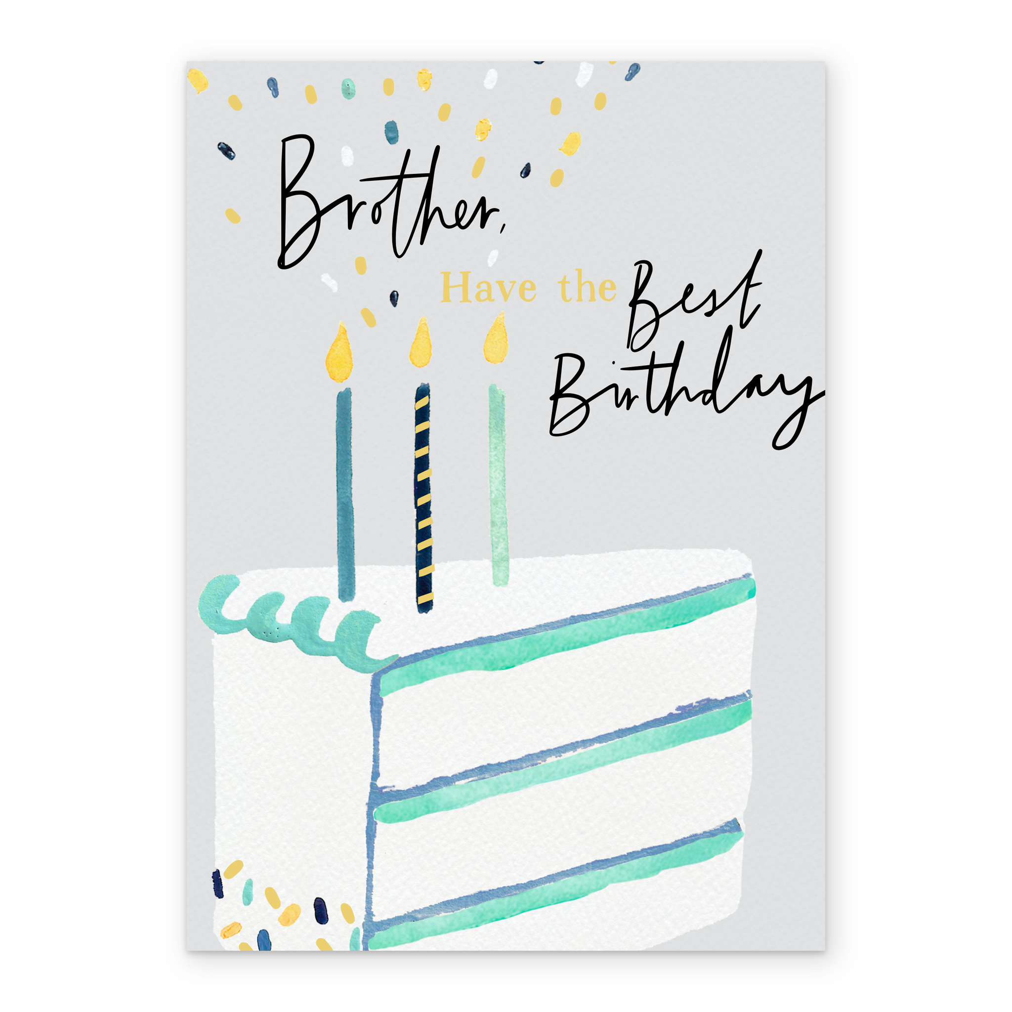 Show them you care with a personalised brother's birthday cake card from Hallmark. Our birthday cards are printed on premium quality, FSC®-certified card & delivered nationwide. This card is available as standard 12cm by 16.7cm and large 15.5cm by 21.6cm.