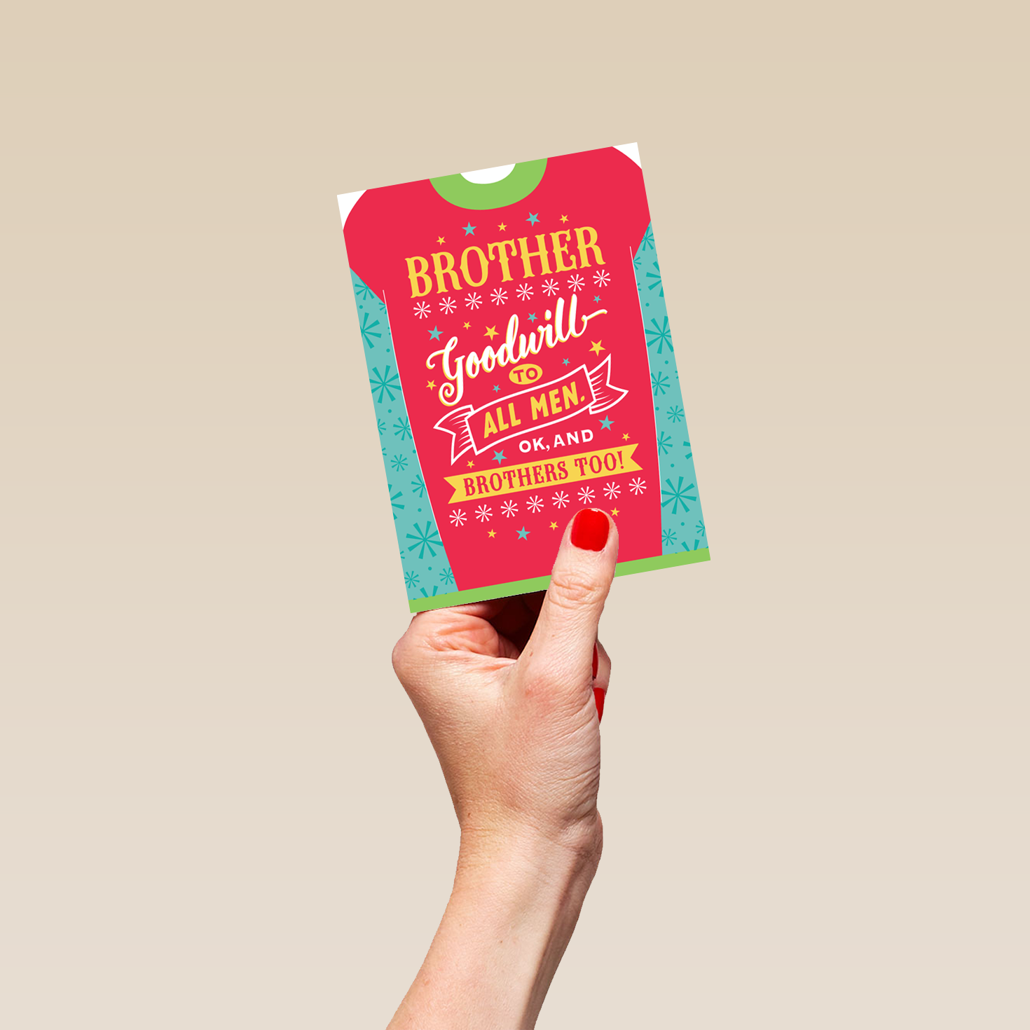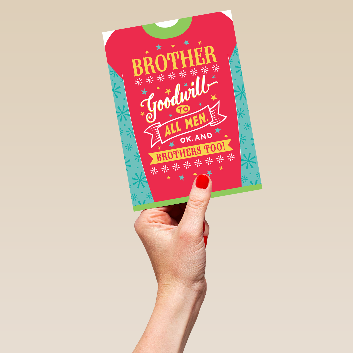 Show them you care with a personalised brother festive sweater Christmas card from Hallmark. O... View more details