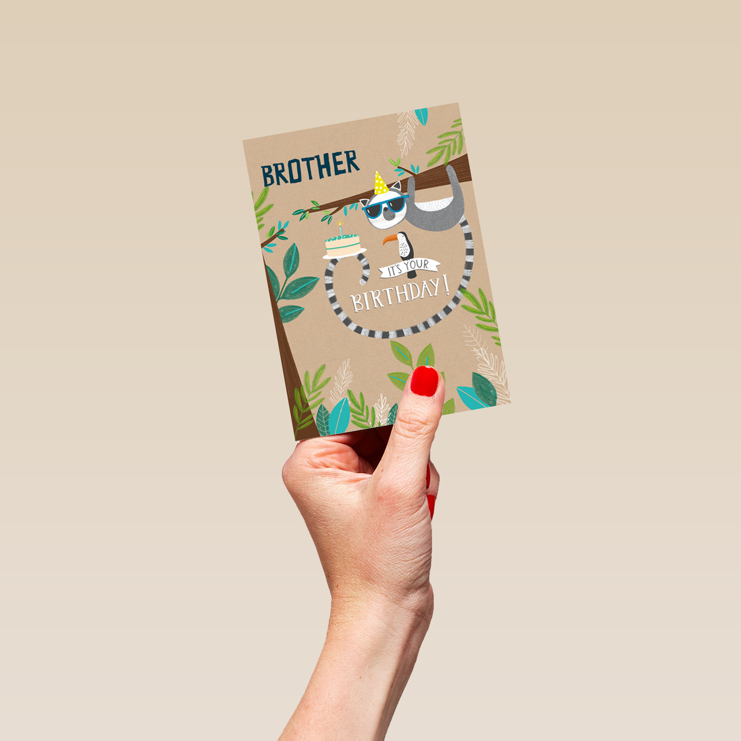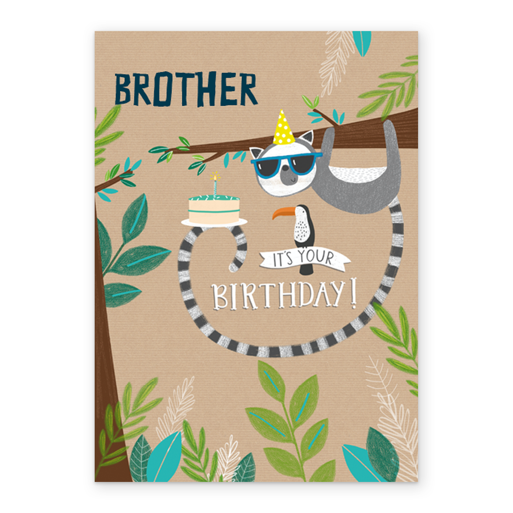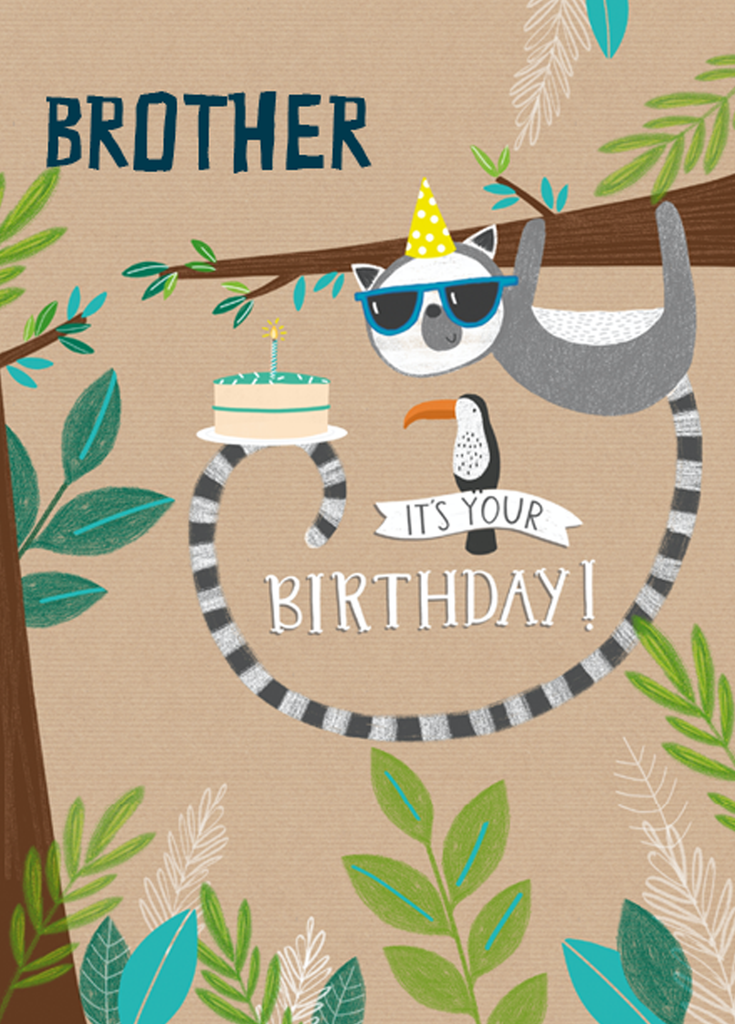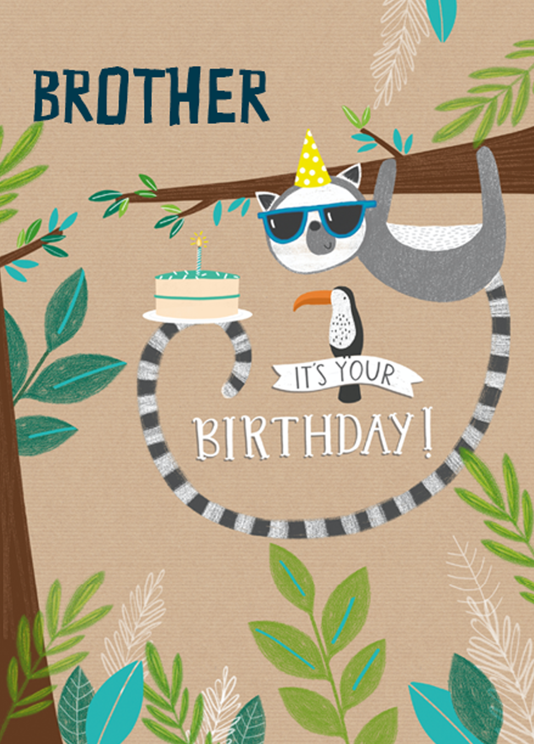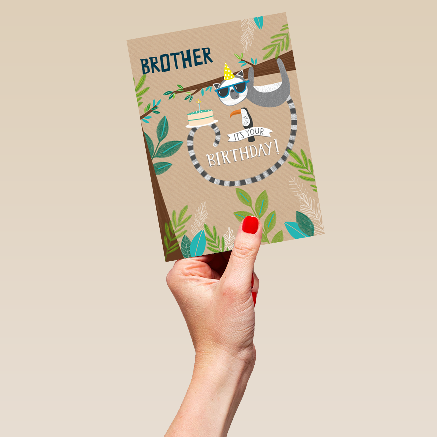 Show them you care with a personalised brother jungle animal card from Hallmark. Our birthday cards are printed on premium quality, FSC®-certified card & delivered nationwide. This card is available as standard 12cm by 16.7cm and large 15.5cm by 21.6cm.