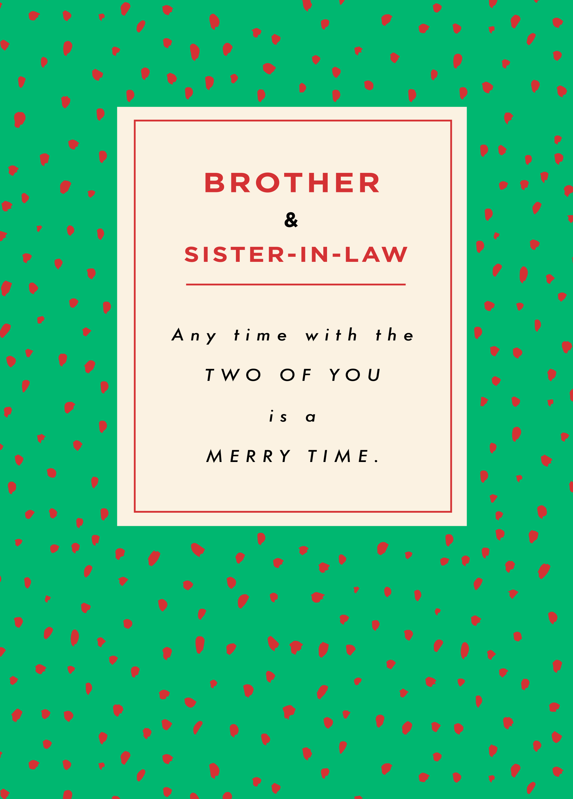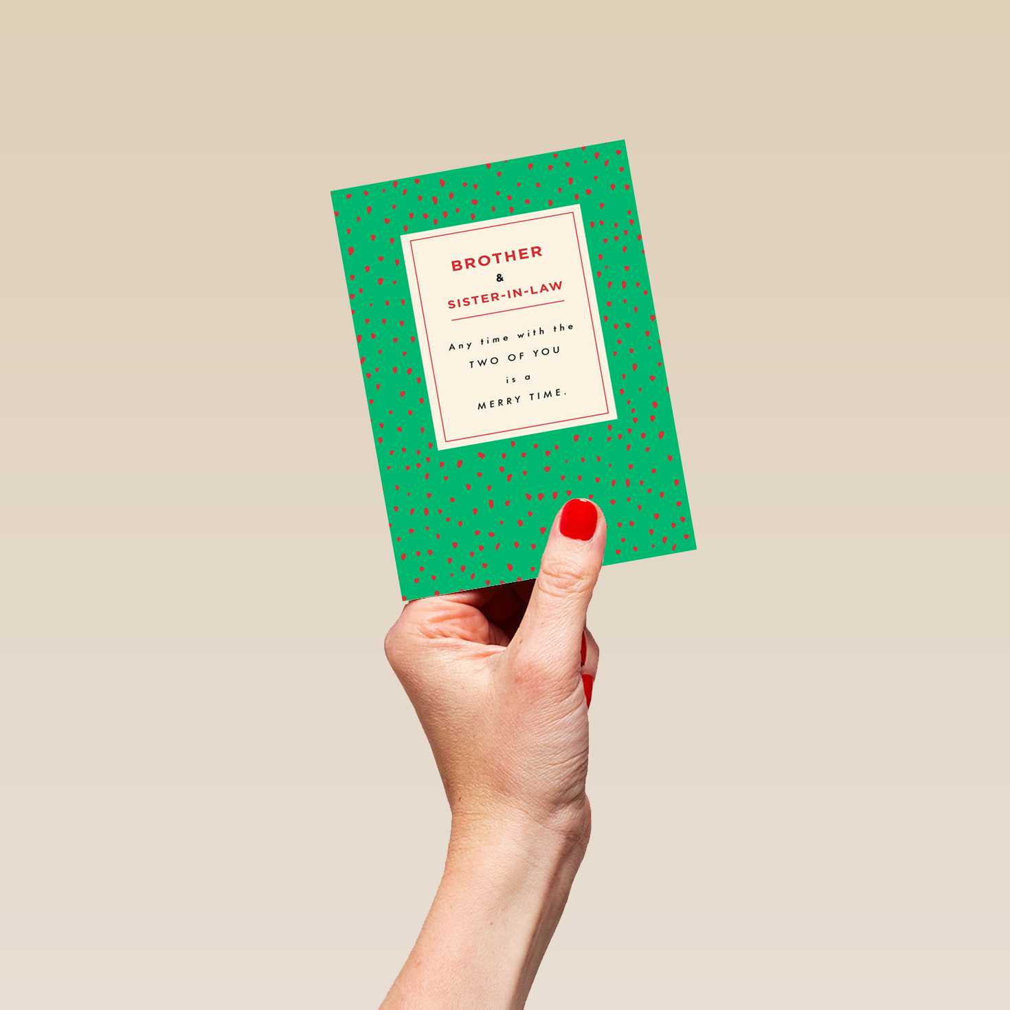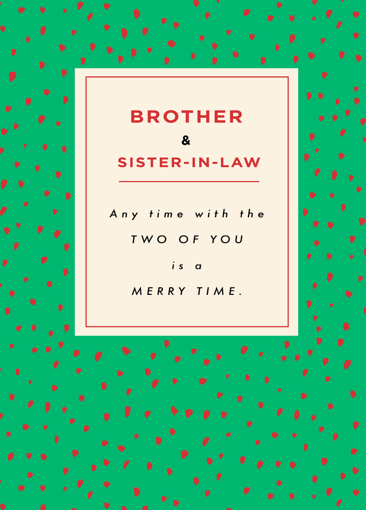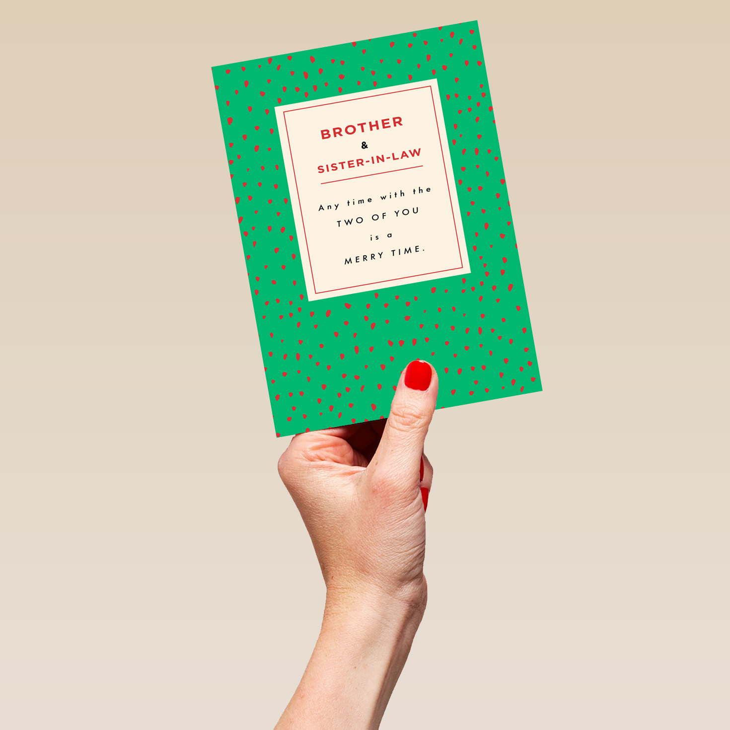 Show them you care with a personalised brother & sister-in-law card from Hallmark. Our Christmas cards are printed on premium quality, FSC®-certified card & delivered nationwide. This card is available as standard 12cm by 16.7cm and large 15.5cm by 21.6cm.